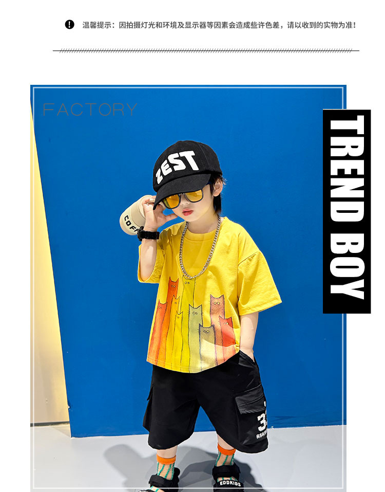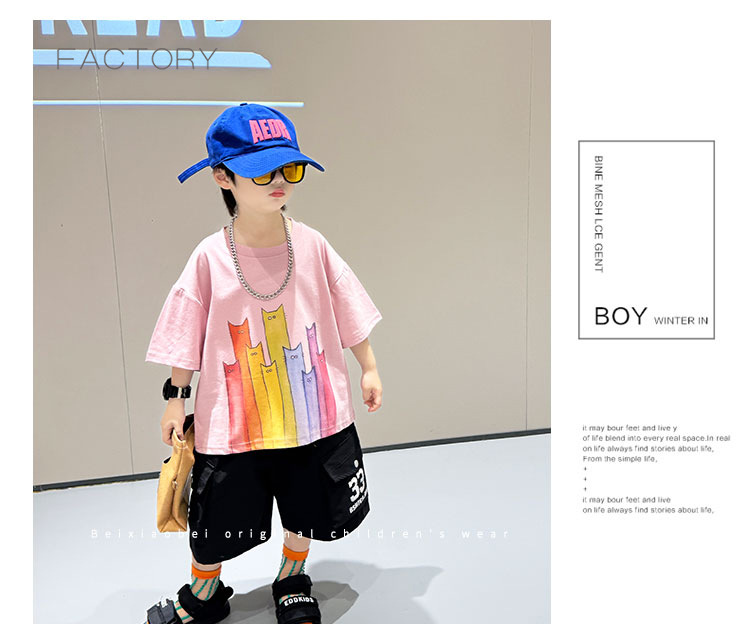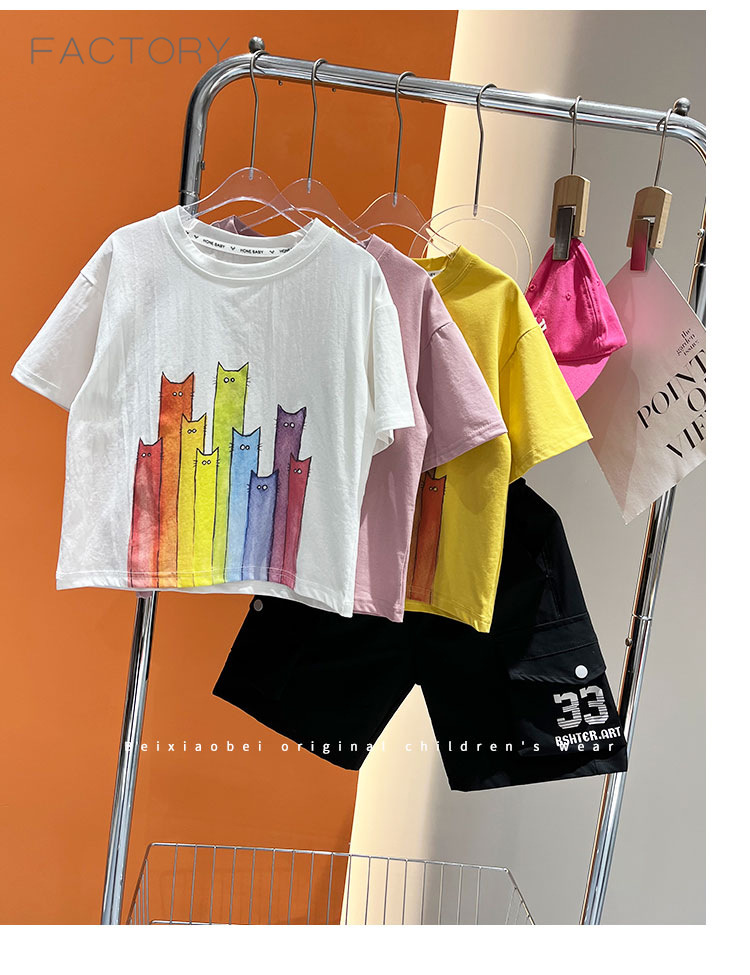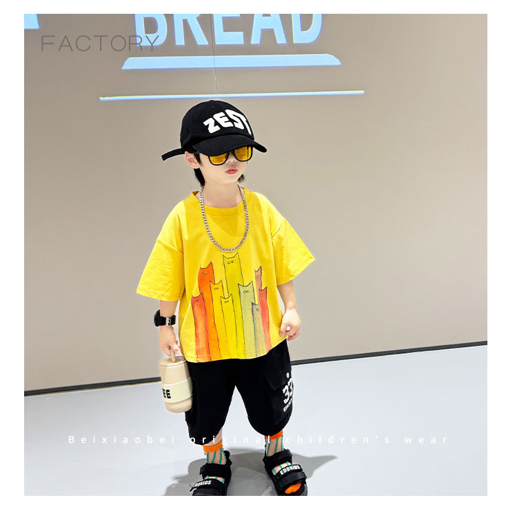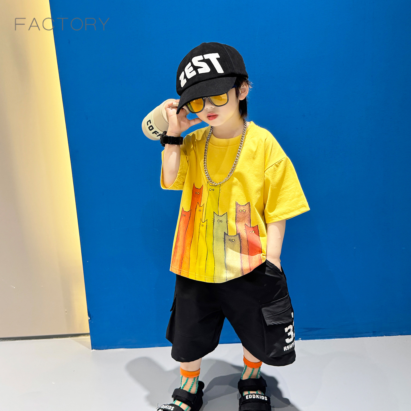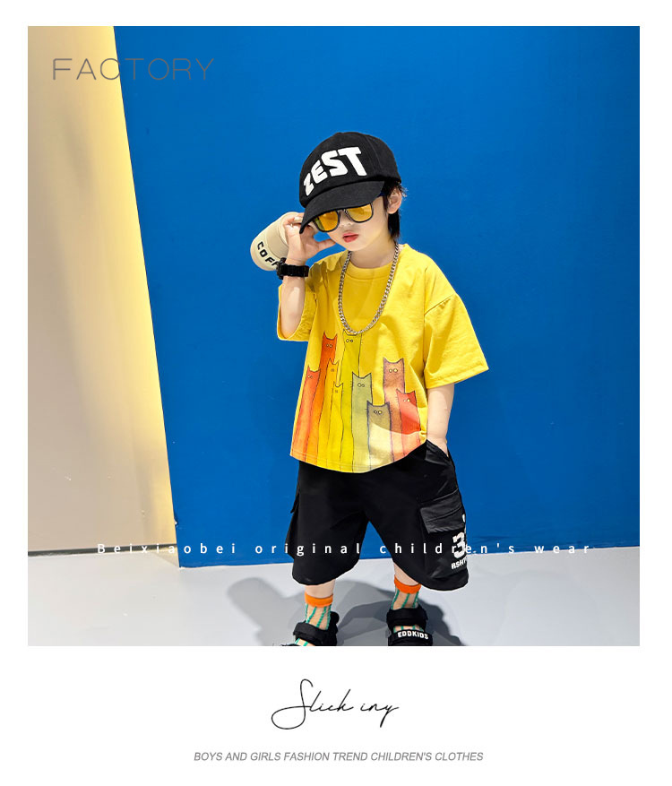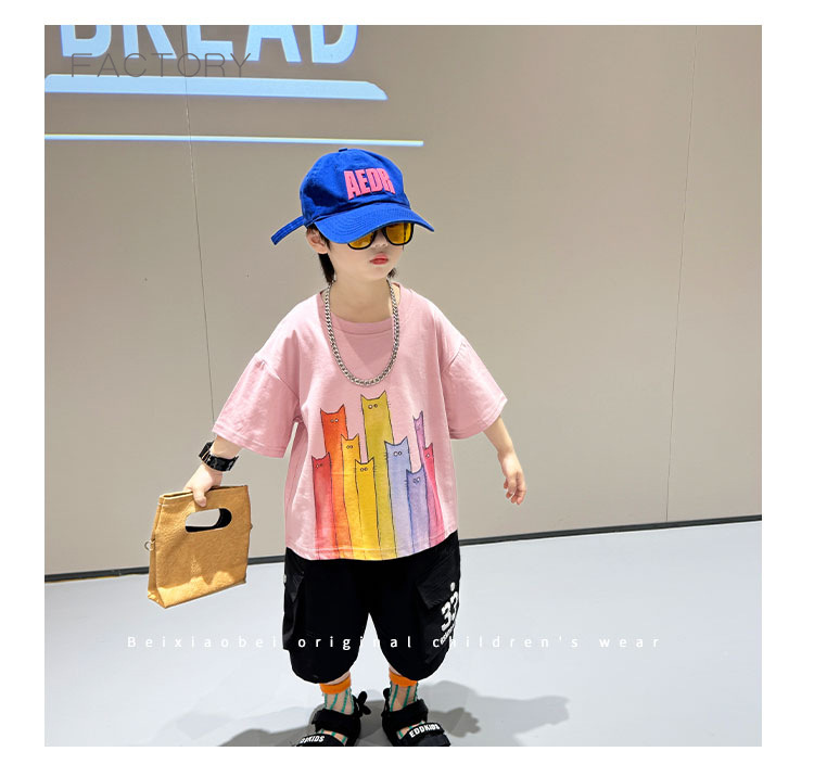 어린이 만화 반팔 여름 2025 새로운 스타일 소년의 세련된 얇은 캐주얼 탑 아기 유행 느슨한 반팔스토어 가기