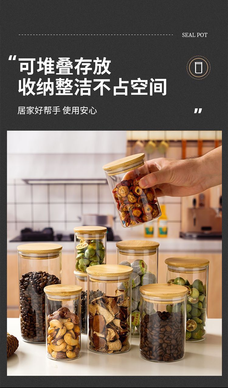 유리 밀봉 항아리 식품 등급 방습 곡물 가정용 차 항아리 차 저장 투명 주방 저장 항아리스토어 가기