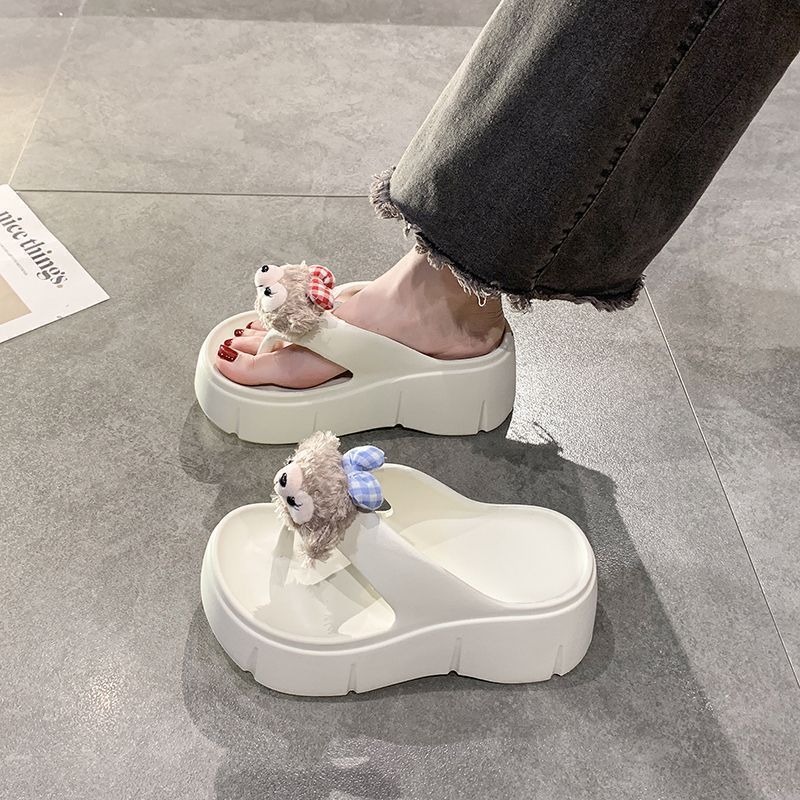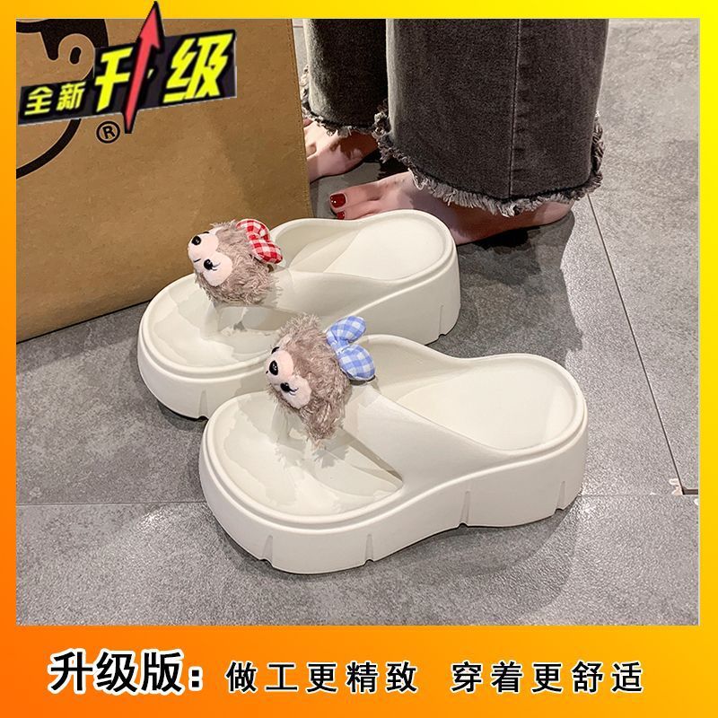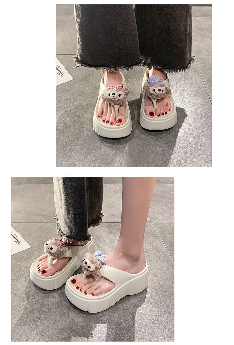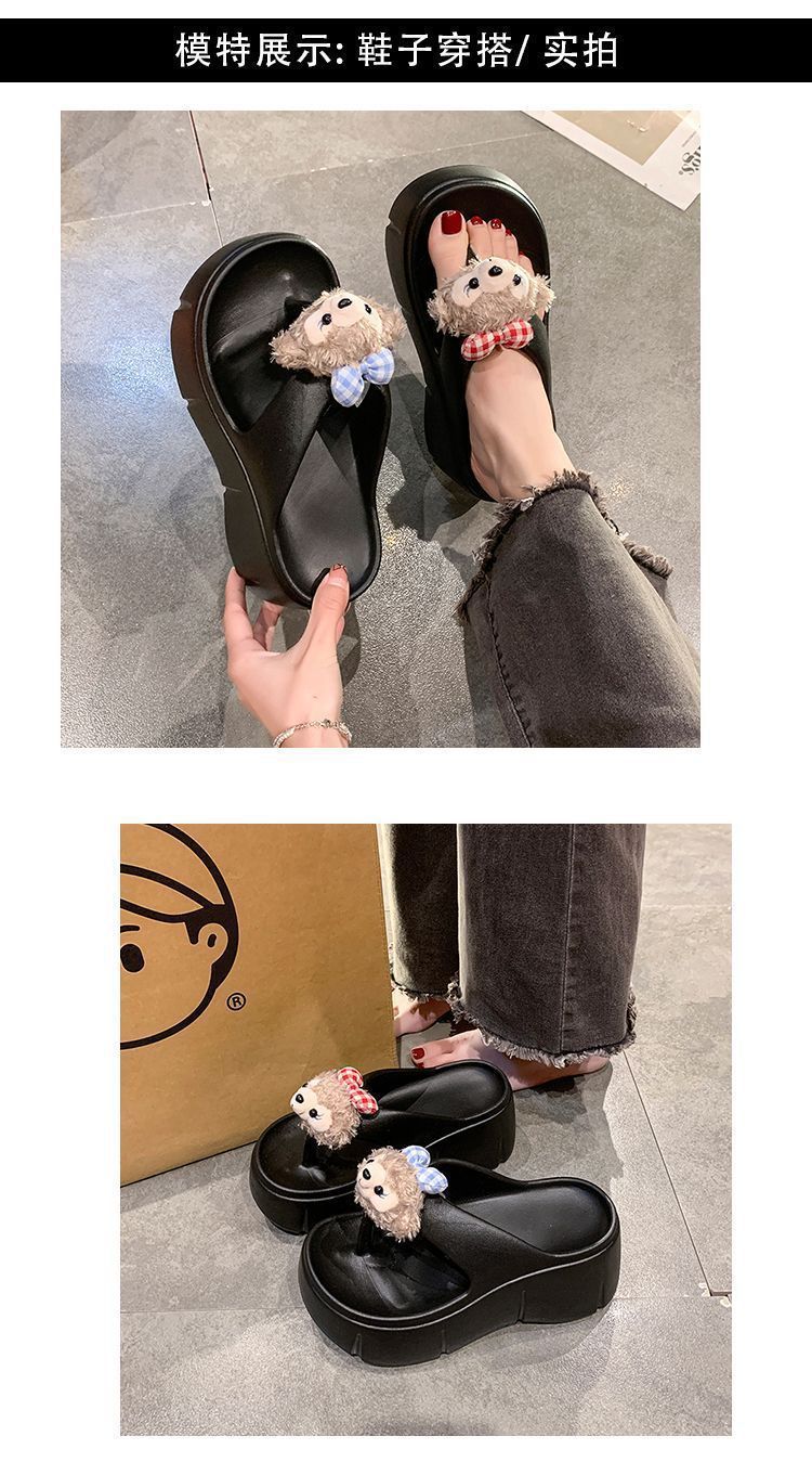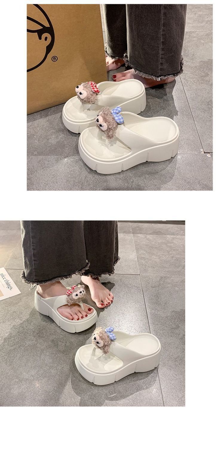 여성용 여름 신작 만화 귀여운 인형 두꺼운 밑창 샌들 2025 여름 여성을위한 경량 부드러운 밑창 플립 플롭스토어 가기