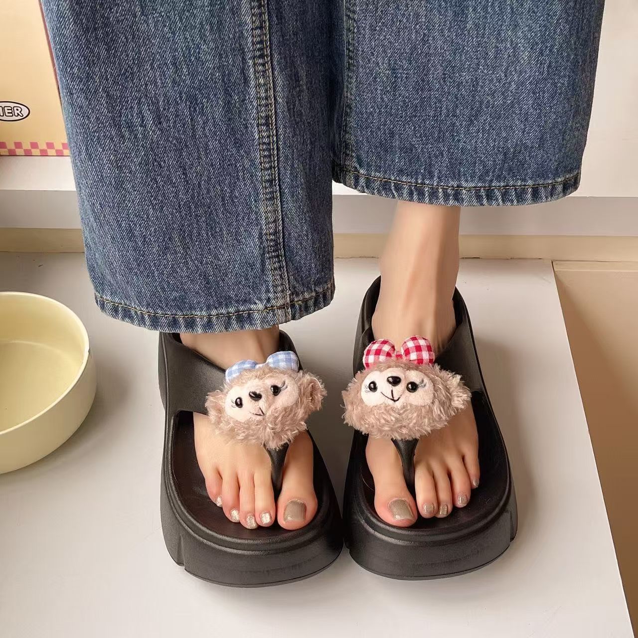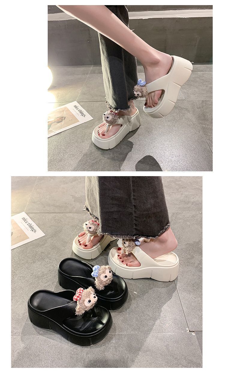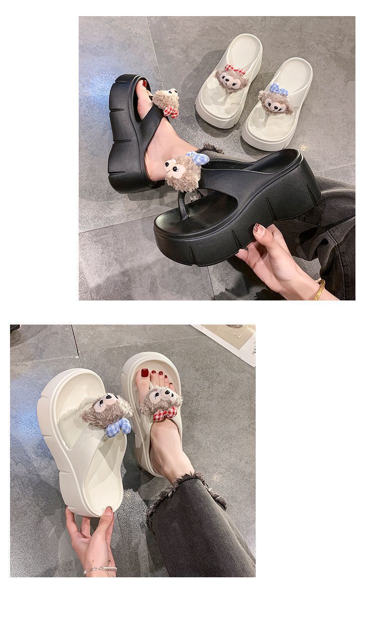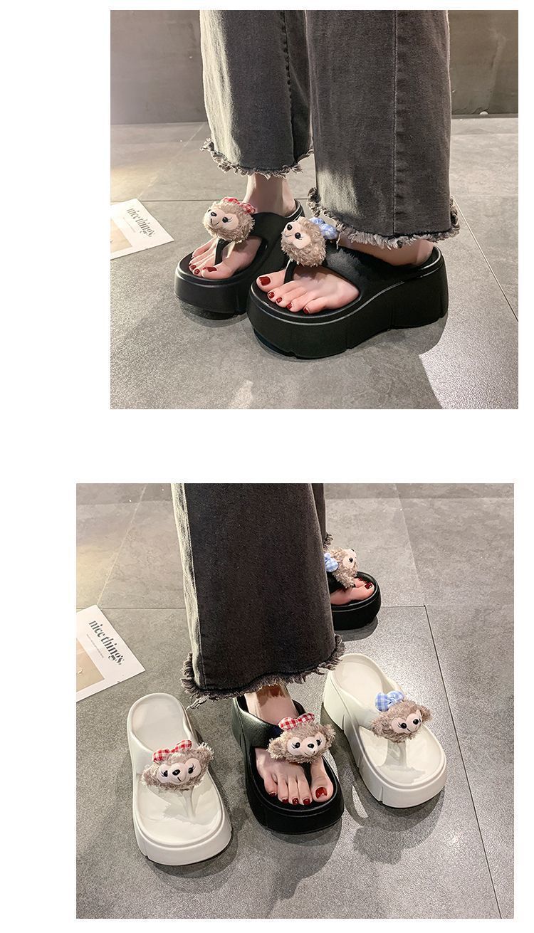 여성용 여름 신작 만화 귀여운 인형 두꺼운 밑창 샌들 2025 여름 여성을위한 경량 부드러운 밑창 플립 플롭스토어 가기