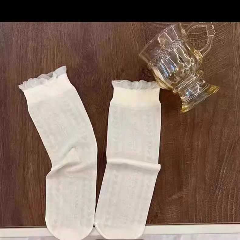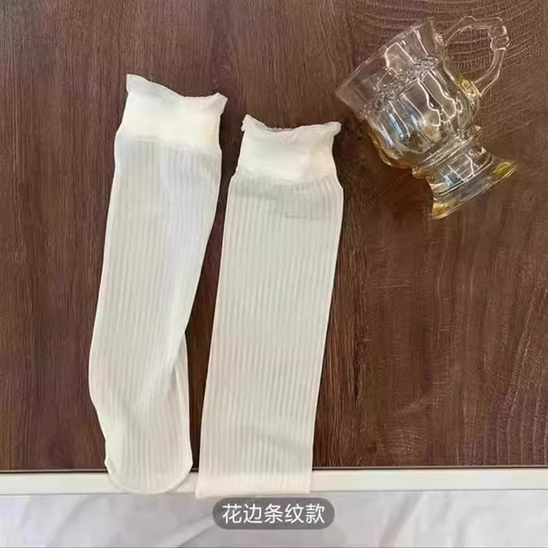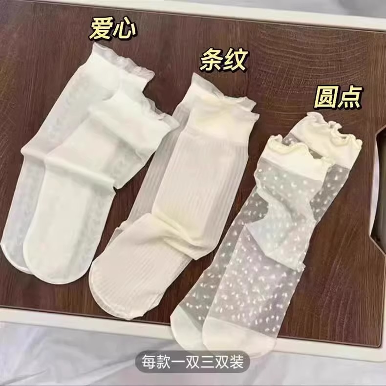 여름 양말, 초박형 양말, 아이스 스타킹, 여성 여름 로리타 도트 러브 땀 흡수 레이스 양말
