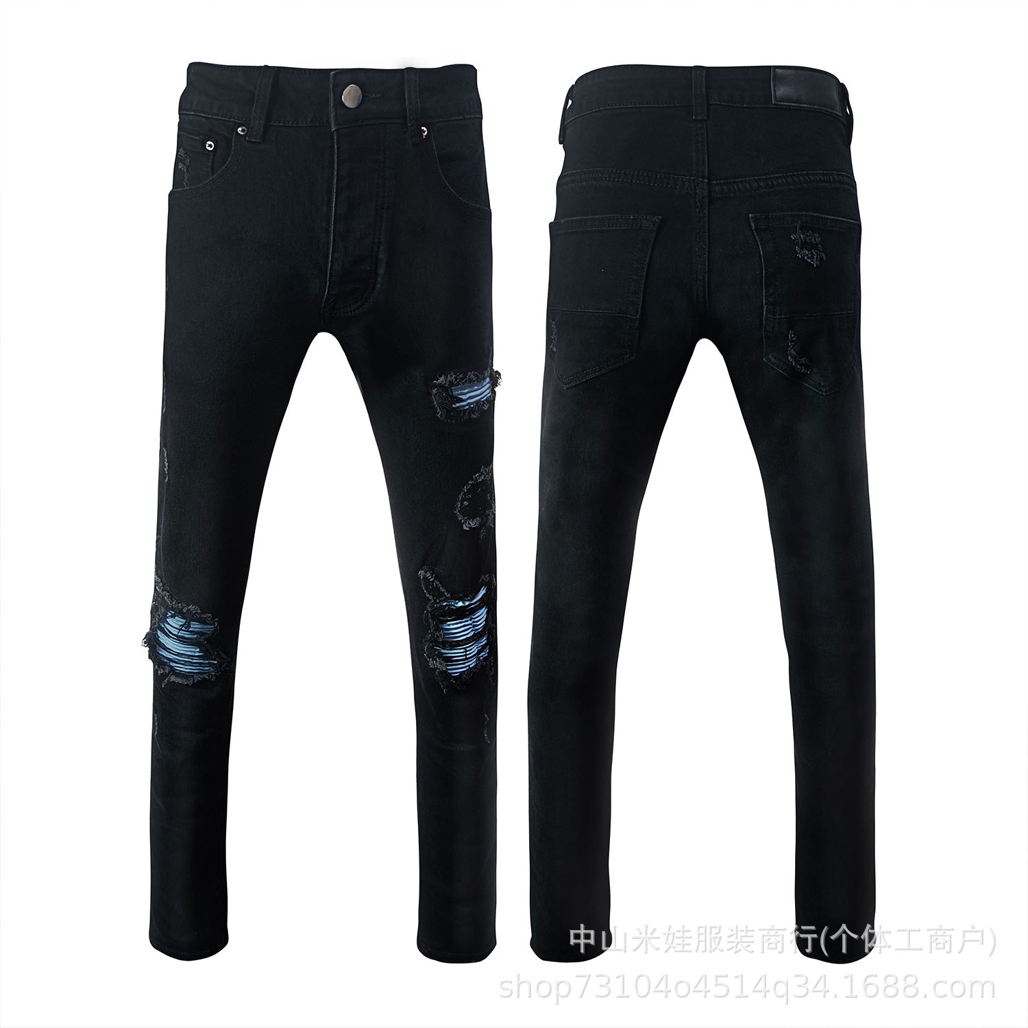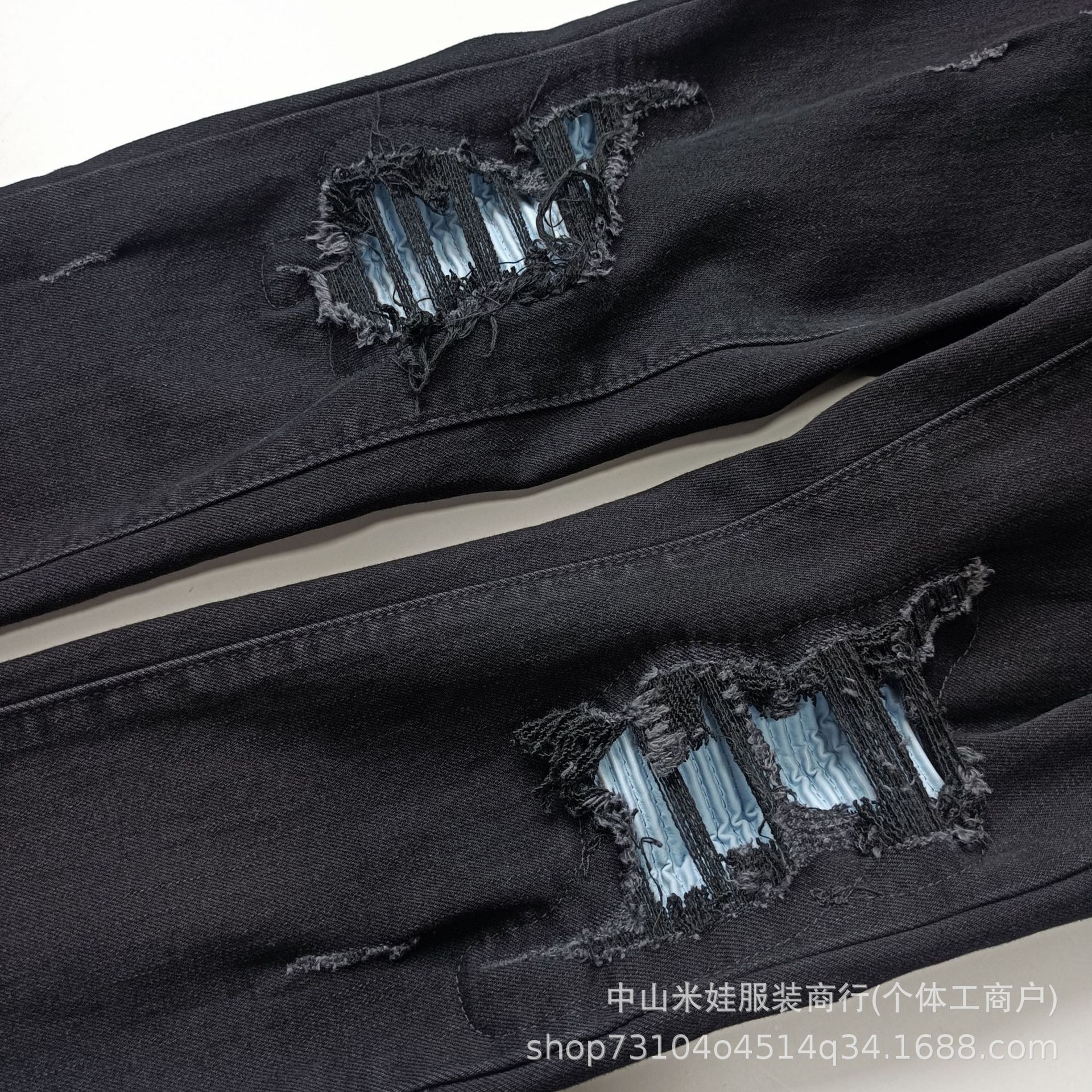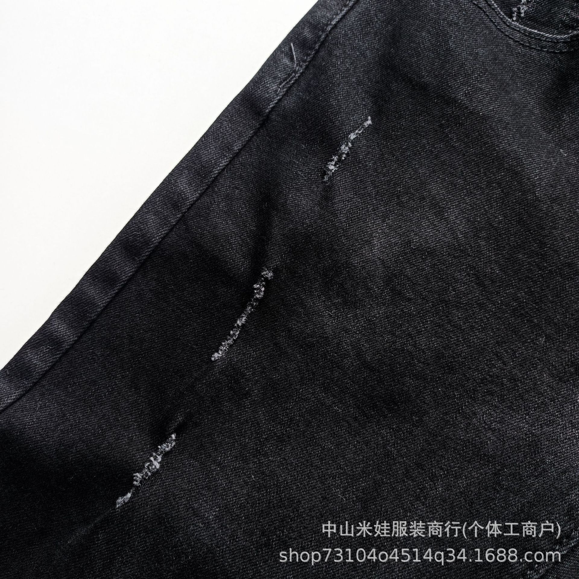 국경 간 남성 의류 도매 남성 청바지 남성 검은 주름 거리 남성 찢어진 구리 슬림 피트 소년 바지스토어 가기