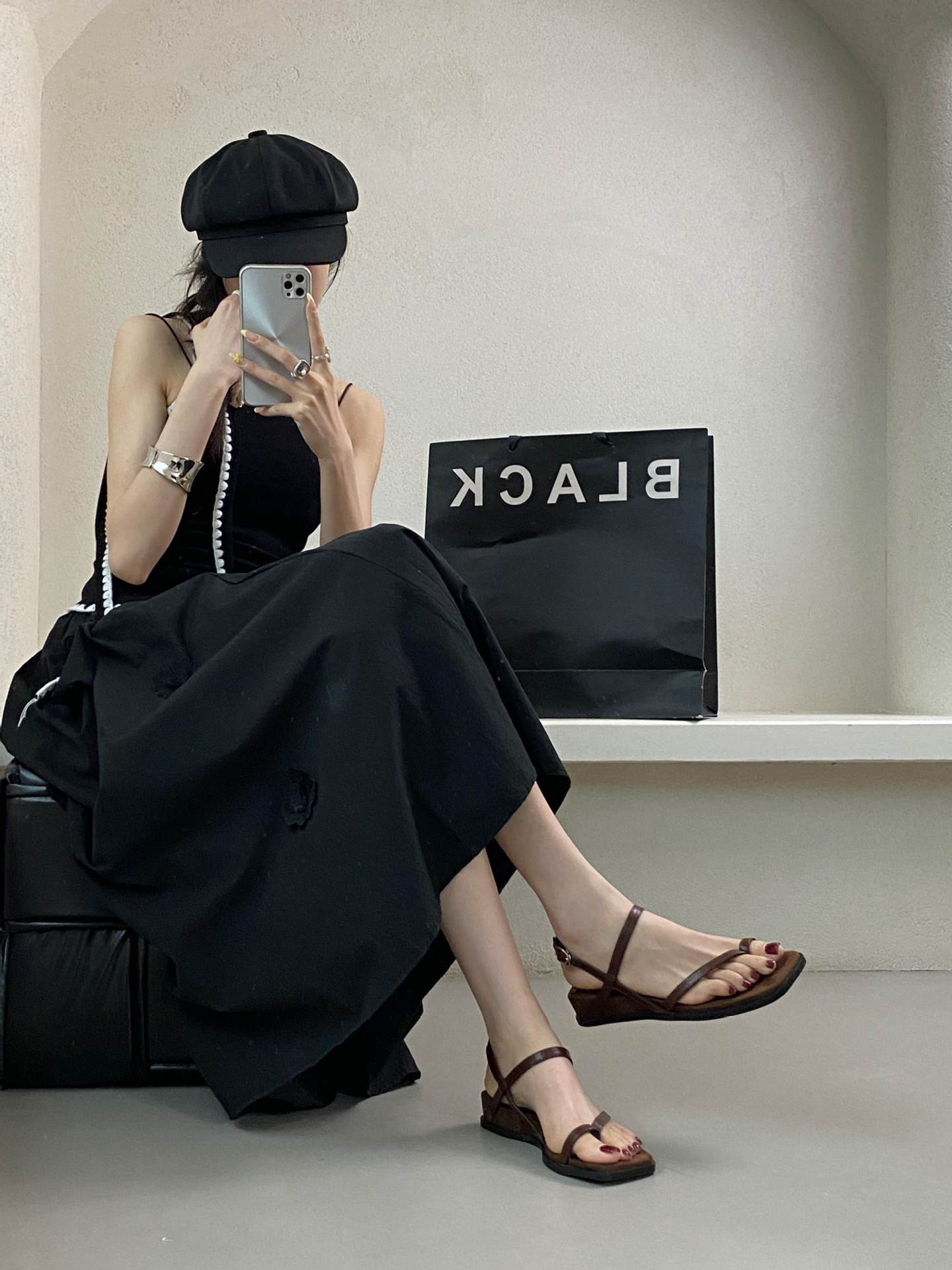 레트로풍! 스웨이드 스퀘어 토 플립플롭 여성용 두꺼운 밑창 샌들 여름 한국식 플랫 샌들스토어 가기