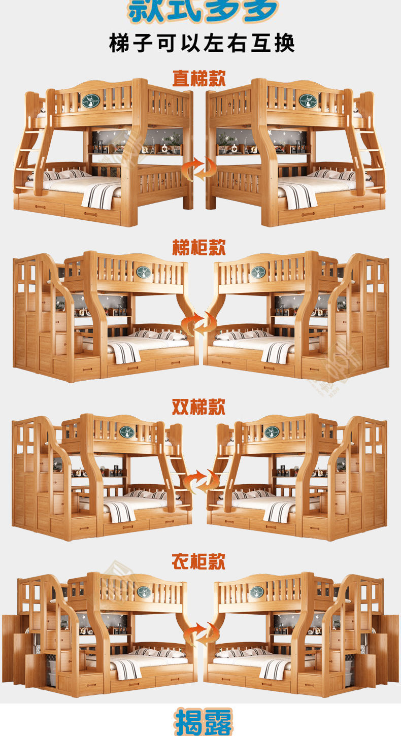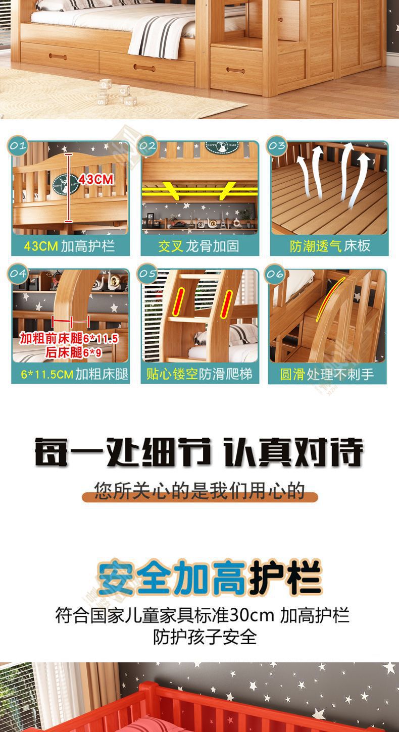 Xizhi 단단한 나무 이층 침대 성인 이층 침대 높낮이 침대 이층 침대 어머니와 아이 침대 어린이 이층 침대스토어 가기