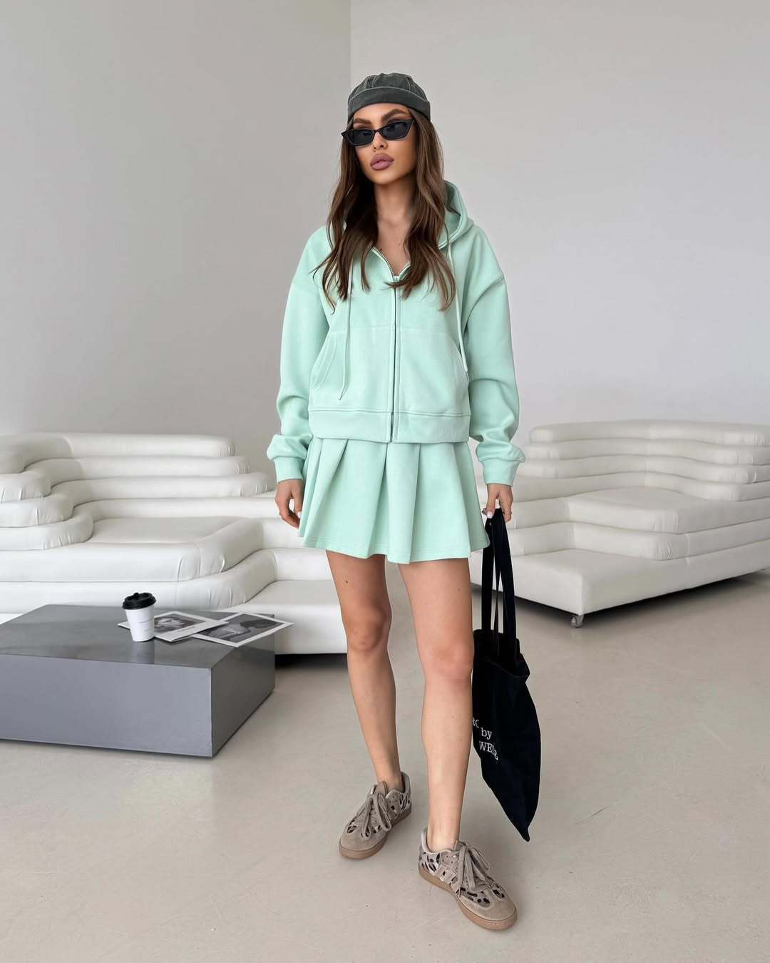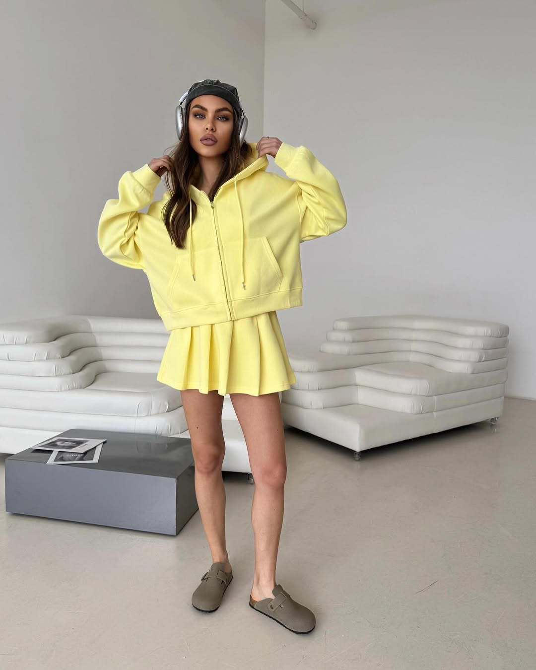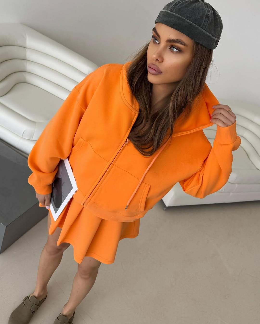 국경 간 아마존 캐주얼 패션 유럽과 미국 정장 여성 지퍼 카디건 재킷 스포츠 스커트 투피스 세트스토어 가기