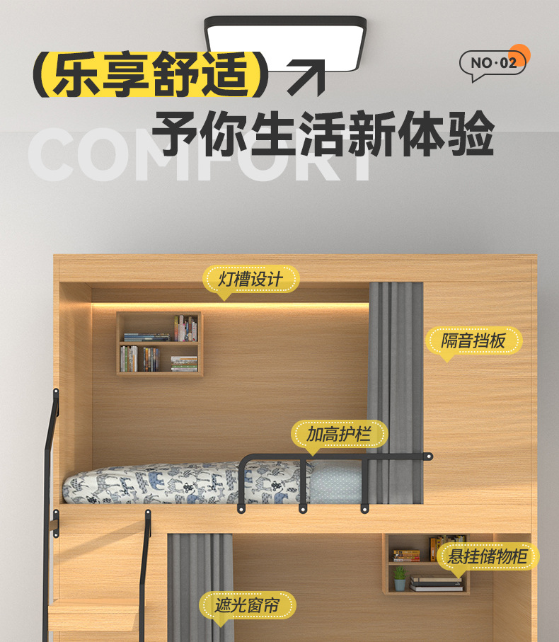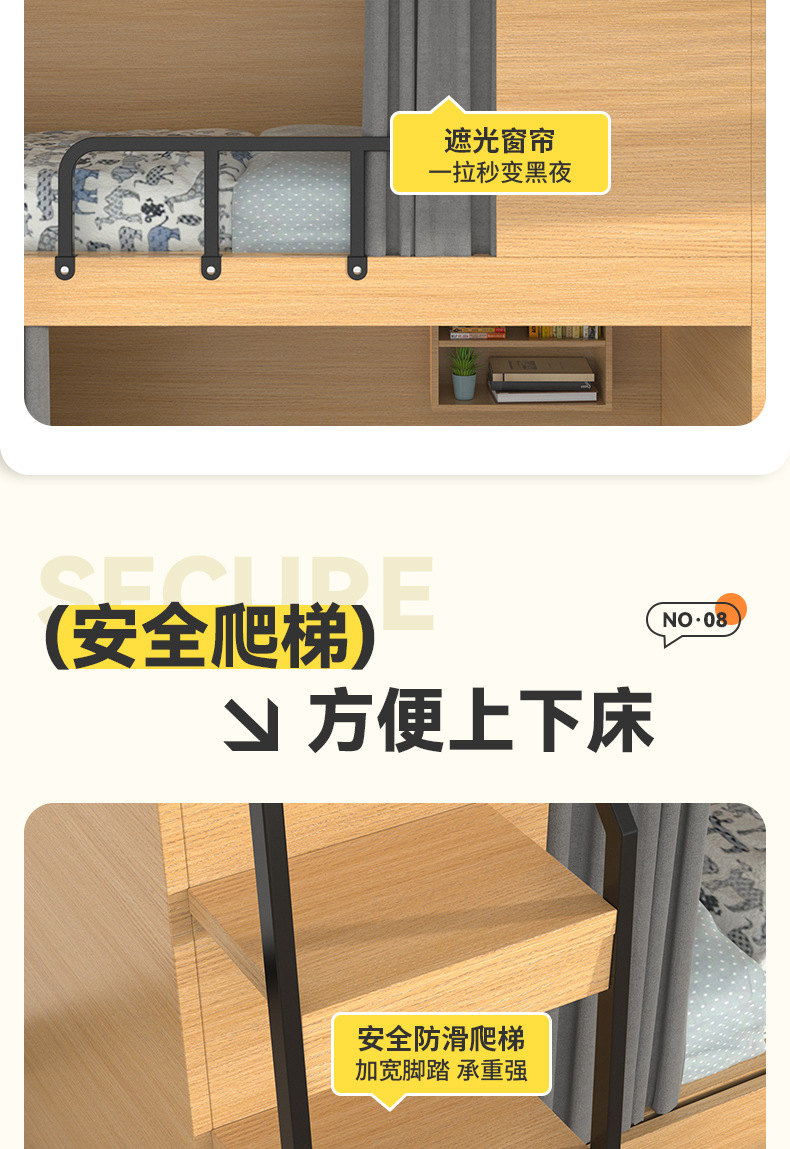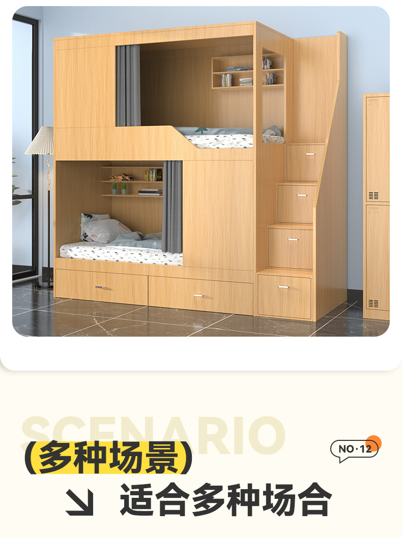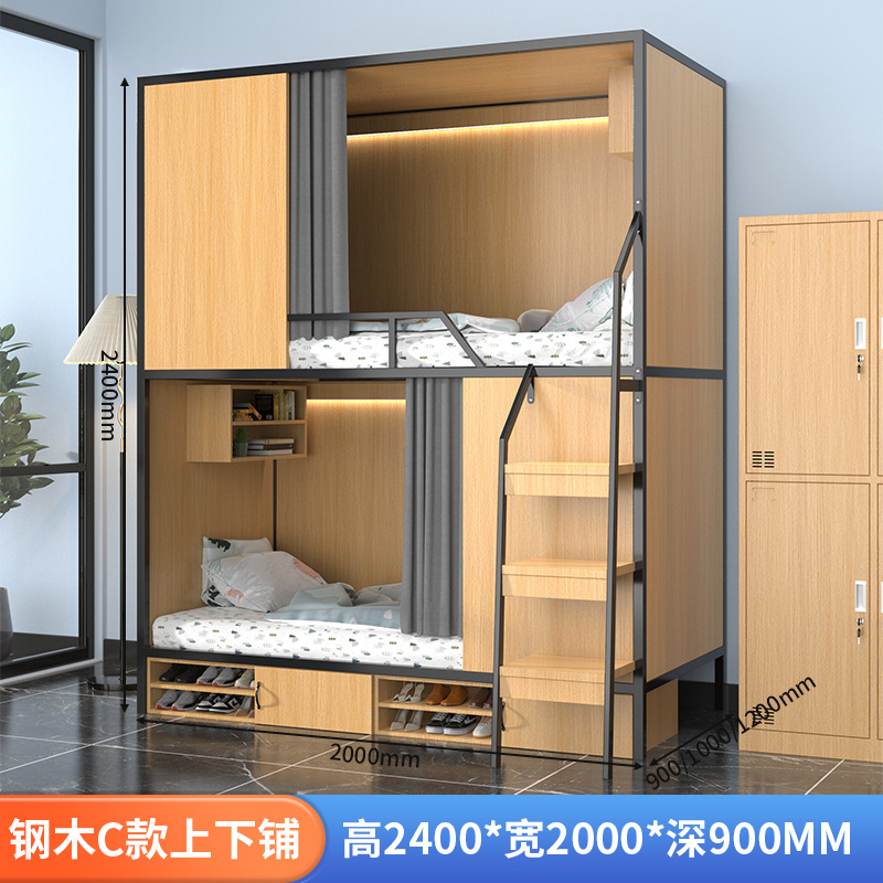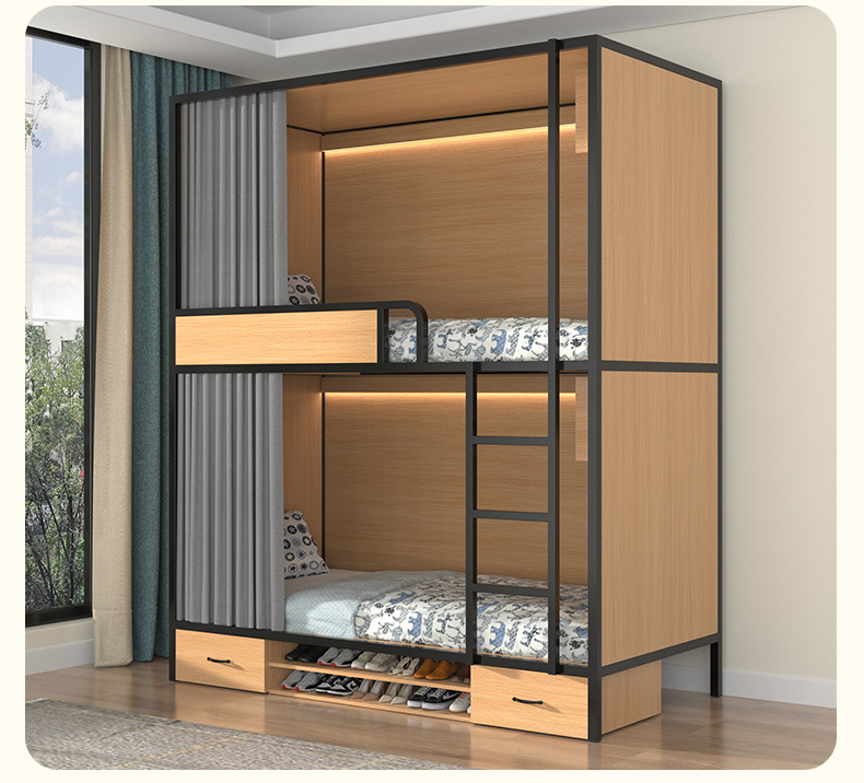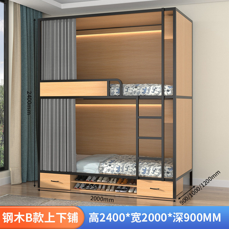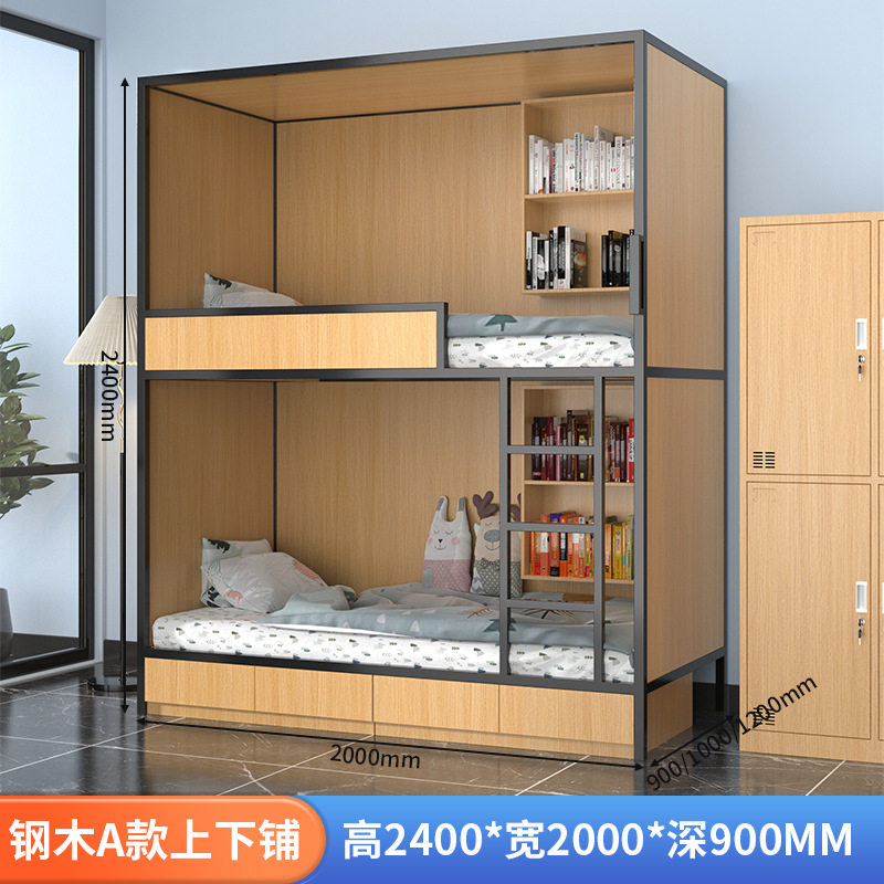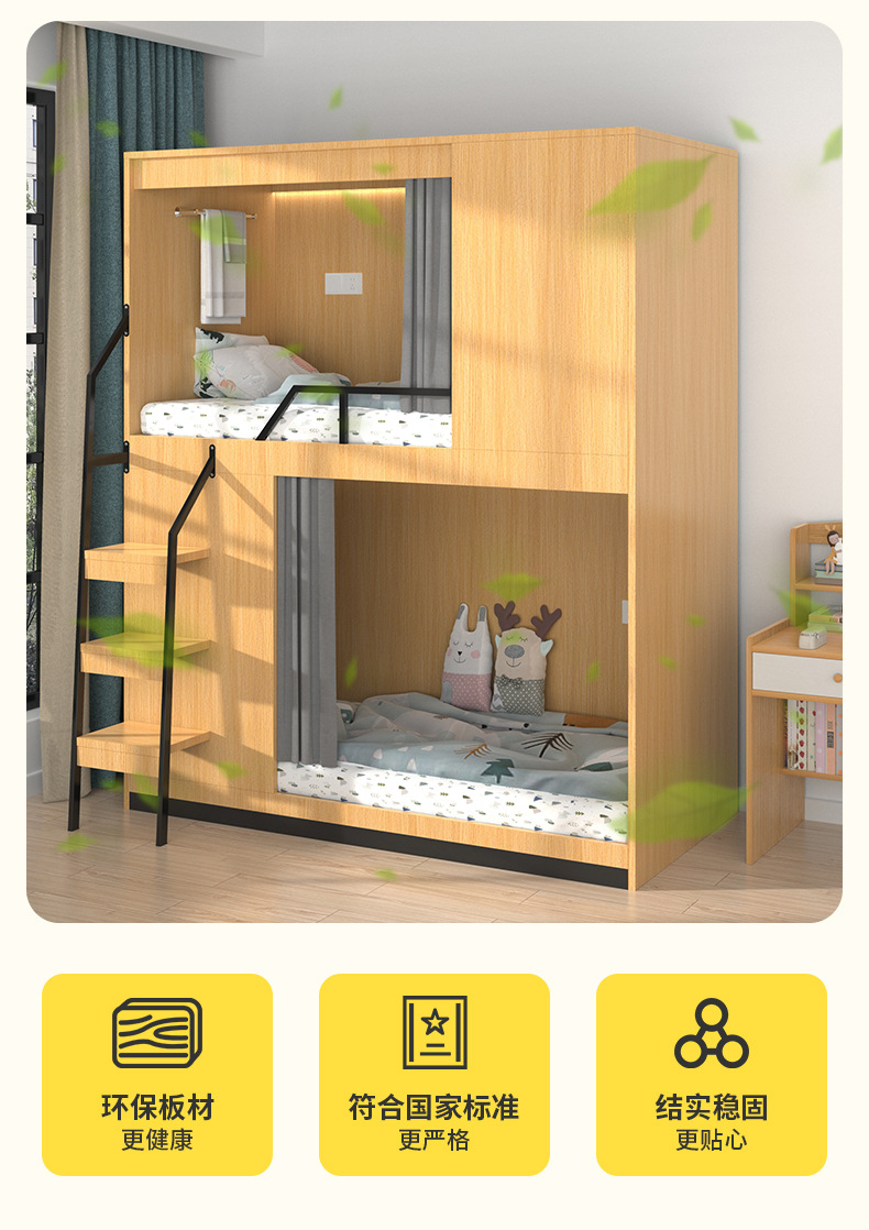 스페이스 캡슐 이층 침대 학교 기숙사 아파트 침대 유스 하우스 B&B 원목 일체형 어린이용 하이 및 로우 이층 침대스토어 가기
