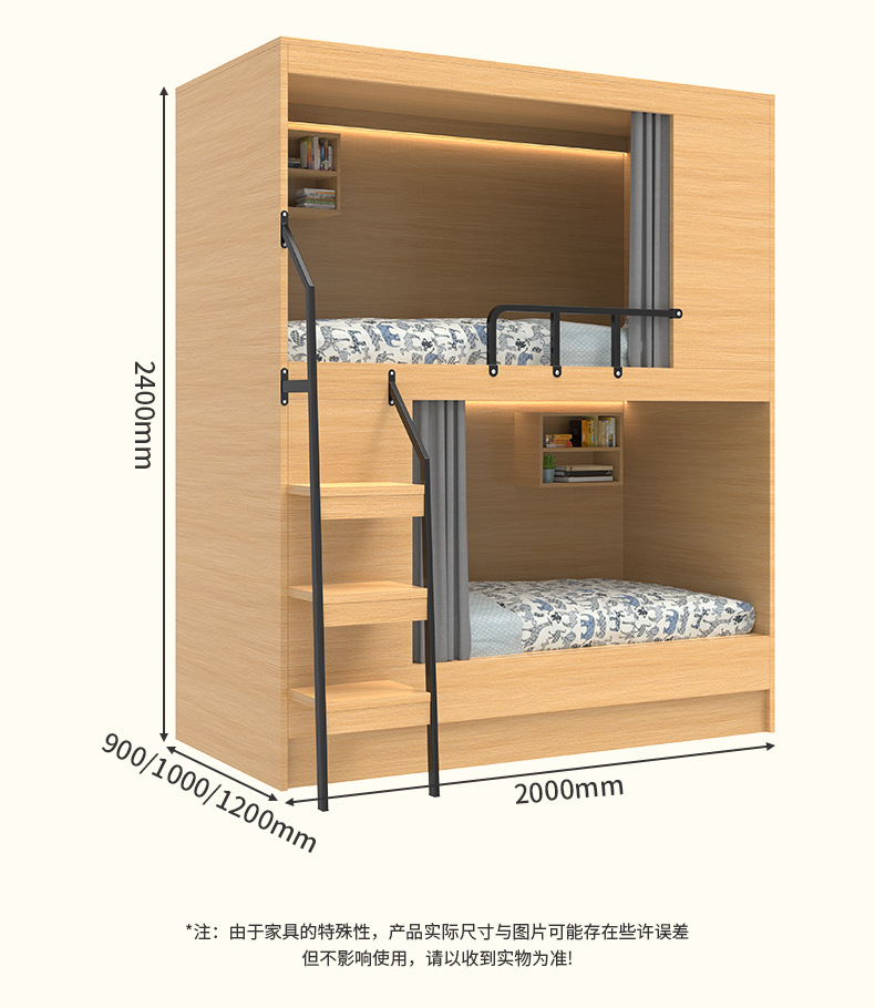 스페이스 캡슐 이층 침대 학교 기숙사 아파트 침대 유스 하우스 B&B 원목 일체형 어린이용 하이 및 로우 이층 침대