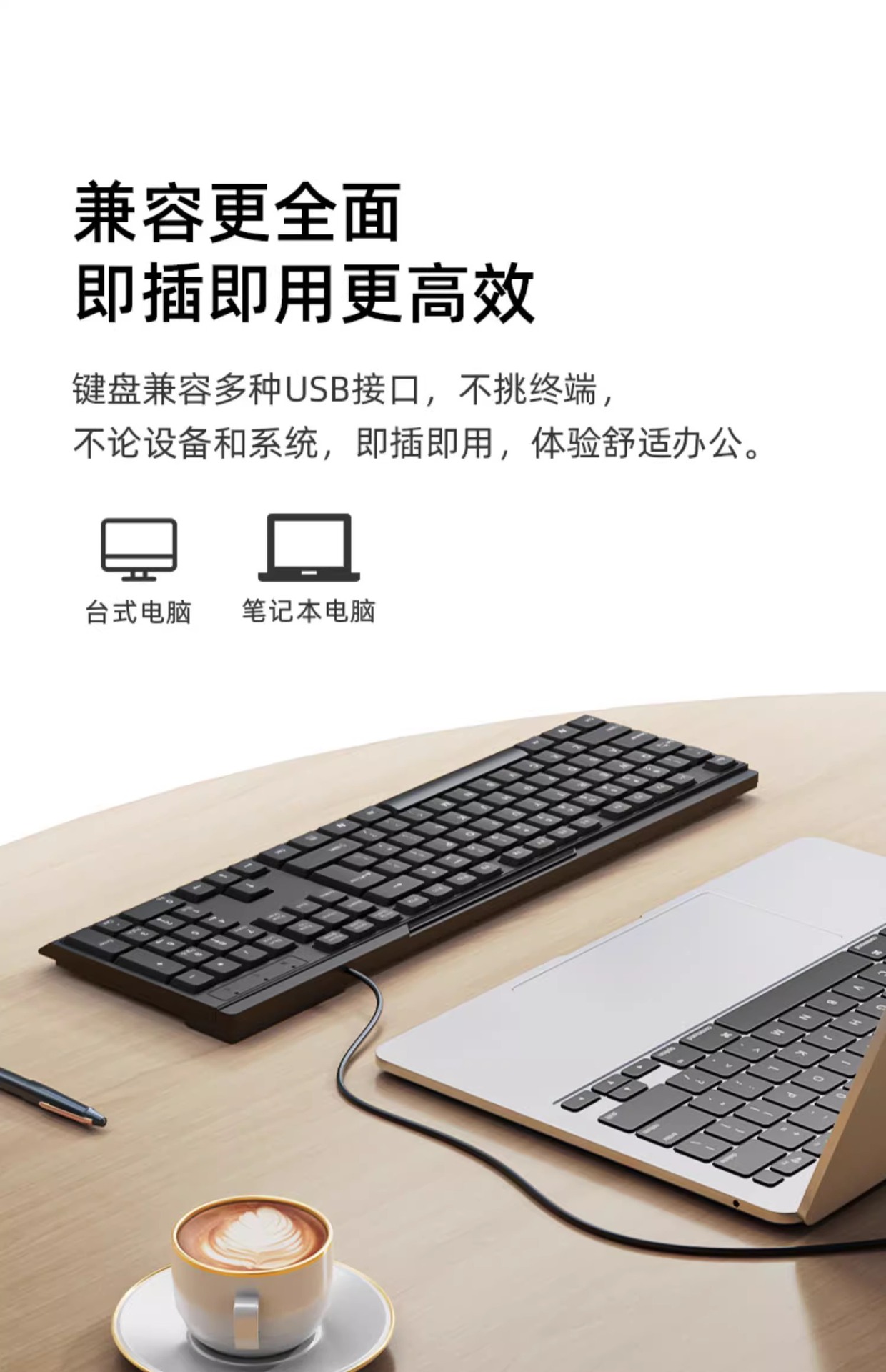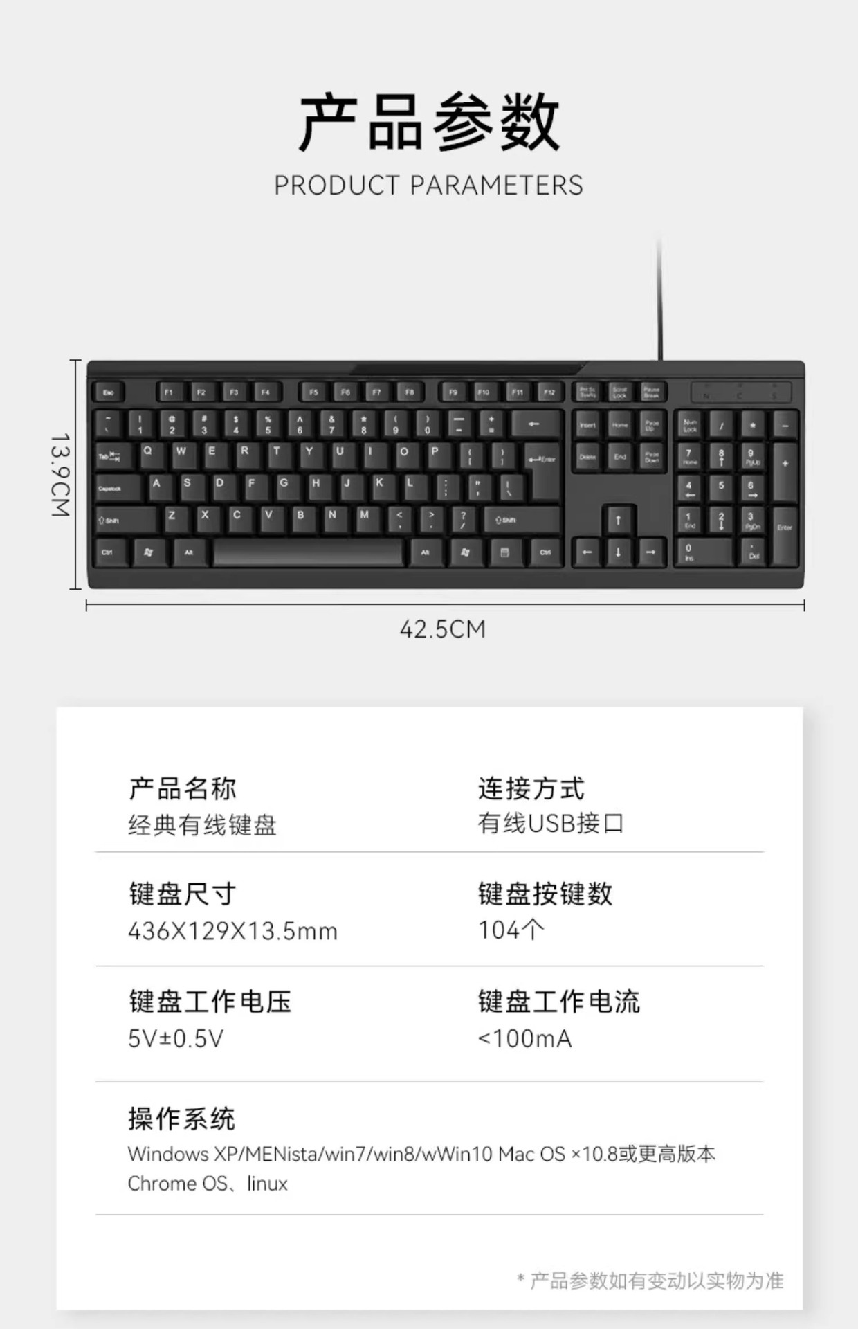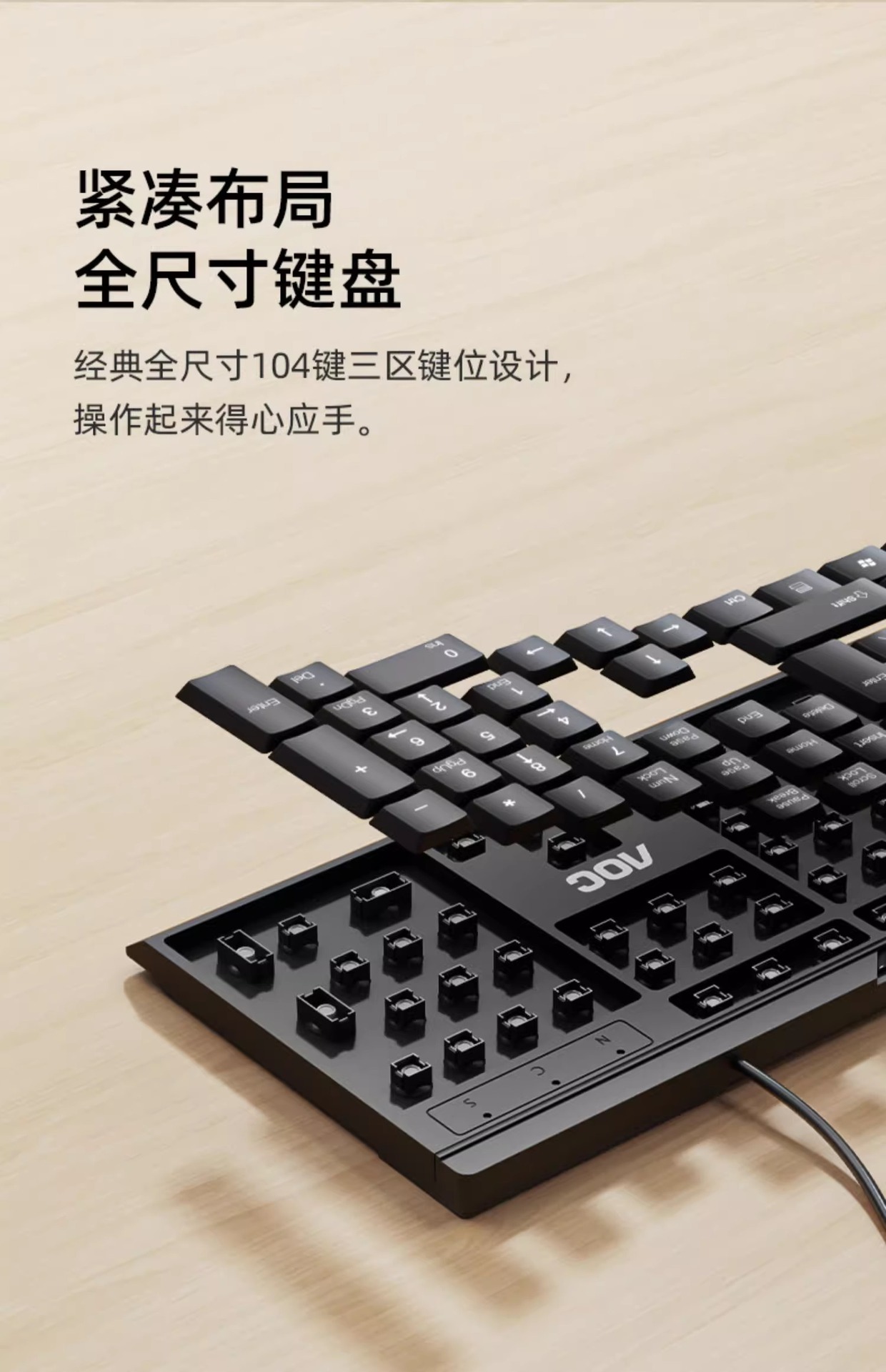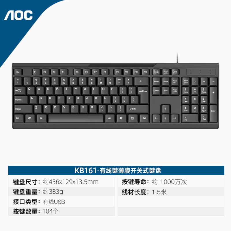 AOC 유선 키보드 KB161 인체공학적 편안한 느낌 컴퓨터 사무실 비즈니스 엔터테인먼트 비말 방지 방진 내구성