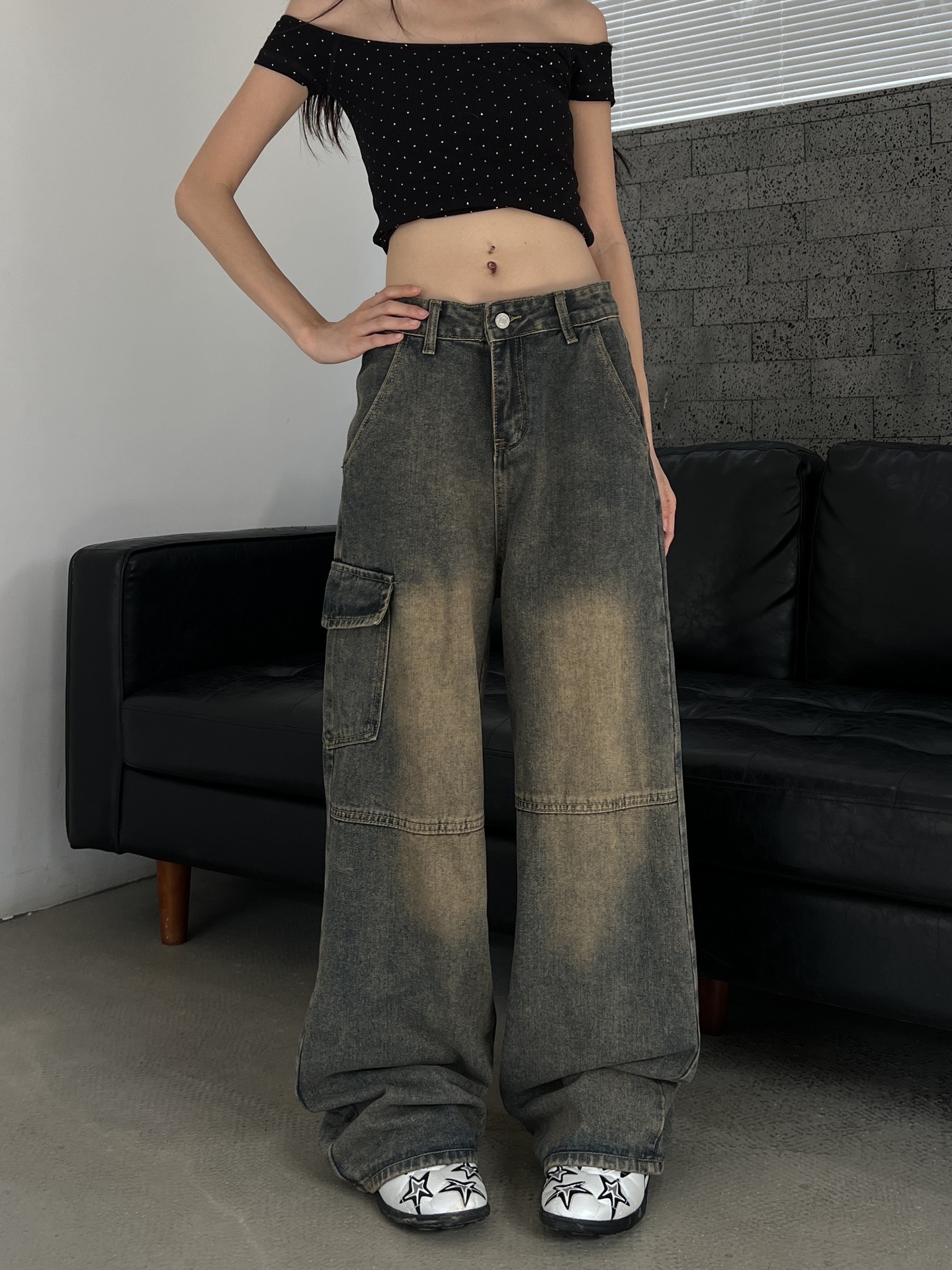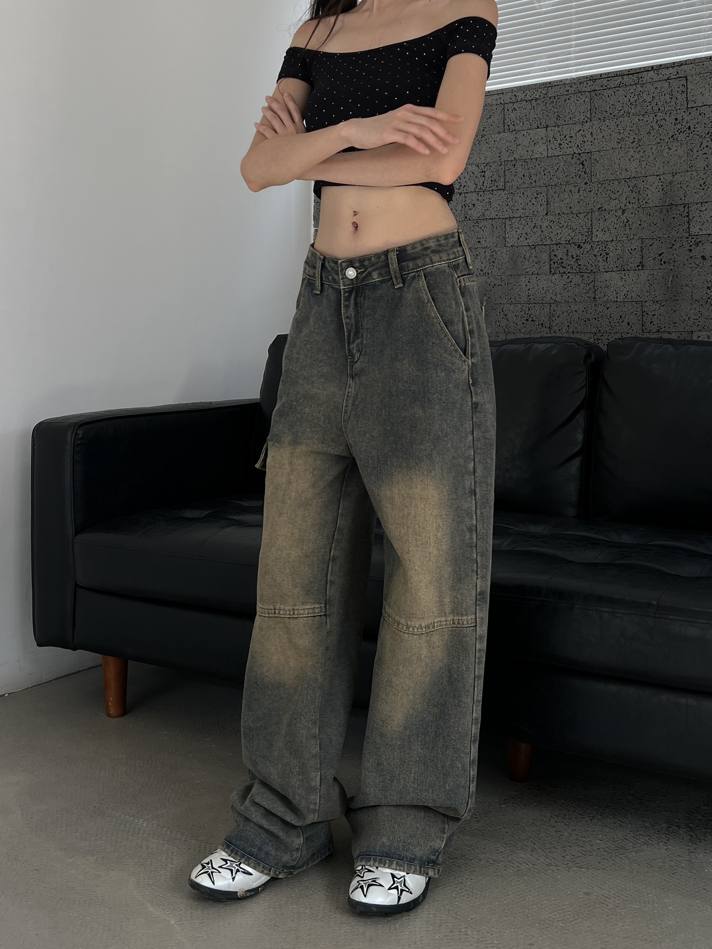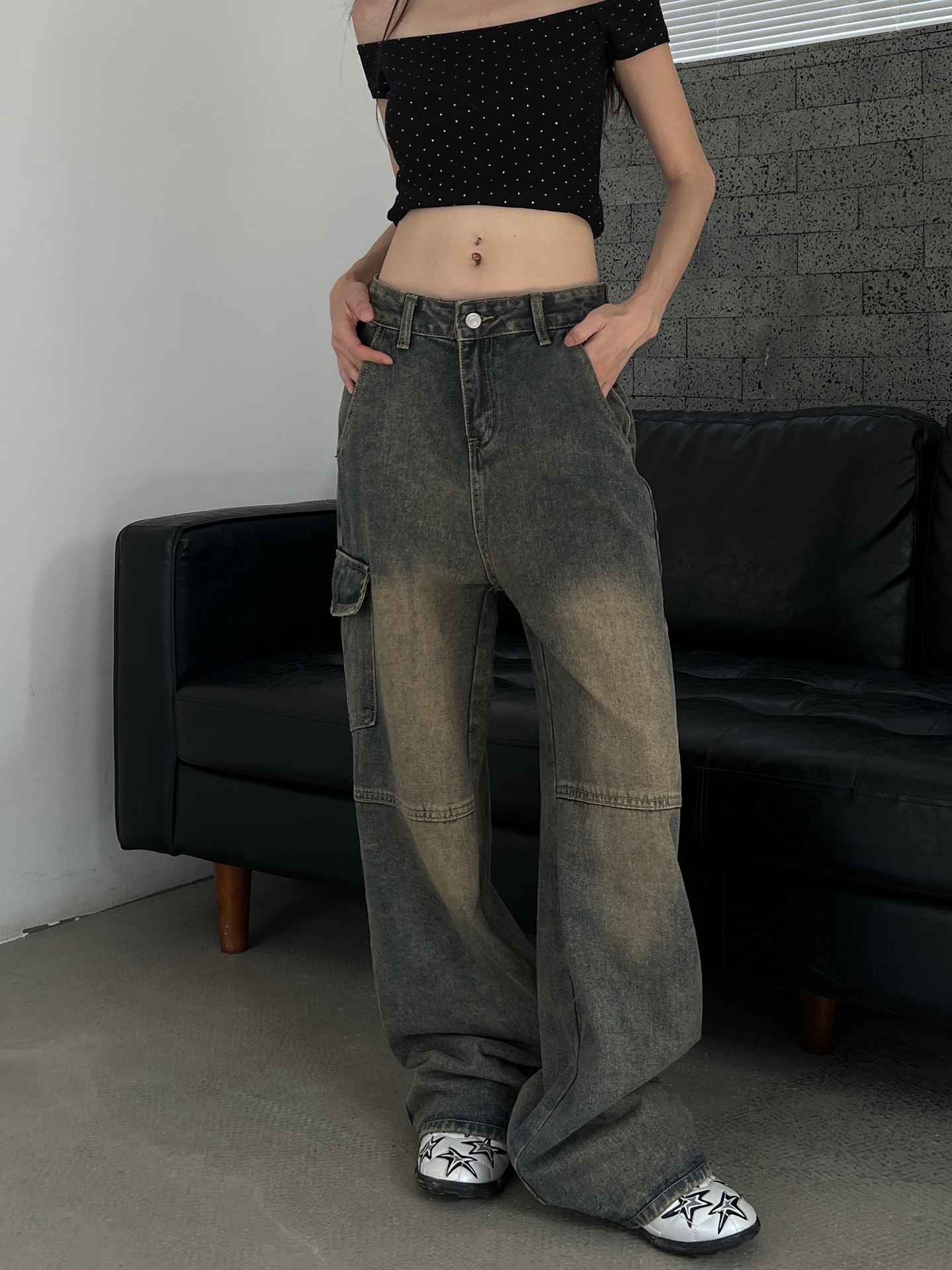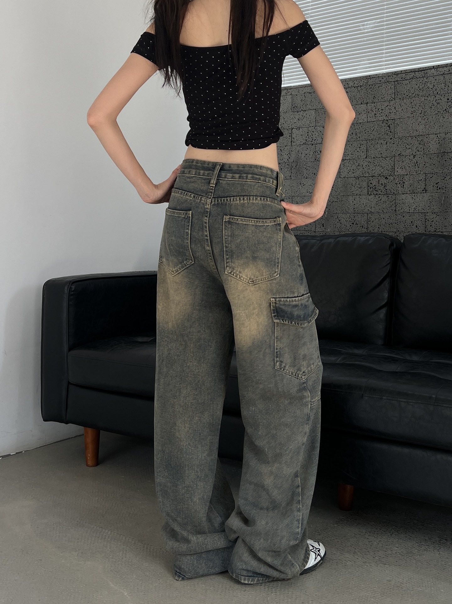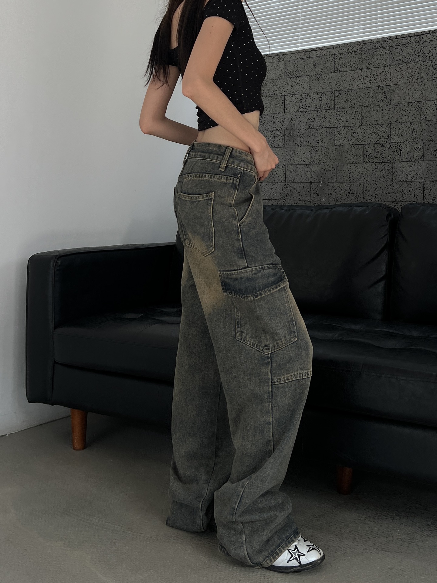 아마존 유럽과 미국 스타일의 크로스보더 미국 복고풍 작업복 청바지 여성용 새 봄 하이웨이스트 루즈하고 다재다능한 바지스토어 가기