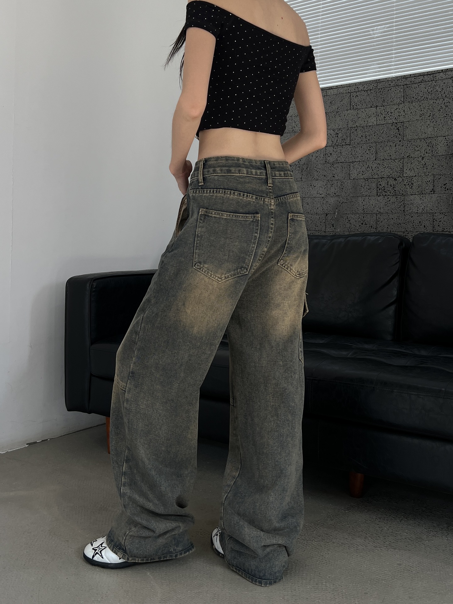 아마존 유럽과 미국 스타일의 크로스보더 미국 복고풍 작업복 청바지 여성용 새 봄 하이웨이스트 루즈하고 다재다능한 바지