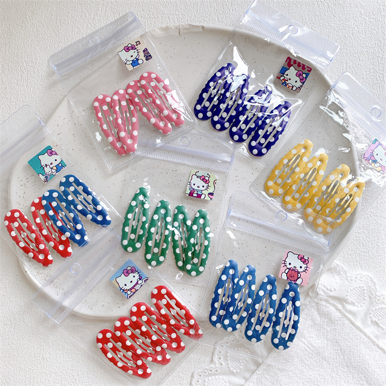 새로운 어린이 폴카 도트 물방울 물결 모양 헤어 클립 달콤한 소녀 기본 사이드 앞머리 클립 아기 머리카락 BB 클립