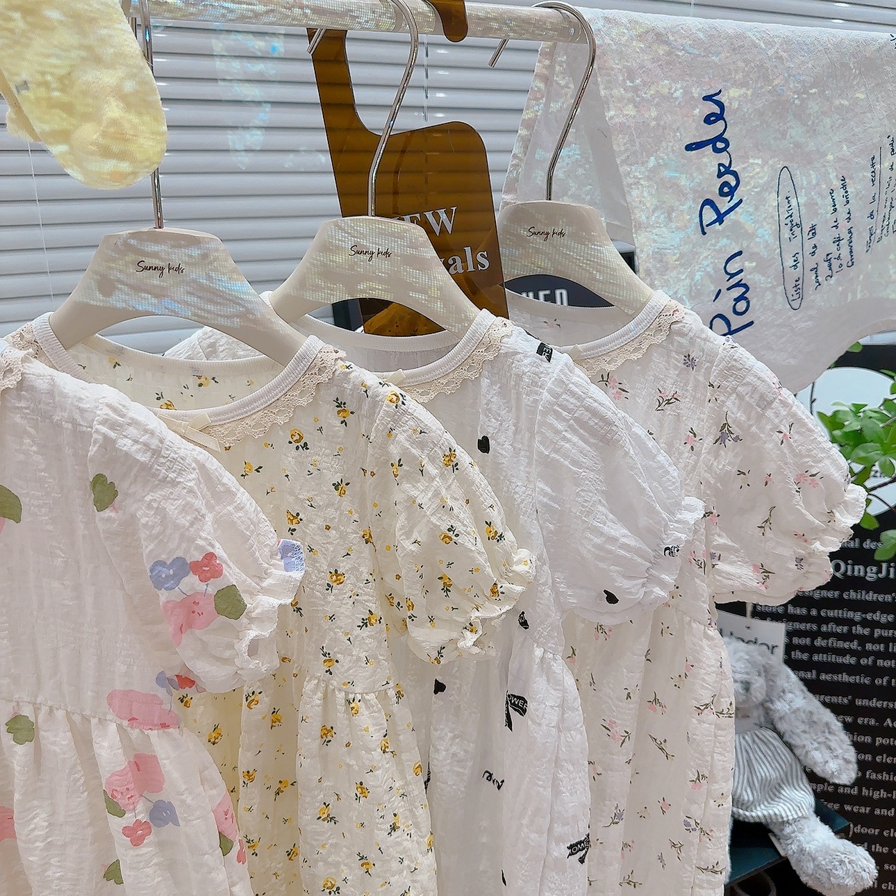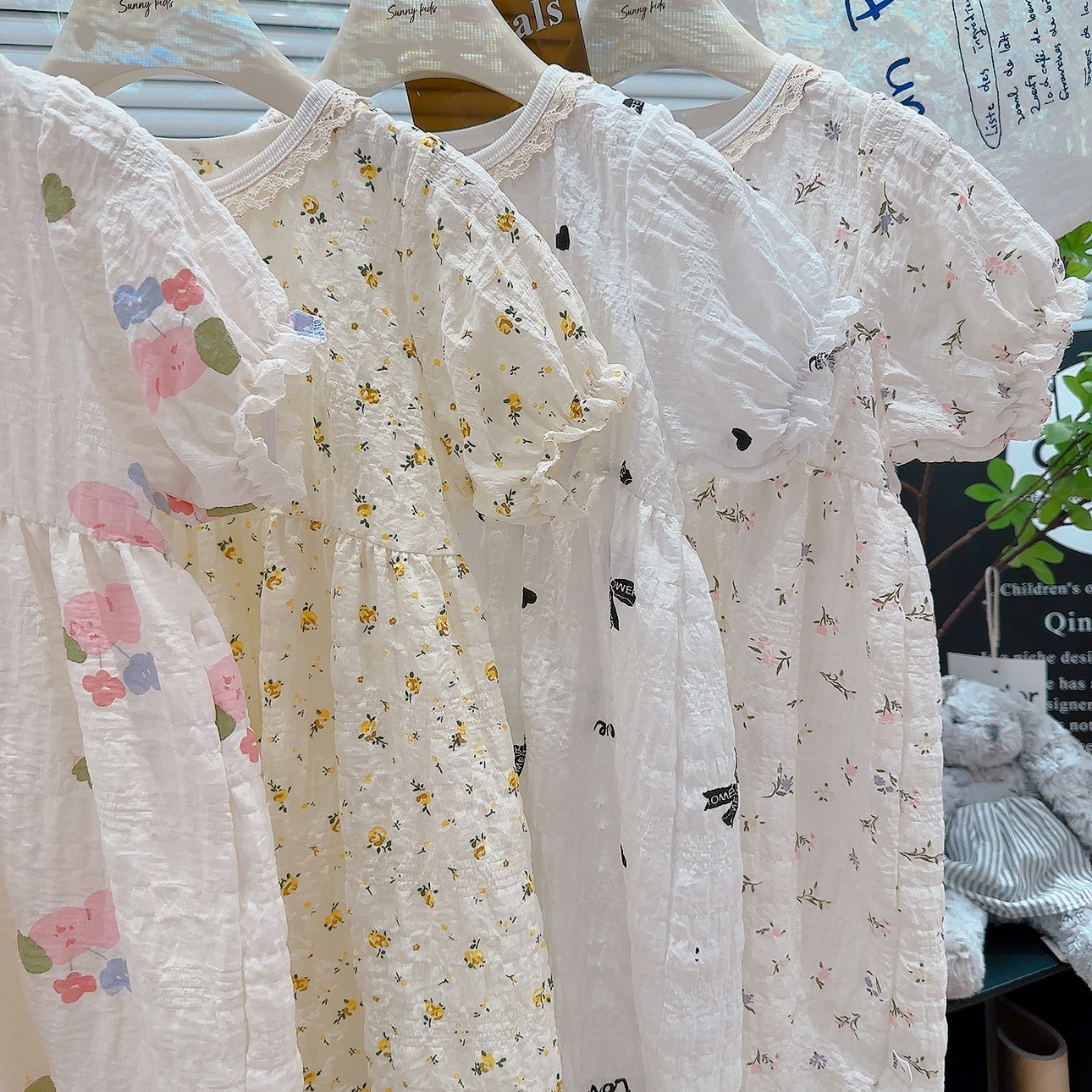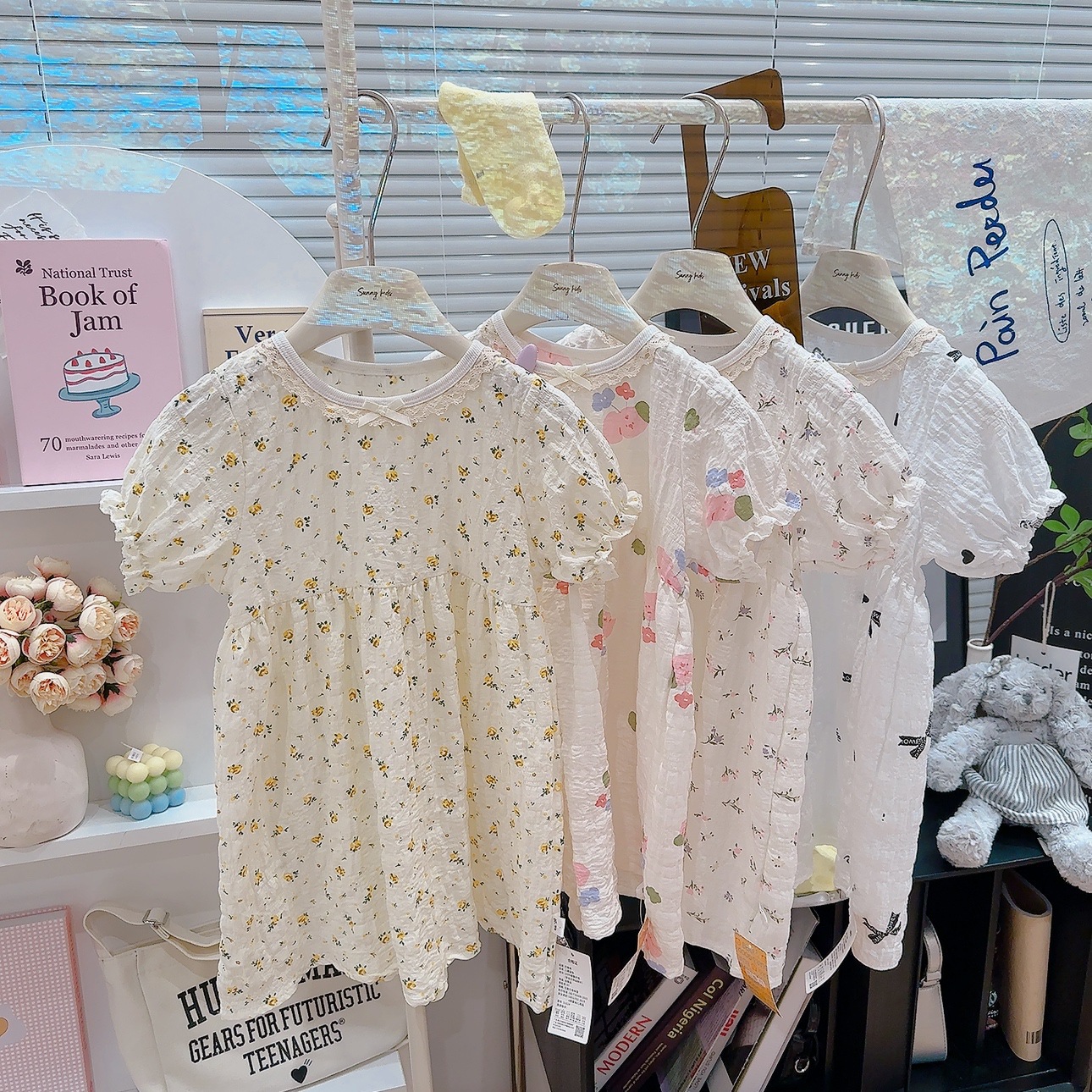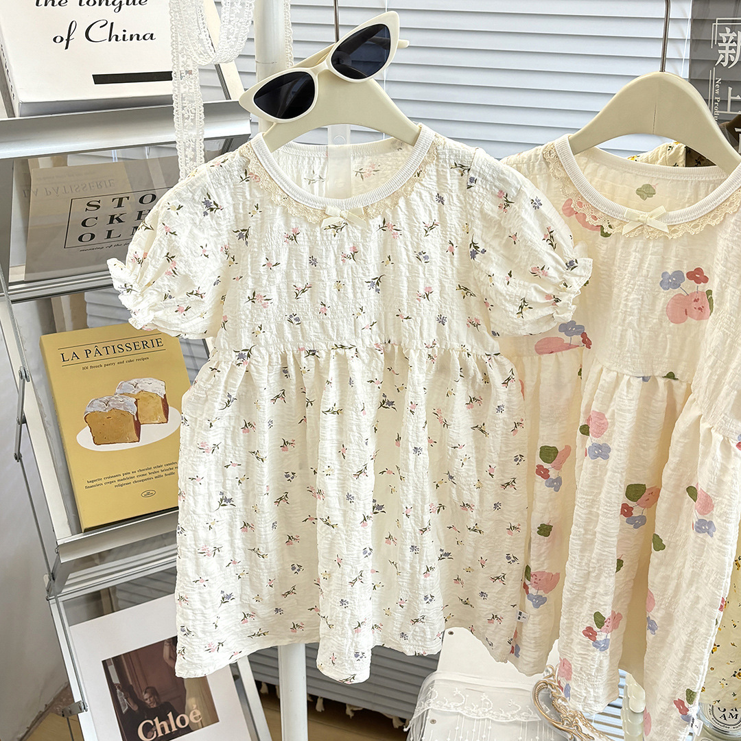 Ins 퍼프 슬리브 소녀 드레스 여름 새로운 한국어 스타일 꽃 반팔 공주 드레스 아기 카테고리 a 여름 어린이 드레스스토어 가기