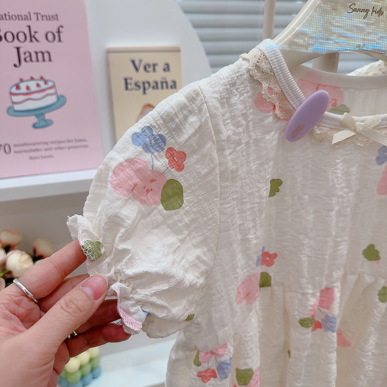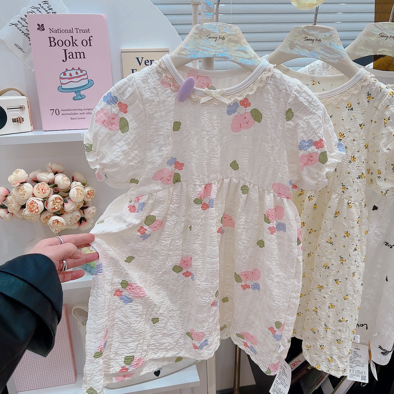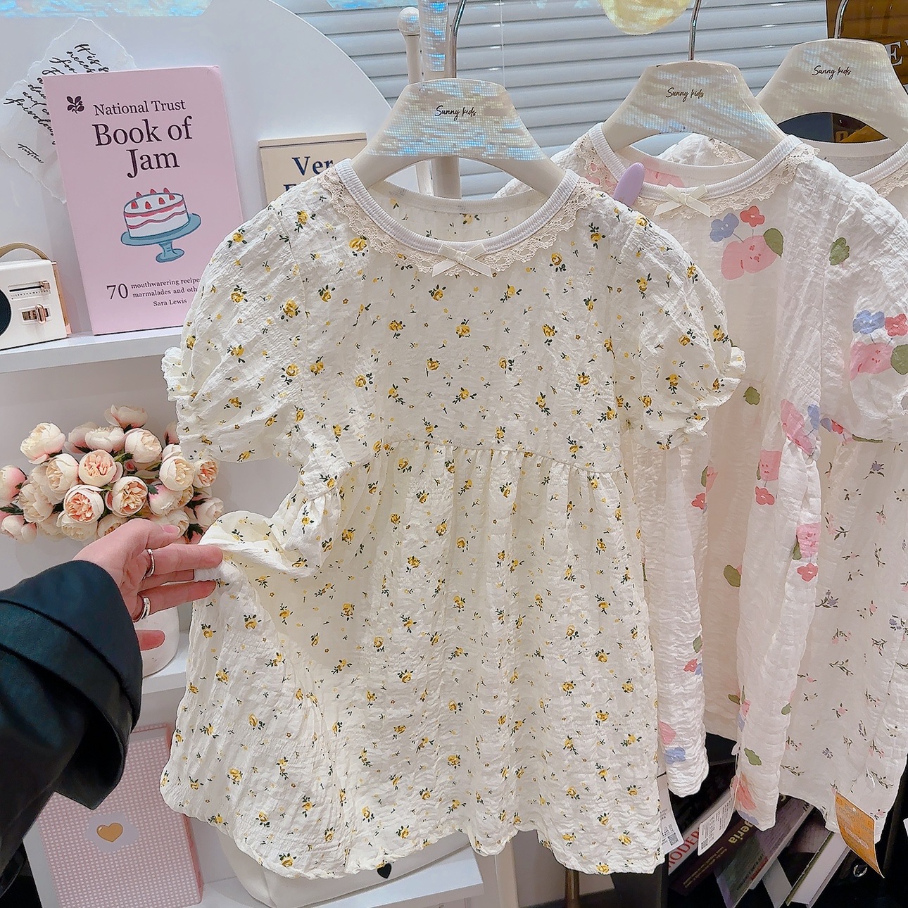 Ins 퍼프 슬리브 소녀 드레스 여름 새로운 한국어 스타일 꽃 반팔 공주 드레스 아기 카테고리 a 여름 어린이 드레스스토어 가기