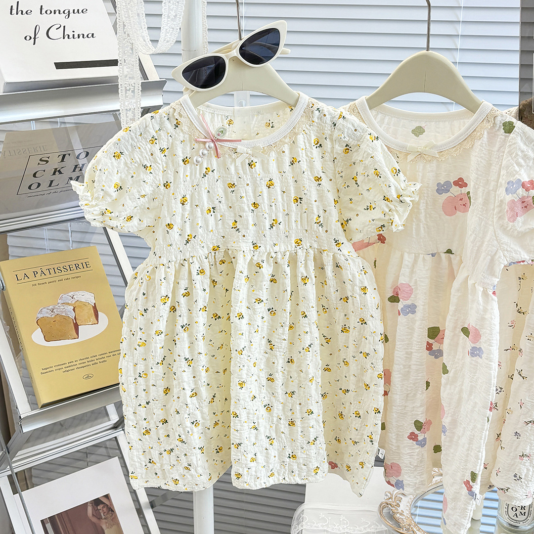 Ins 퍼프 슬리브 소녀 드레스 여름 새로운 한국어 스타일 꽃 반팔 공주 드레스 아기 카테고리 a 여름 어린이 드레스