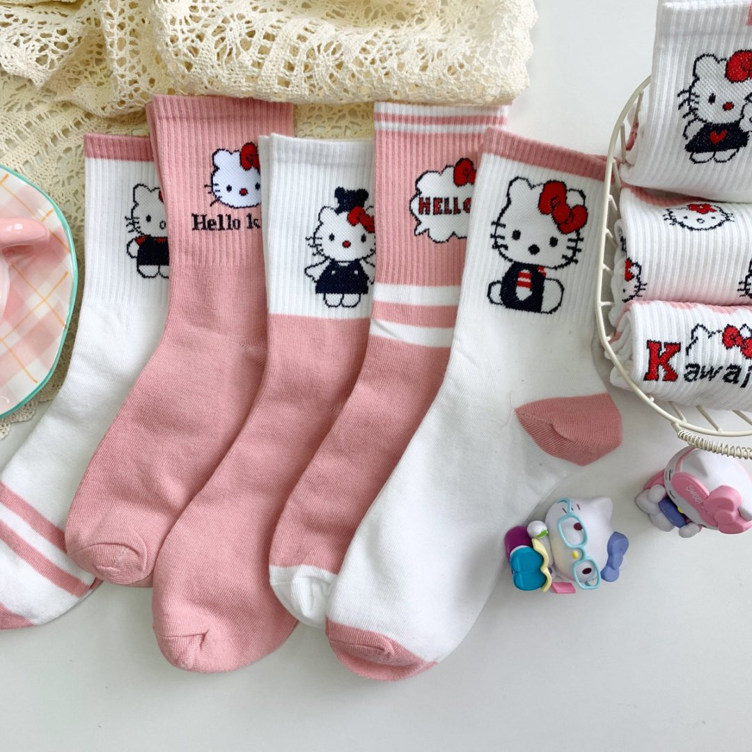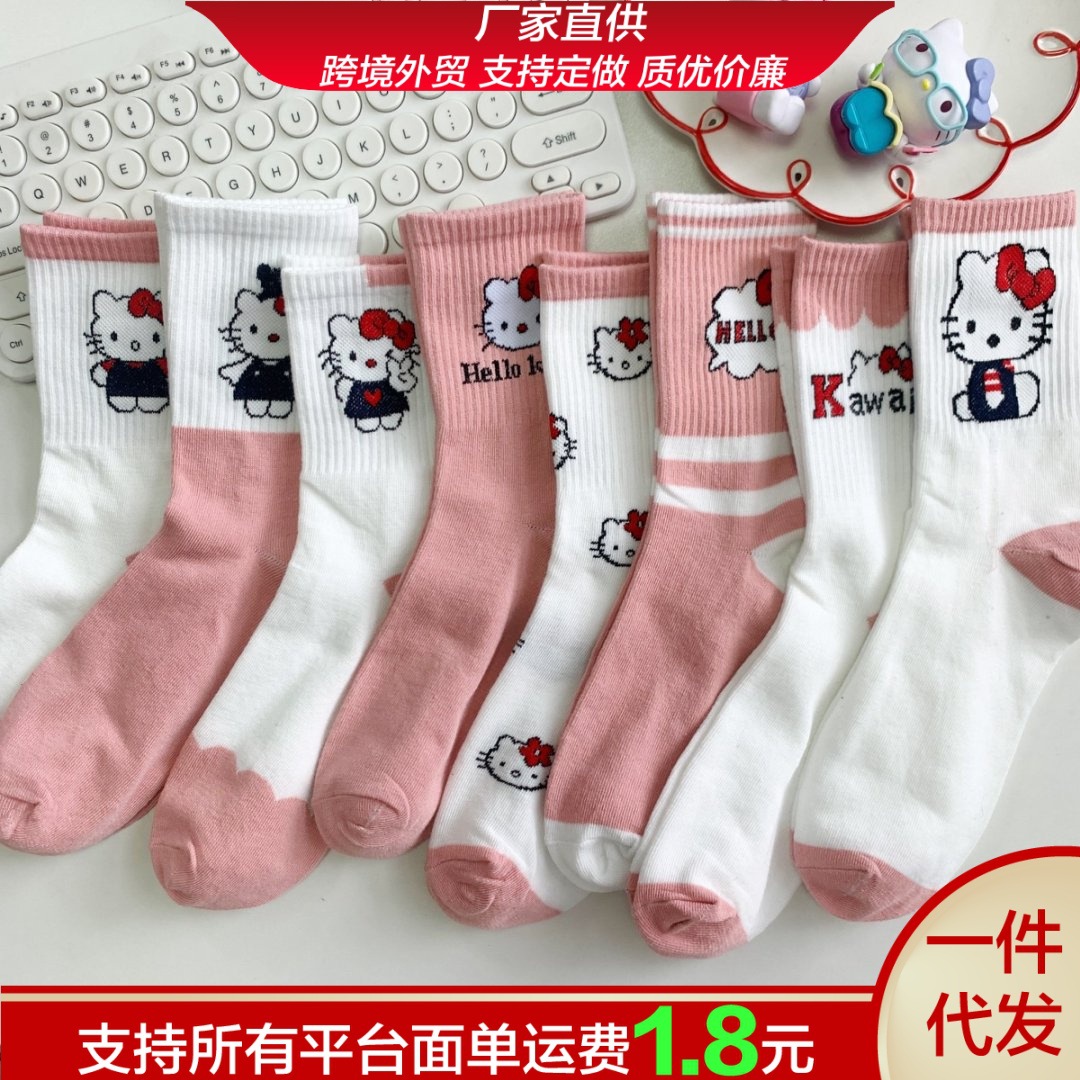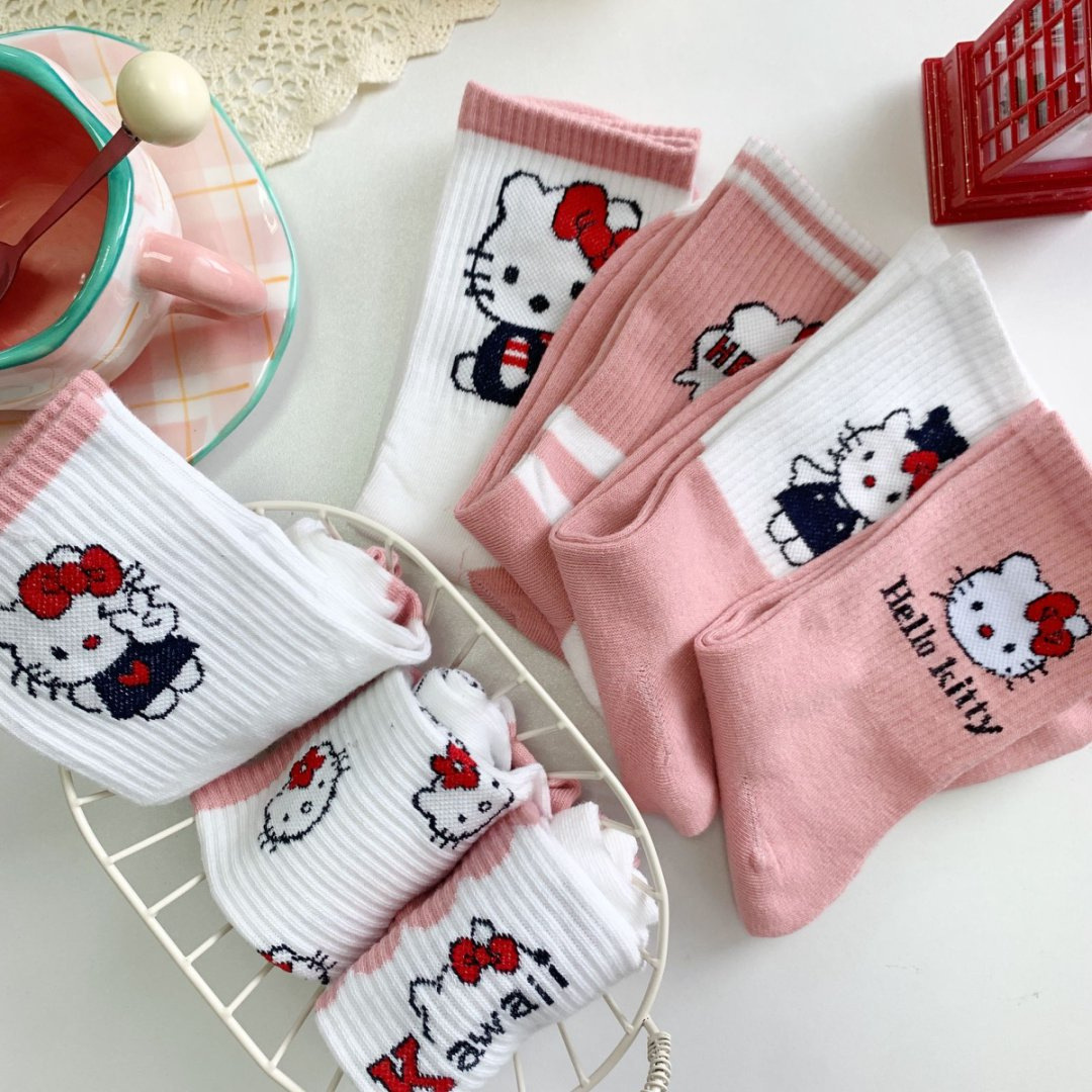 봄 여름 신상 양말 여성용 중목 양말 다용도 귀여운 만화 일본식 핑크 소녀 KT 고양이 스타일 학생용 중목 양말스토어 가기