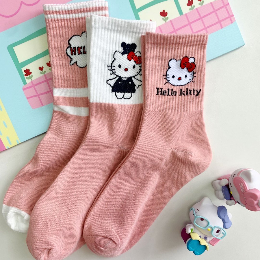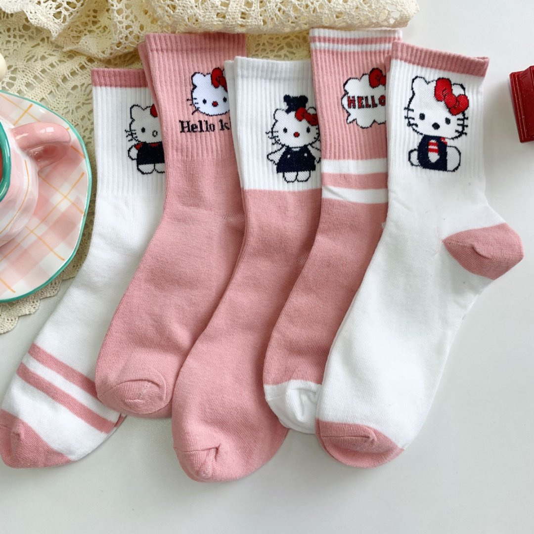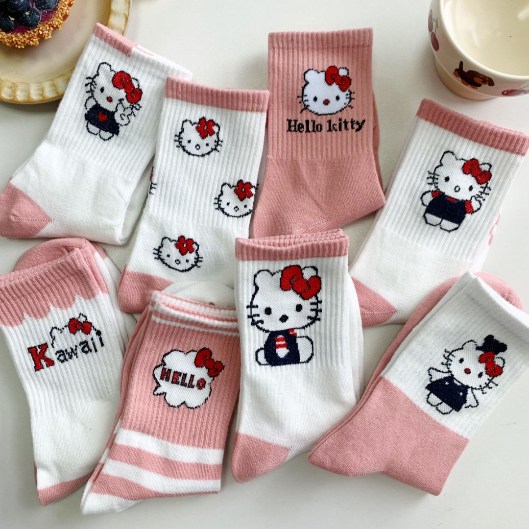 봄 여름 신상 양말 여성용 중목 양말 다용도 귀여운 만화 일본식 핑크 소녀 KT 고양이 스타일 학생용 중목 양말스토어 가기