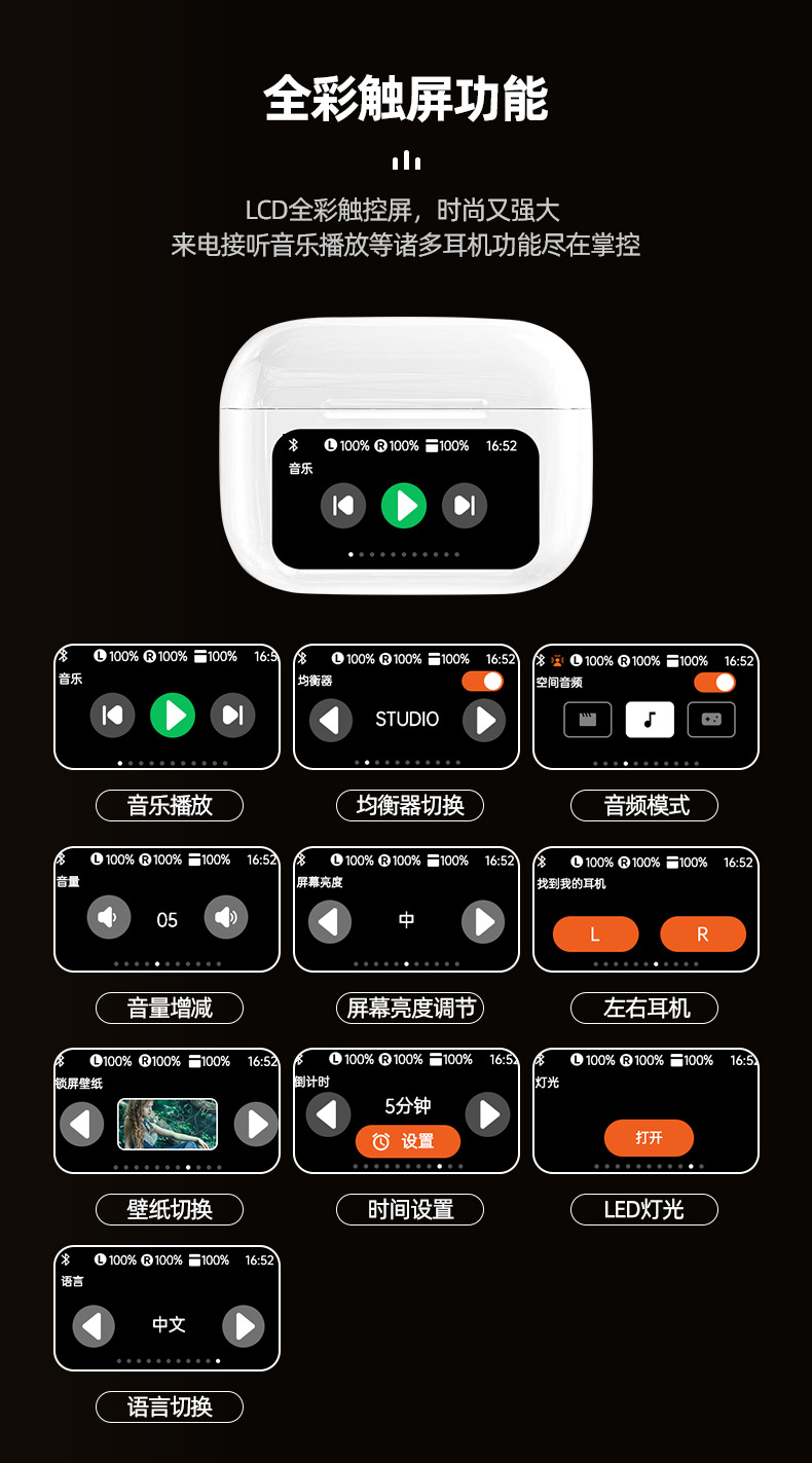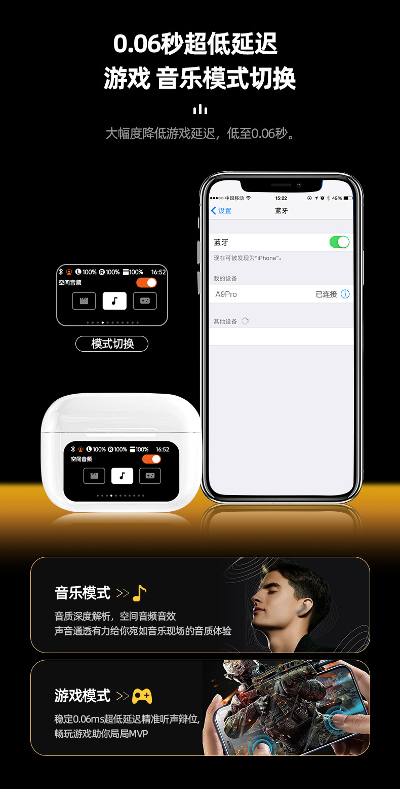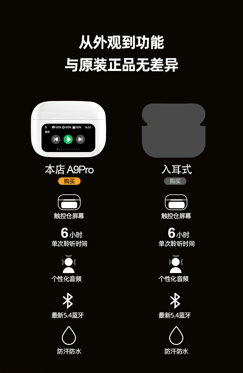 새로운 블루투스 무선 헤드셋 A9pro 컬러 스크린 터치 이어 버드 긴 배터리 수명 Huaqiangbei 블루투스 헤드셋스토어 가기