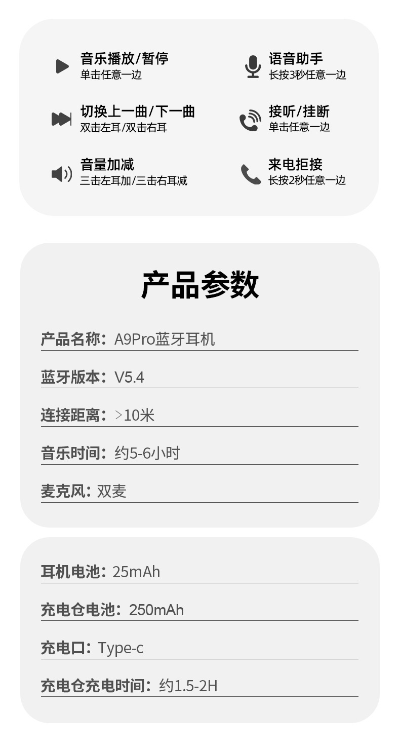 새로운 블루투스 무선 헤드셋 A9pro 컬러 스크린 터치 이어 버드 긴 배터리 수명 Huaqiangbei 블루투스 헤드셋