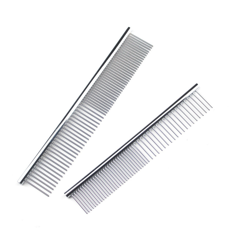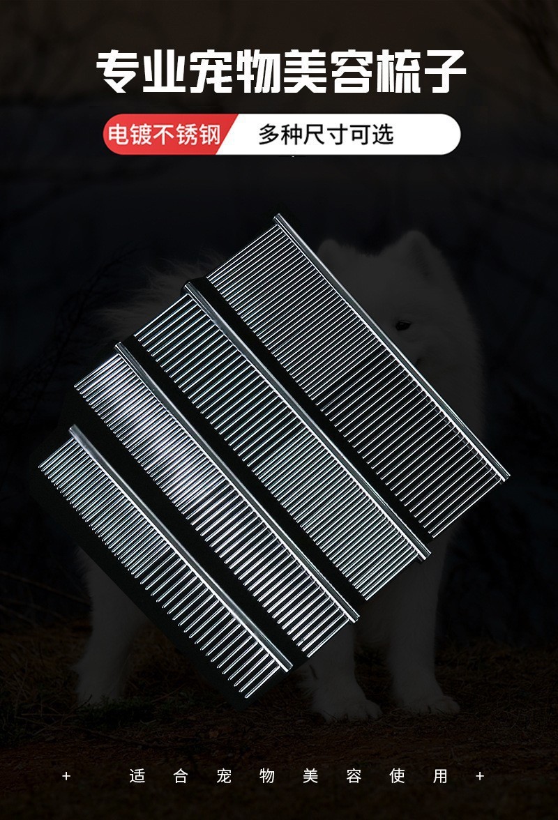 강철 빗 스트레이트 빗 애완 동물 빗 실버 중형 소형 애완 동물 고양이 개 스테인레스 스틸 양면 빗 크로스 보더스토어 가기