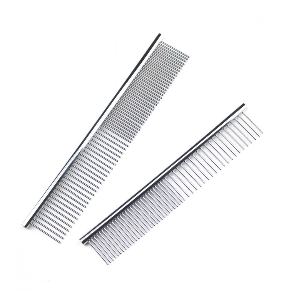 강철 빗 스트레이트 빗 애완 동물 빗 실버 중형 소형 애완 동물 고양이 개 스테인레스 스틸 양면 빗 크로스 보더