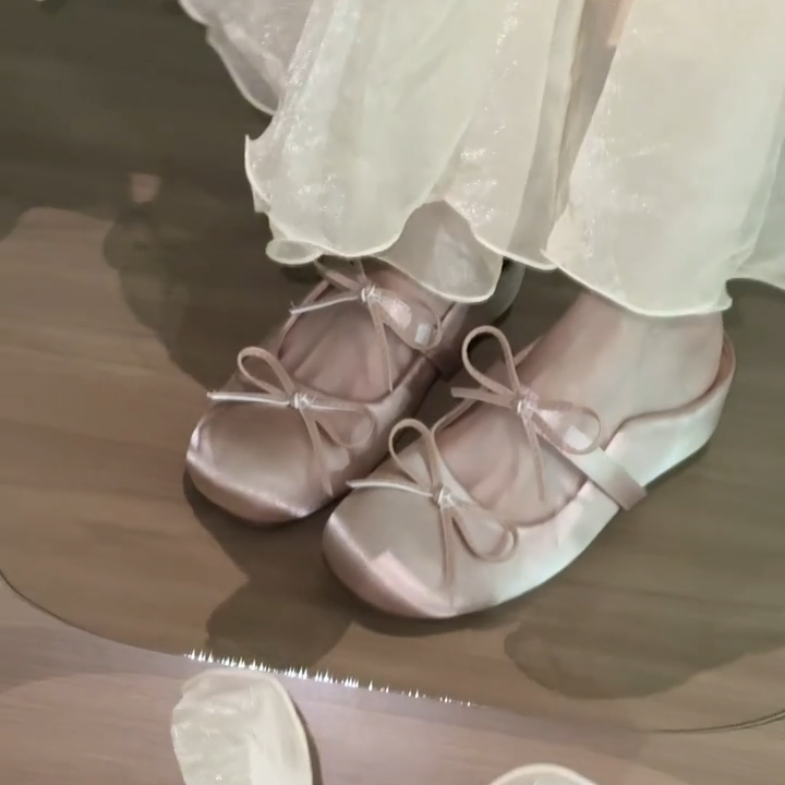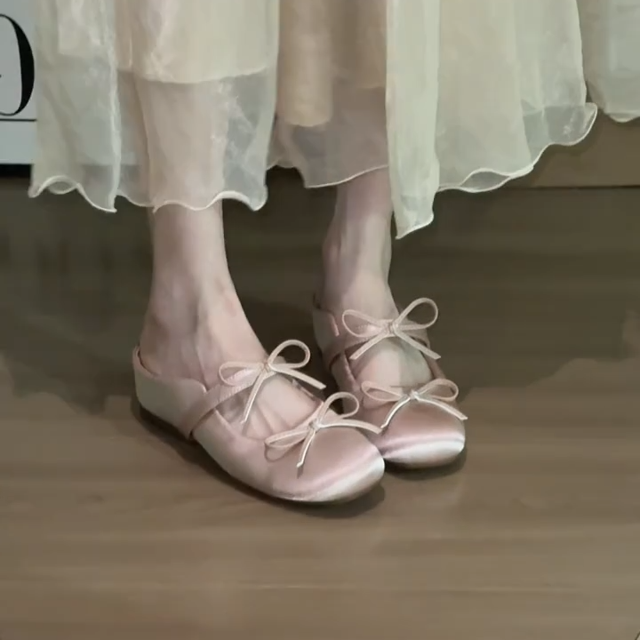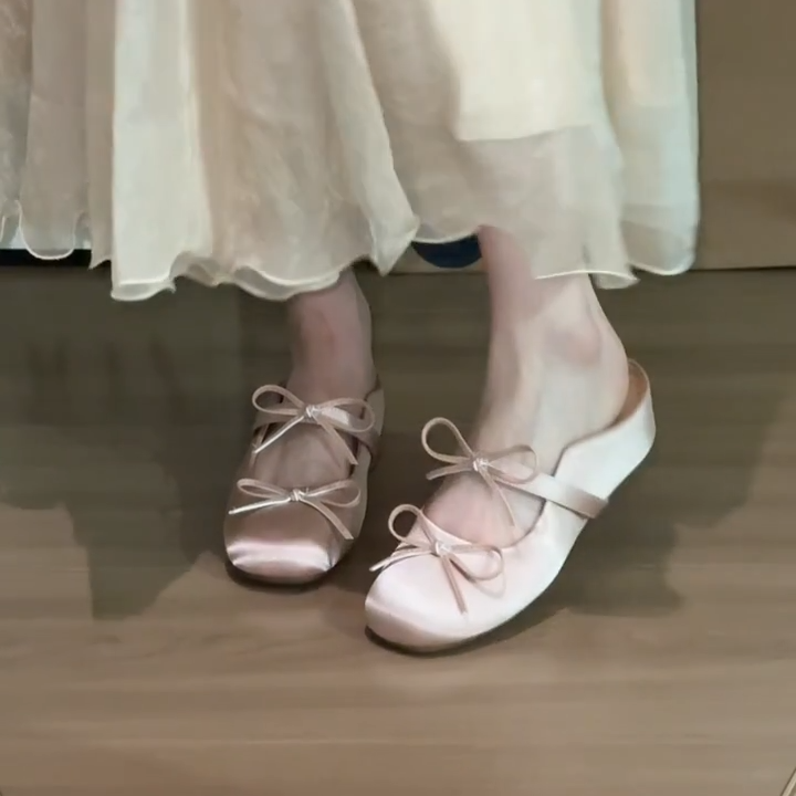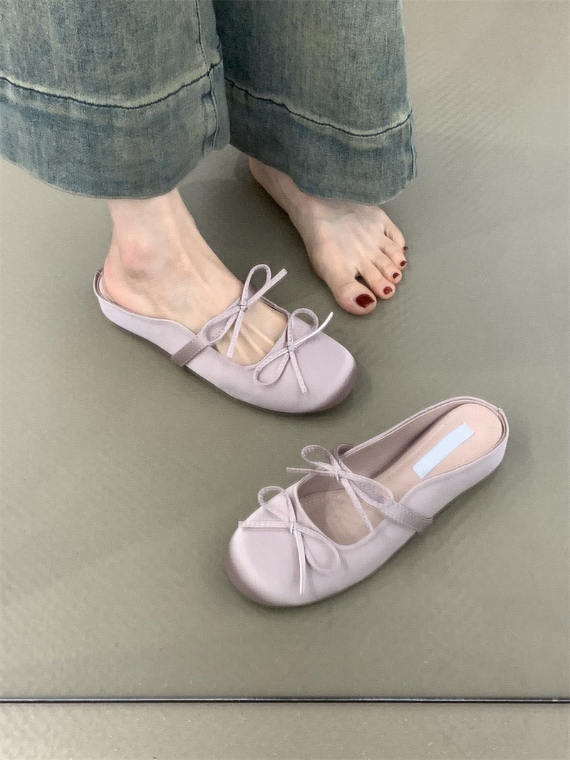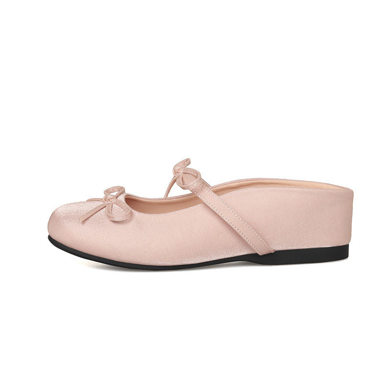 양가죽 버전 ~ 키가 작은 분들을 위한 프렌치 메리제인 슈즈, 하프슬립 샌들, 여성용 리본발레슈즈