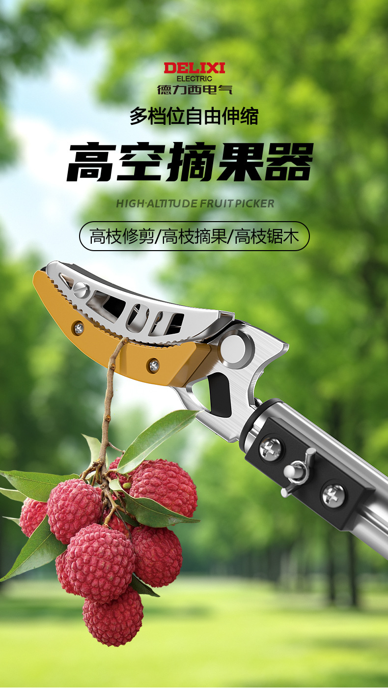 델리시 전기 과일 따기 가위, 정원 과일 나무 따기, 리치 및 링곤 과일 고공 과일 따기 도구, 텔레스코픽 막대 과일 따기 도구스토어 가기