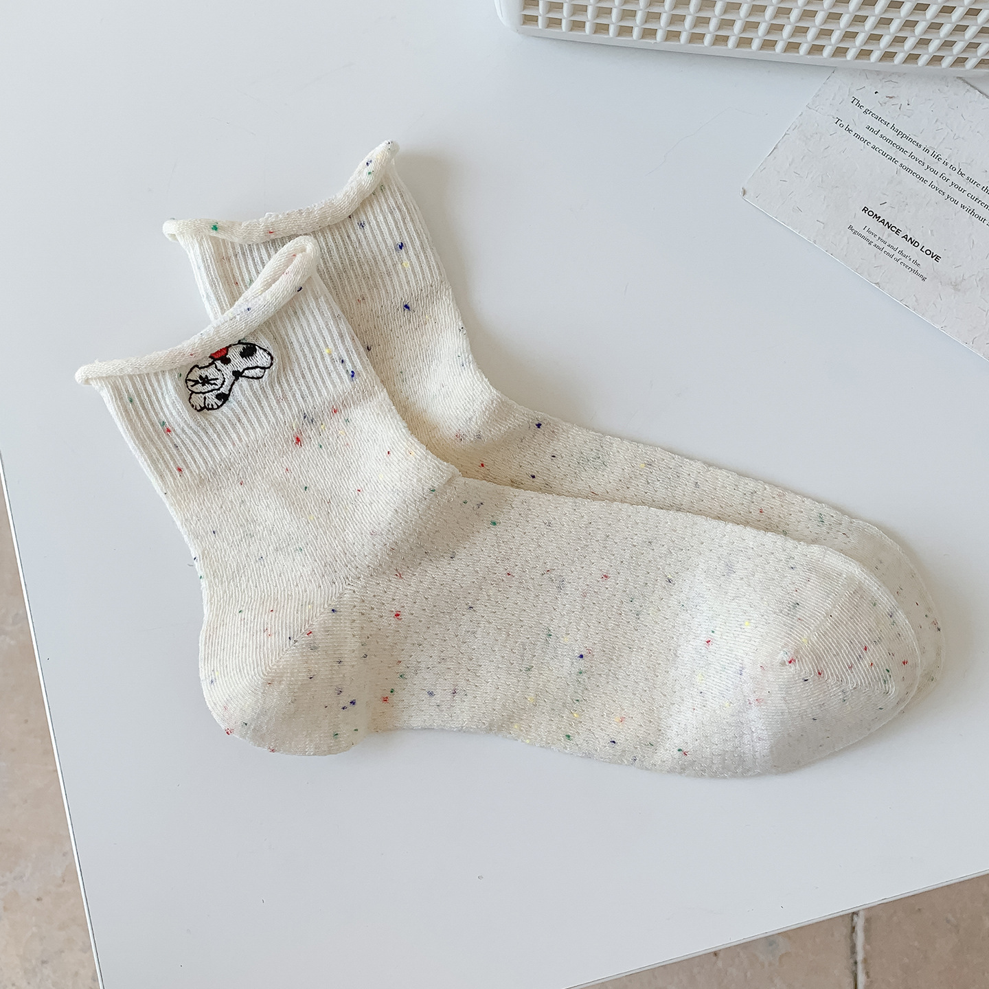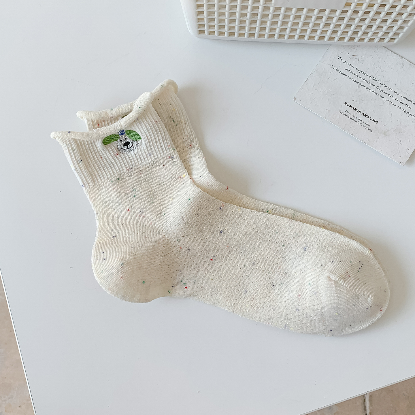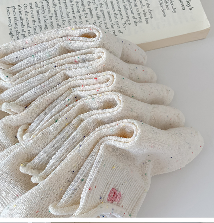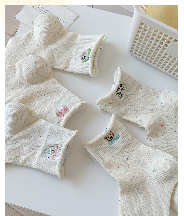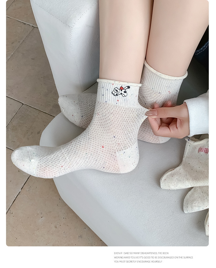여름 여성을위한 한국 자수 양말 얇은 메쉬 통기성 캐주얼 컬 귀여운 강아지 새로운 작은 중간 튜브면 양말
