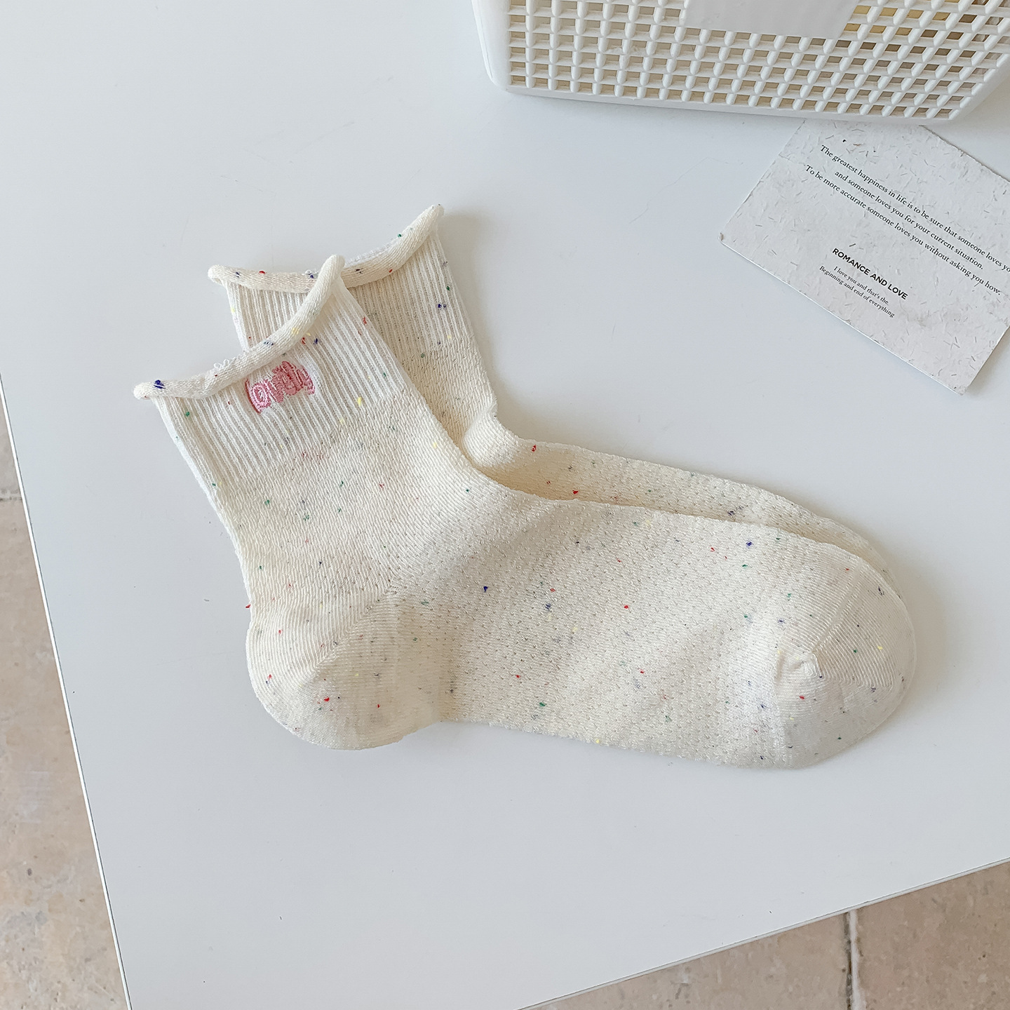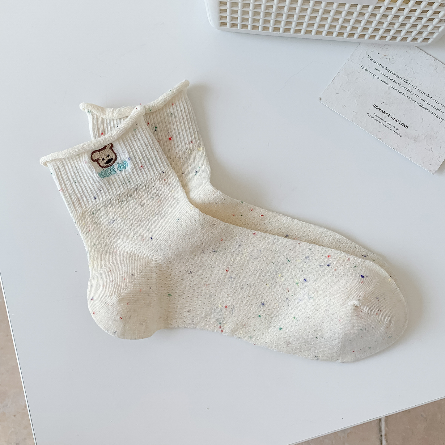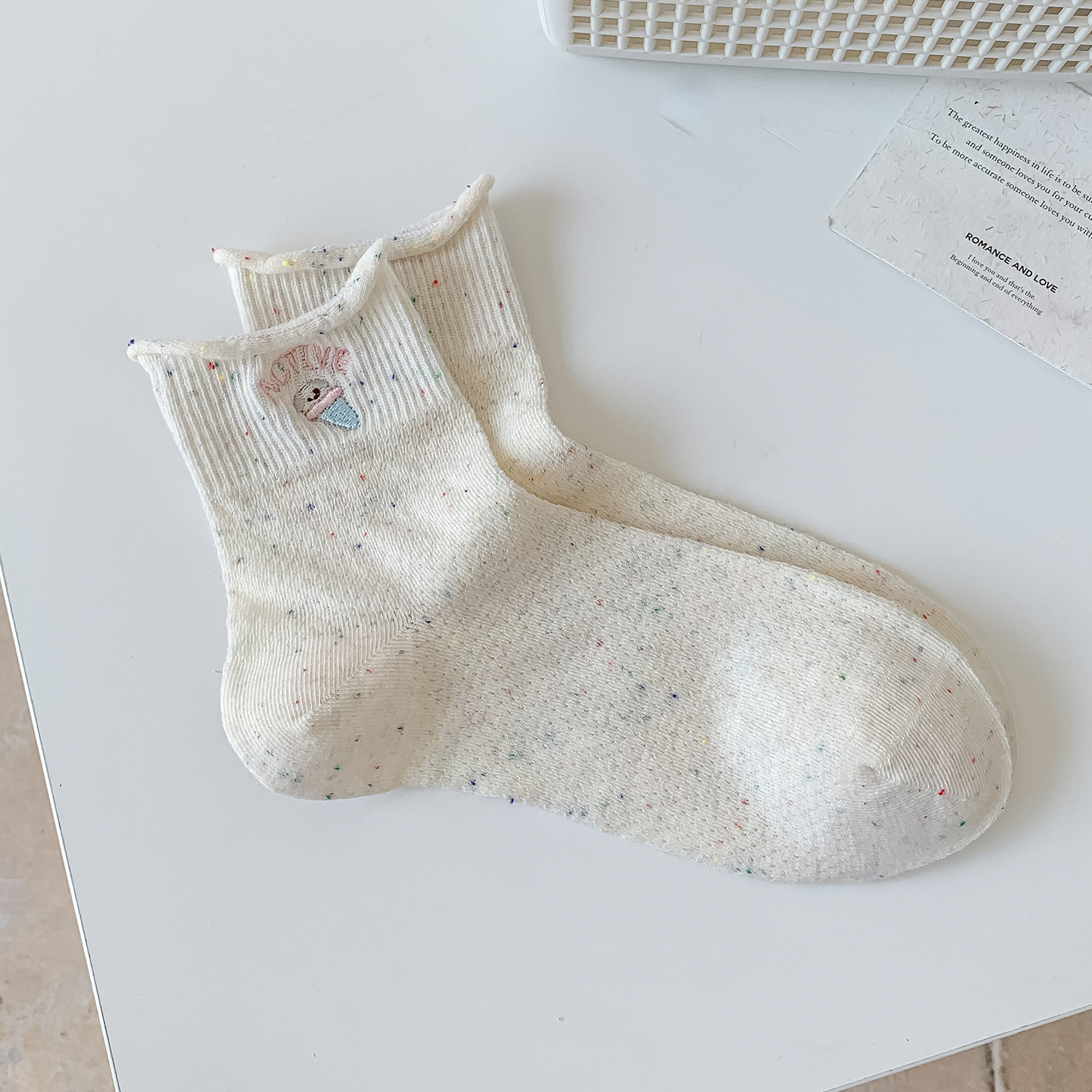 여름 여성을위한 한국 자수 양말 얇은 메쉬 통기성 캐주얼 컬 귀여운 강아지 새로운 작은 중간 튜브면 양말