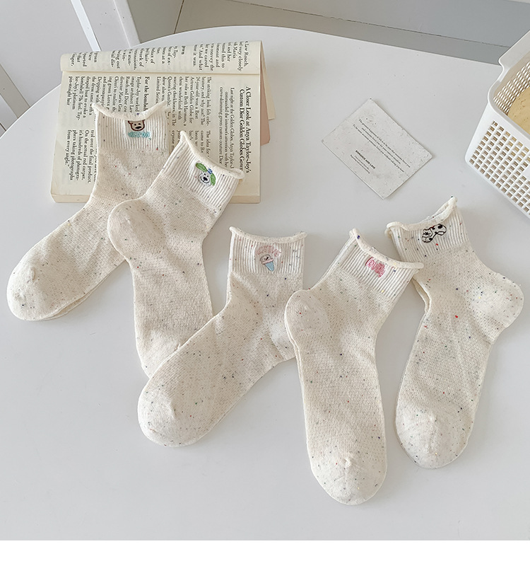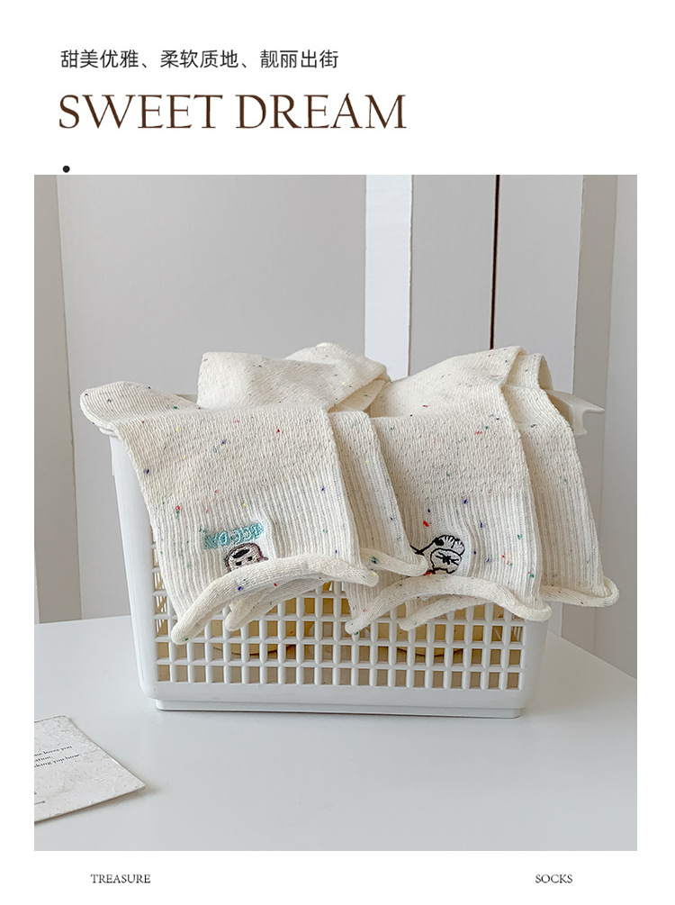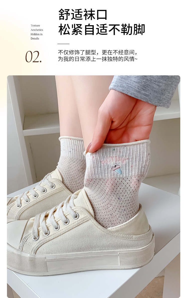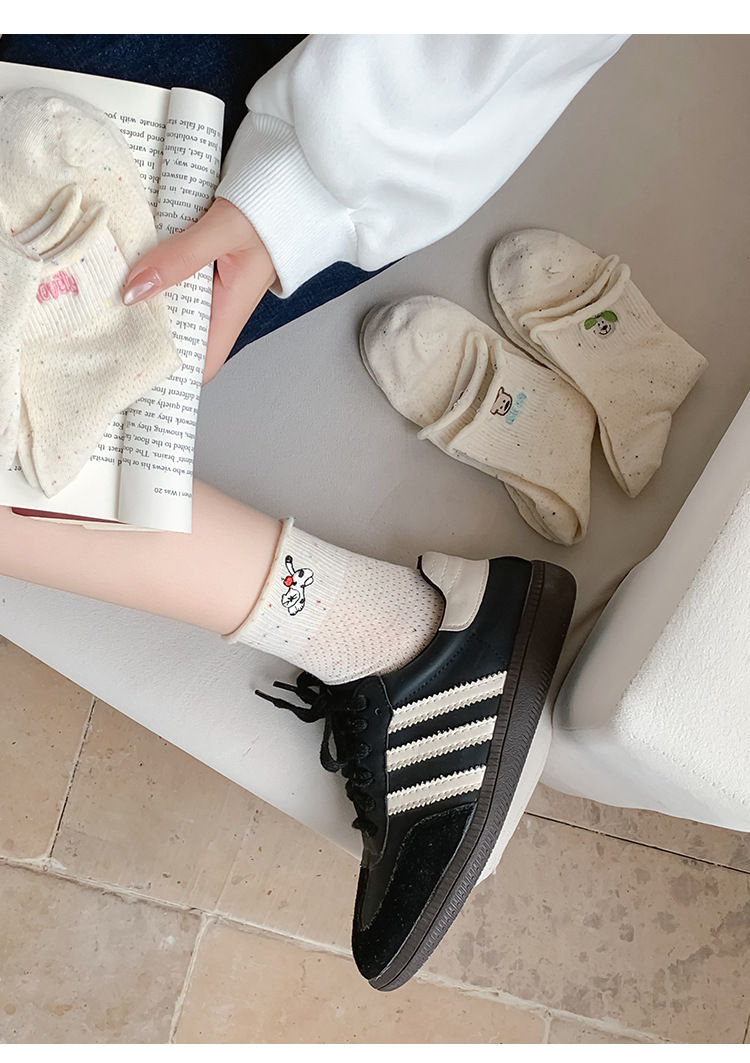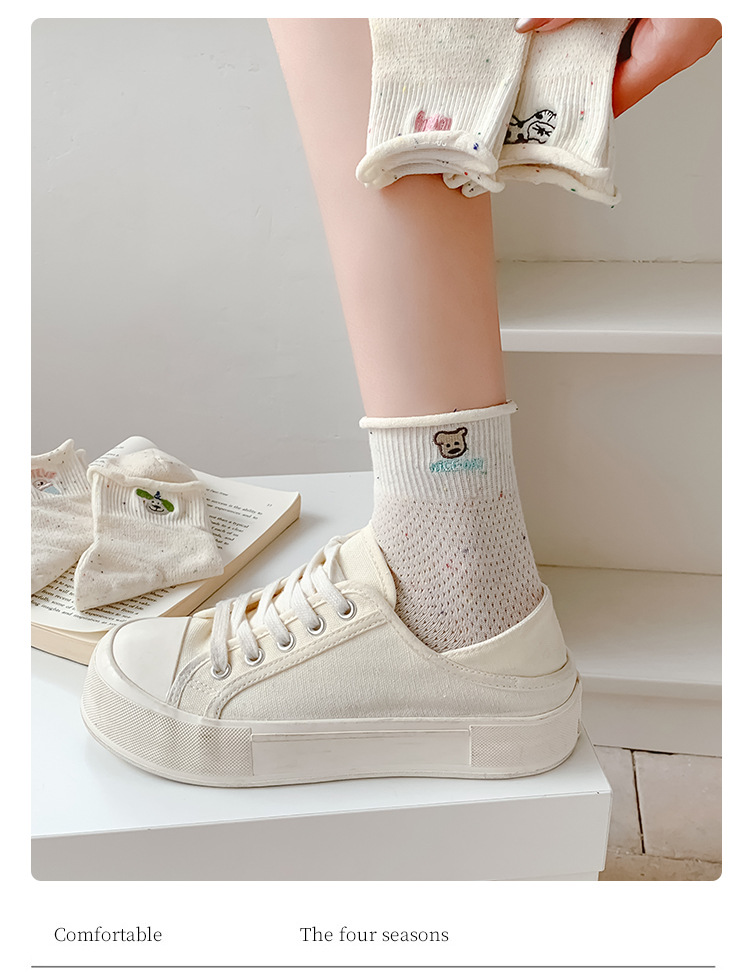 여름 여성을위한 한국 자수 양말 얇은 메쉬 통기성 캐주얼 컬 귀여운 강아지 새로운 작은 중간 튜브면 양말스토어 가기