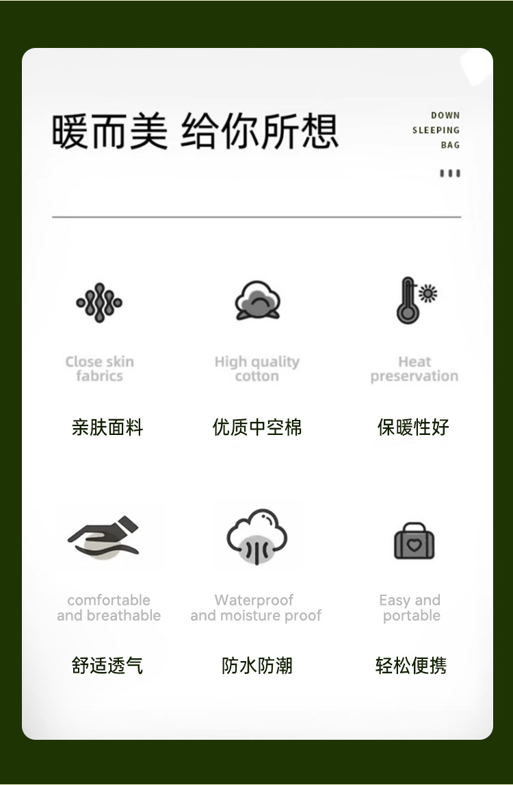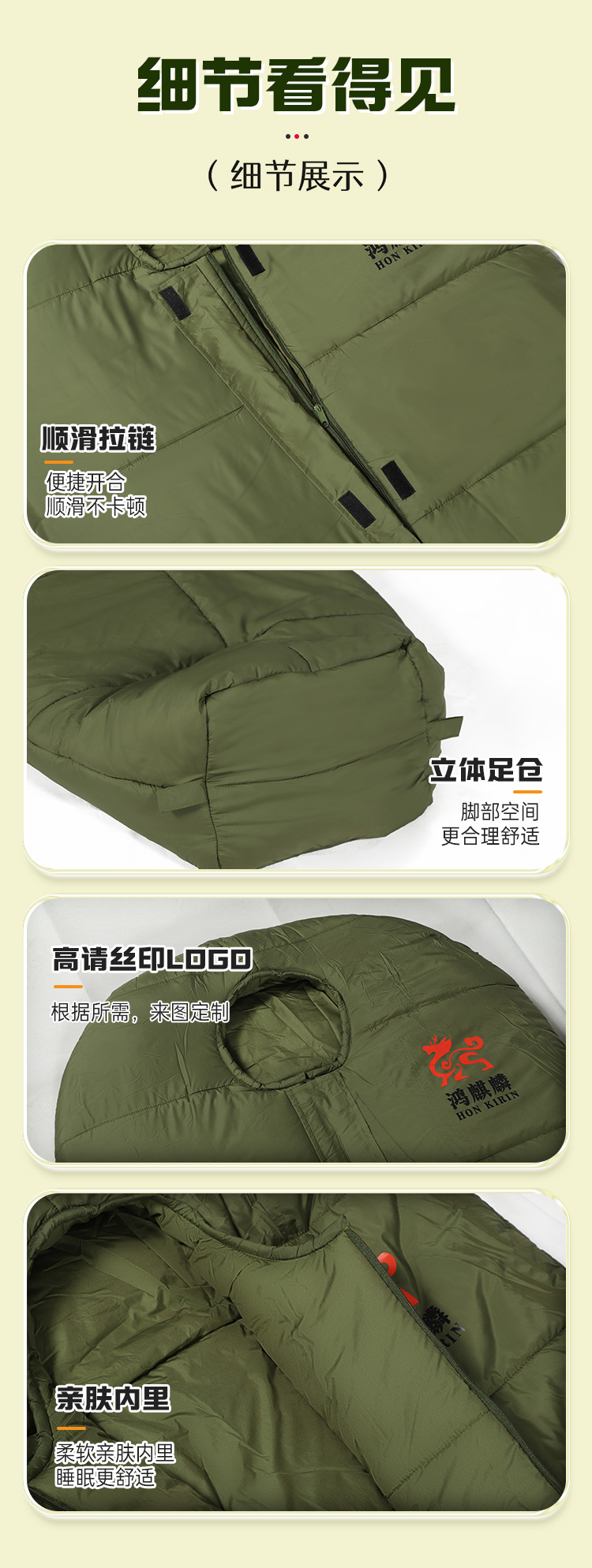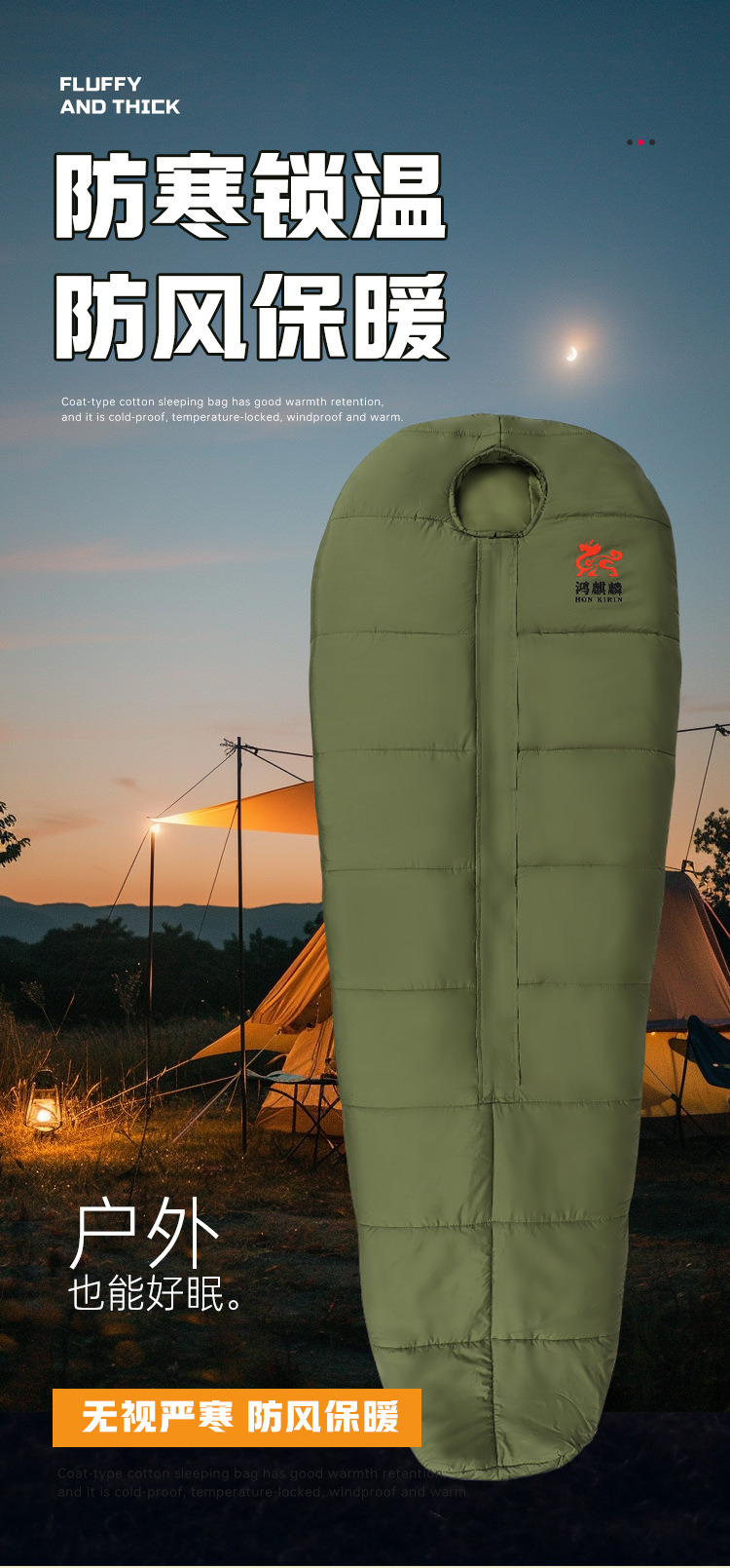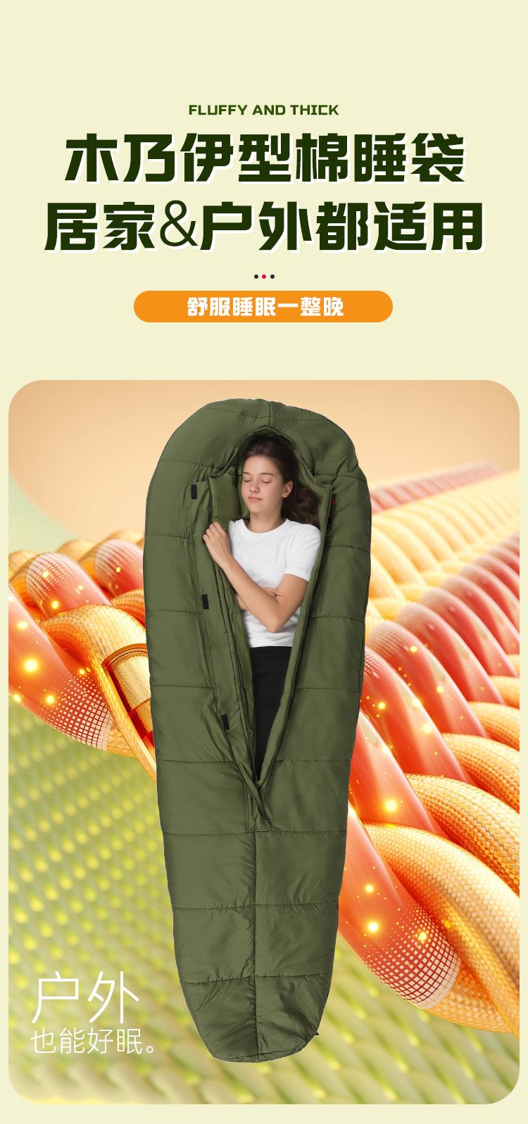 1인용 휴대용 침낭, 평면 봉투형 침낭, 가을 겨울 군용 녹색 침낭, 따뜻하고 방한 위장 군용 엄마 침낭스토어 가기