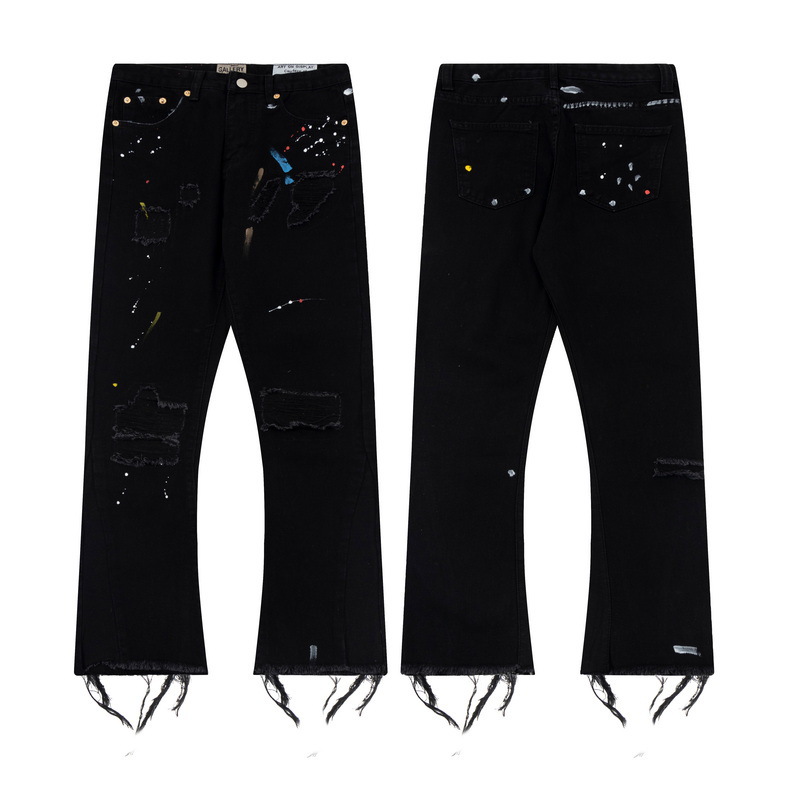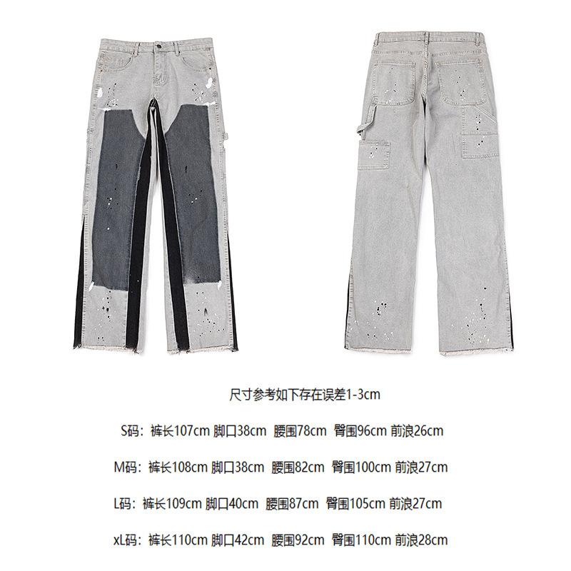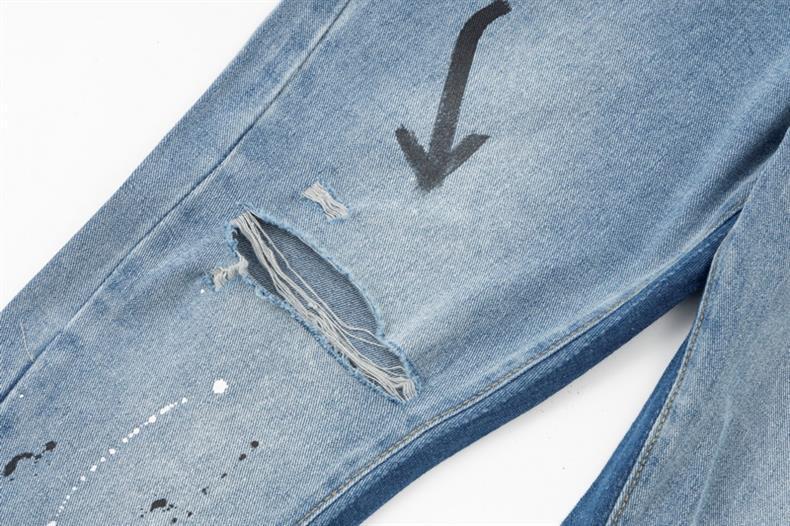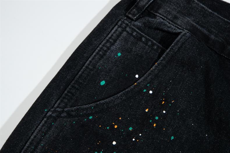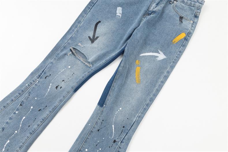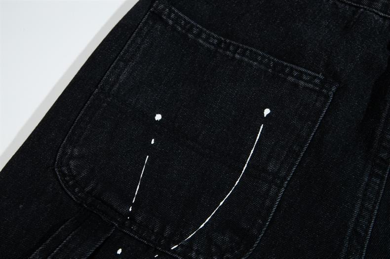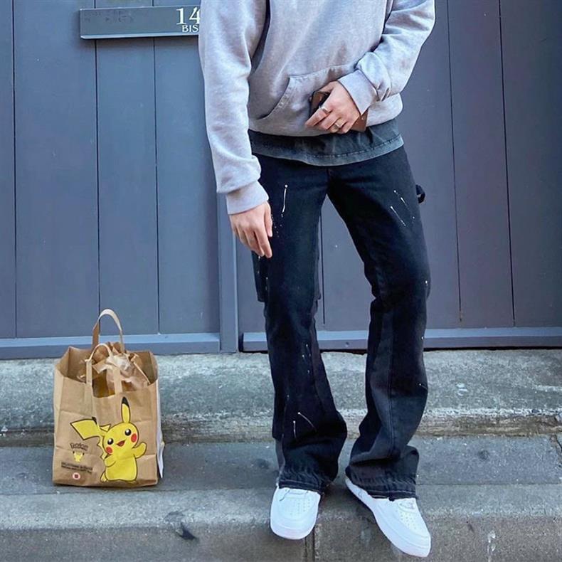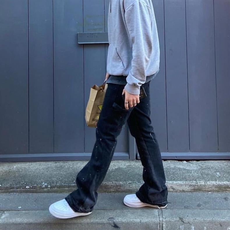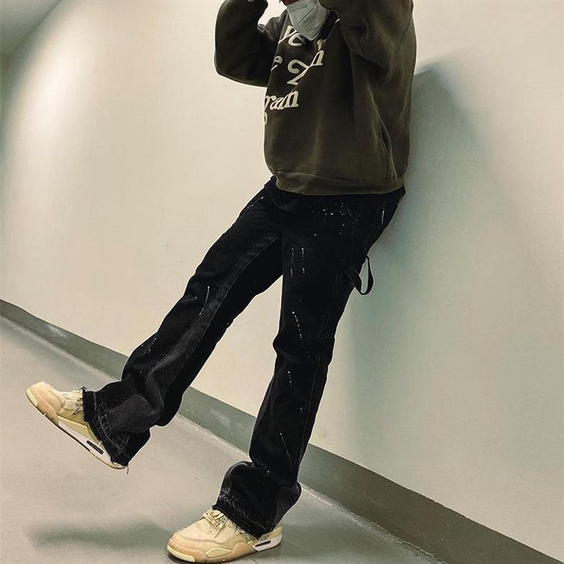 올바른 버전 갤러리 데프 찢어진 스플래시 잉크 청바지 바이브 스타일 남성 루즈 스트레이트 하이 스트리트 롱 팬츠
