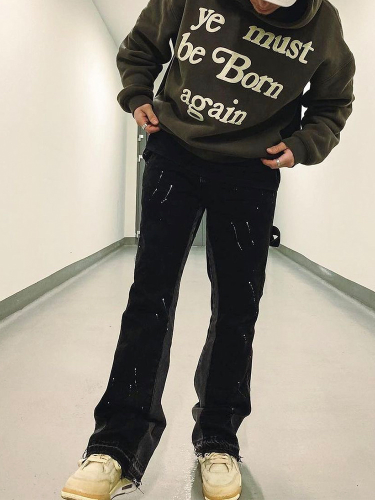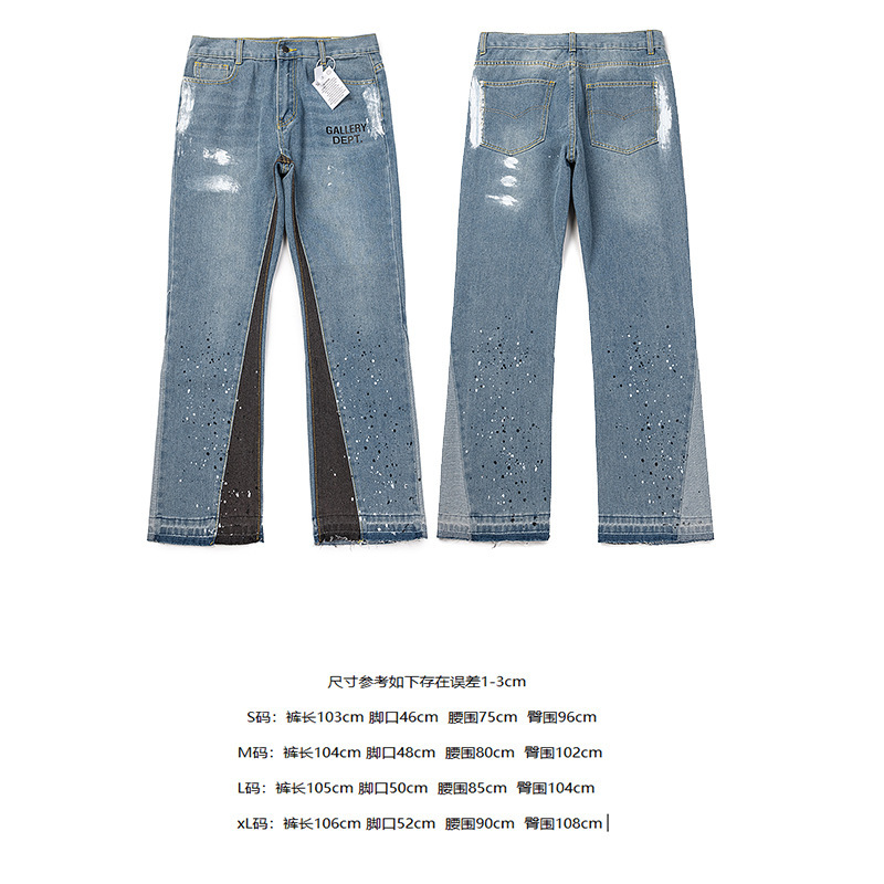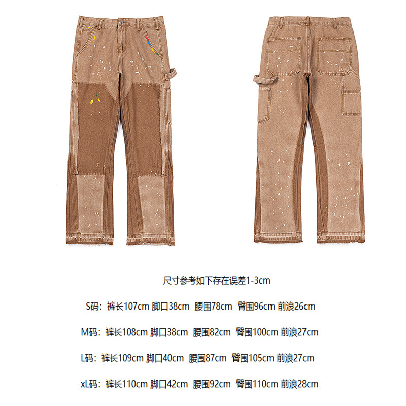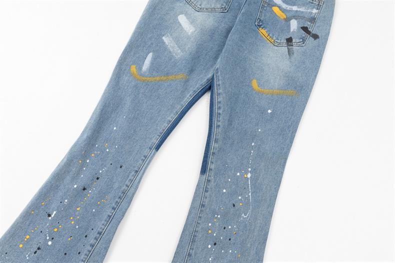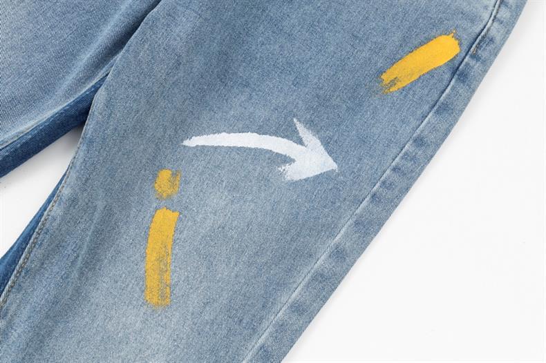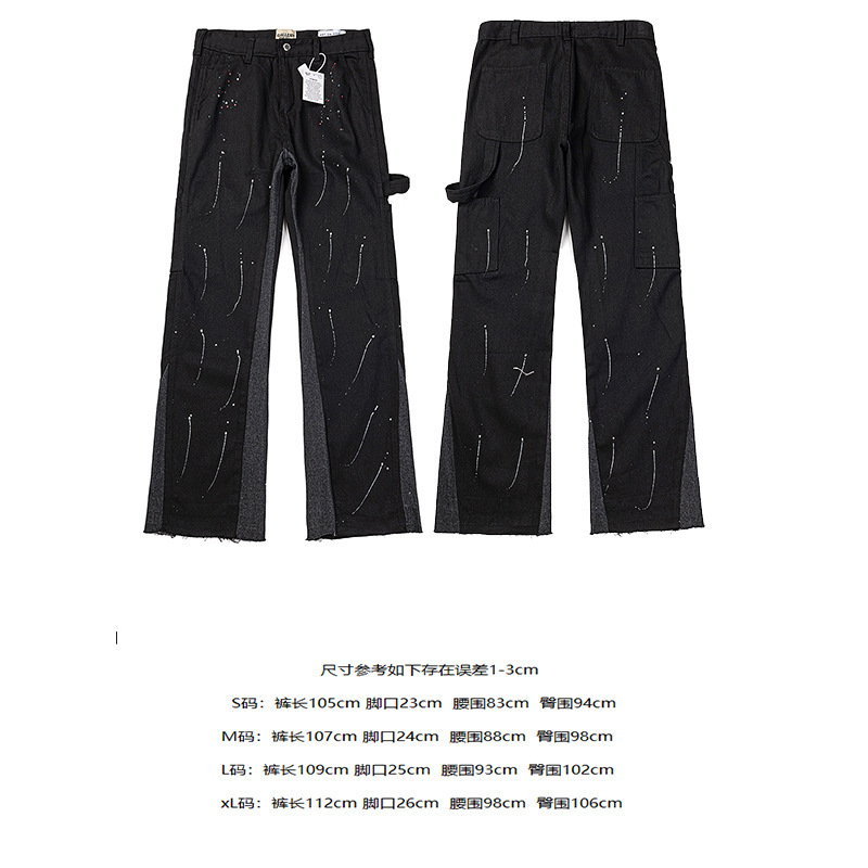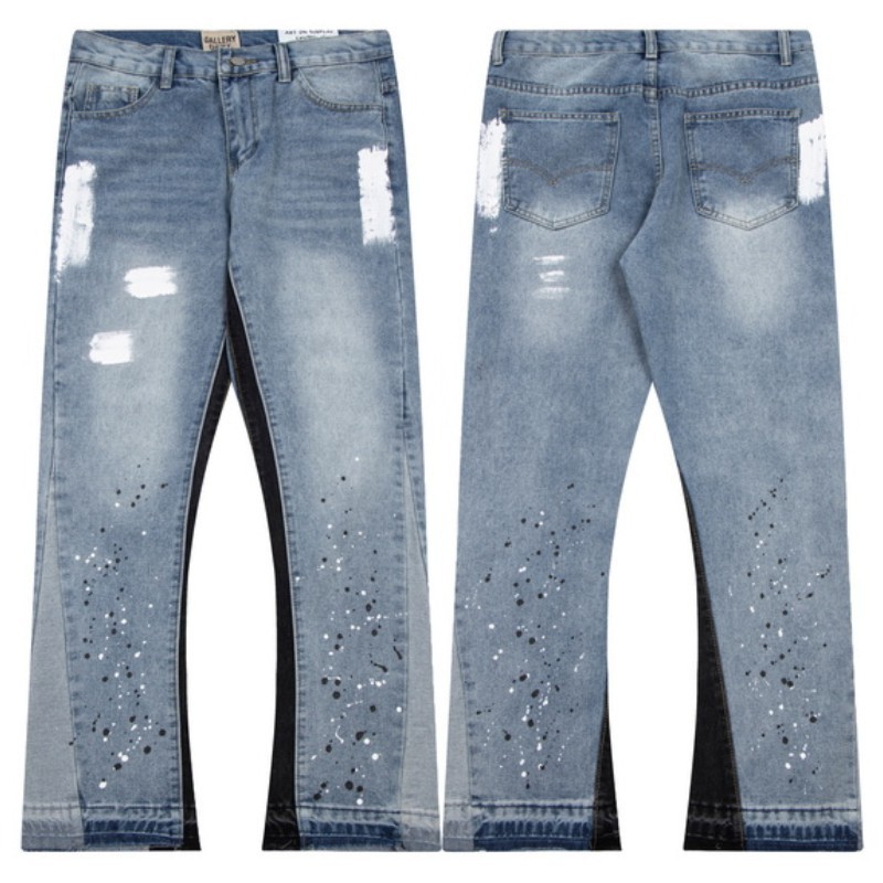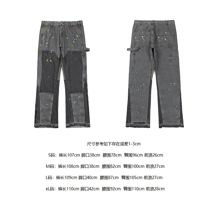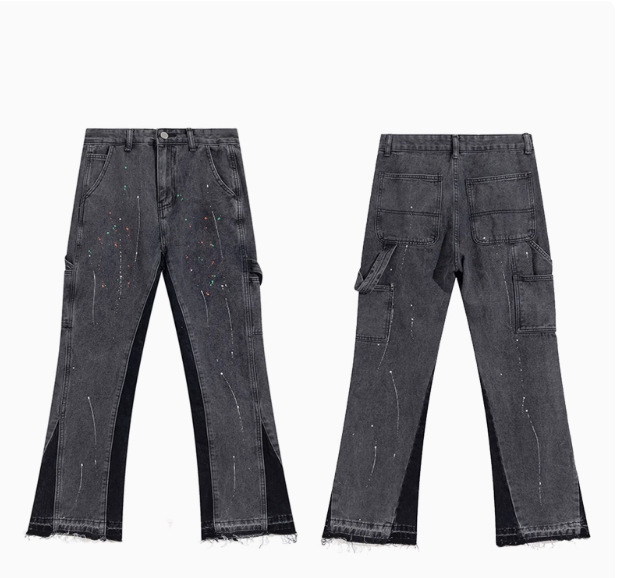 올바른 버전 갤러리 데프 찢어진 스플래시 잉크 청바지 바이브 스타일 남성 루즈 스트레이트 하이 스트리트 롱 팬츠