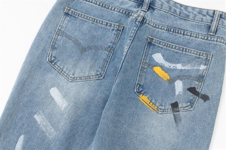 올바른 버전 갤러리 데프 찢어진 스플래시 잉크 청바지 바이브 스타일 남성 루즈 스트레이트 하이 스트리트 롱 팬츠스토어 가기
