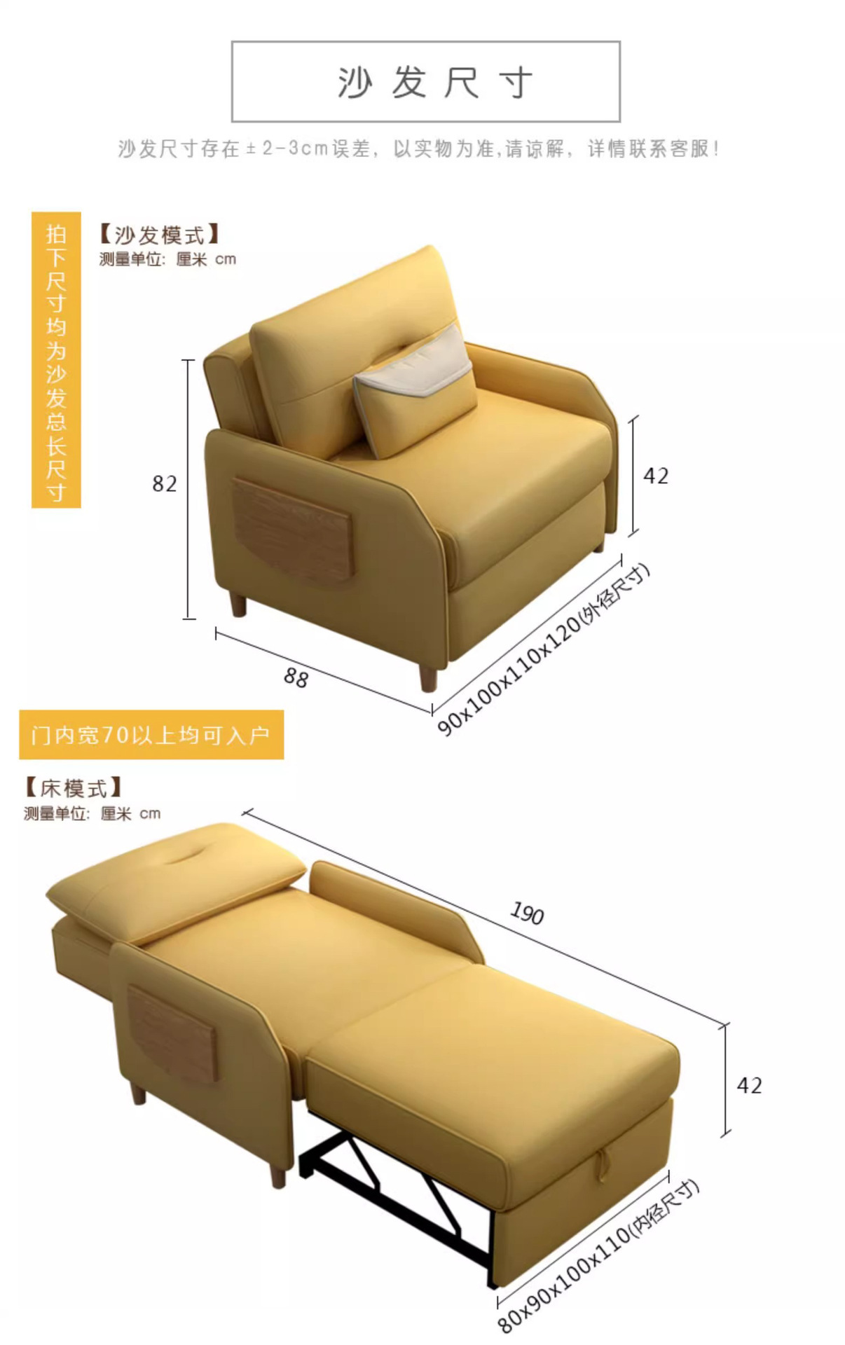 소파 베드 접이식 이중 목적 거실 발코니 패브릭 소파 작은 아파트 가정용 다기능 싱글 및 더블 접이식 침대스토어 가기