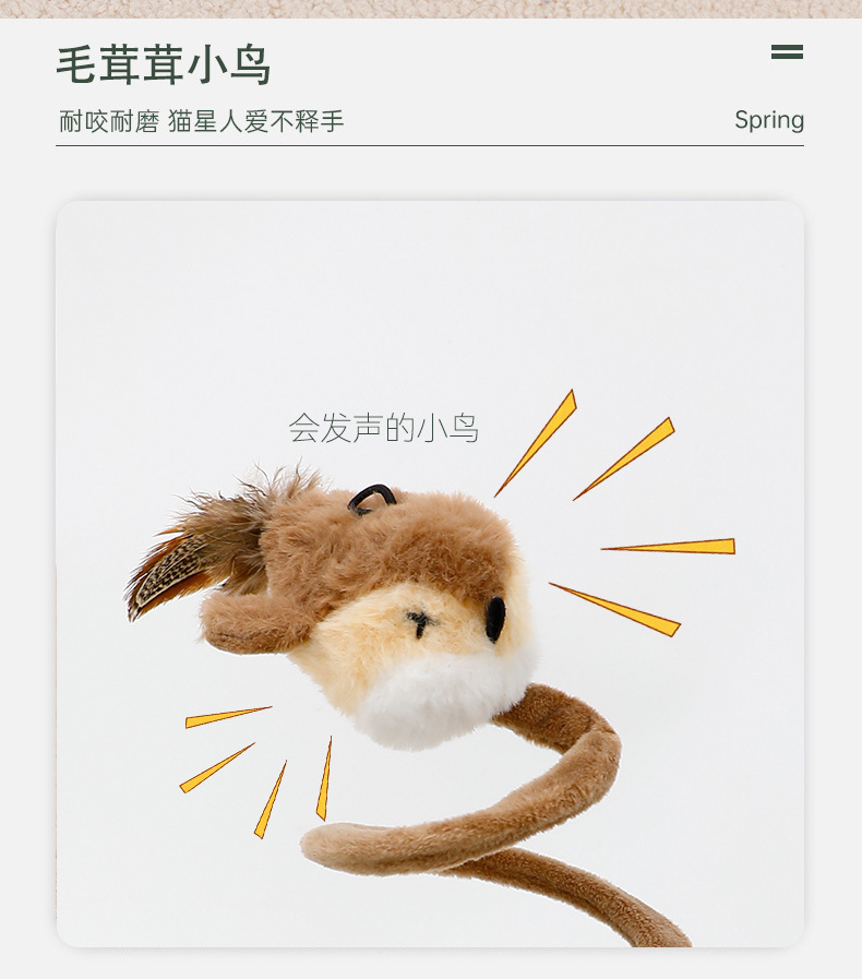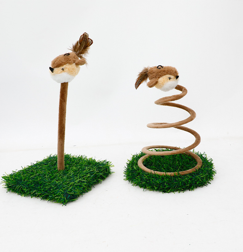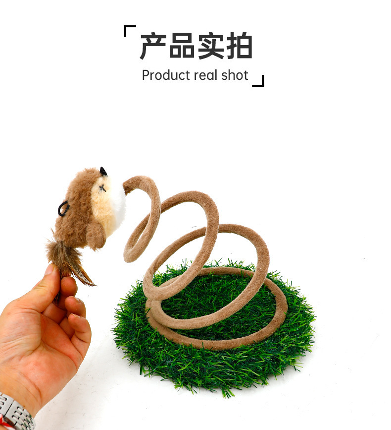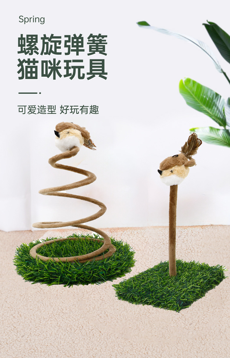 국경을 넘나드는 봉제 참새 스프링 와이어 고양이 놀리는 막대 고양이 자기 자극 및 지루함 해소 장난감 나선형 스프링 디스크 고양이 스크래치 보드스토어 가기