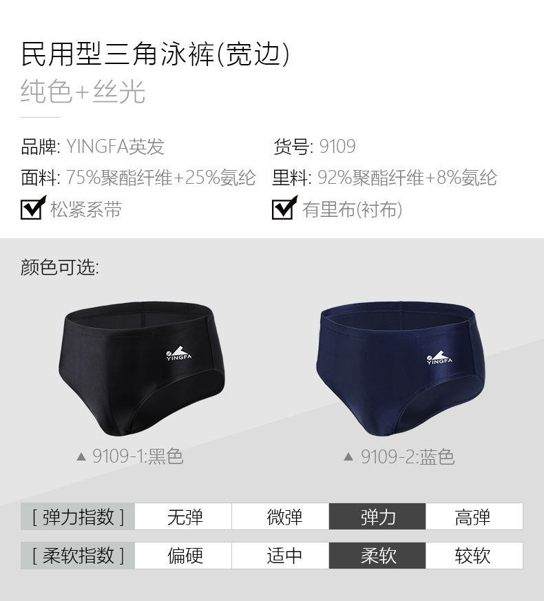 Yingfa 삼각 수영 팬티 캐주얼 남성 수영 팬티 9109 와이드 사이드
