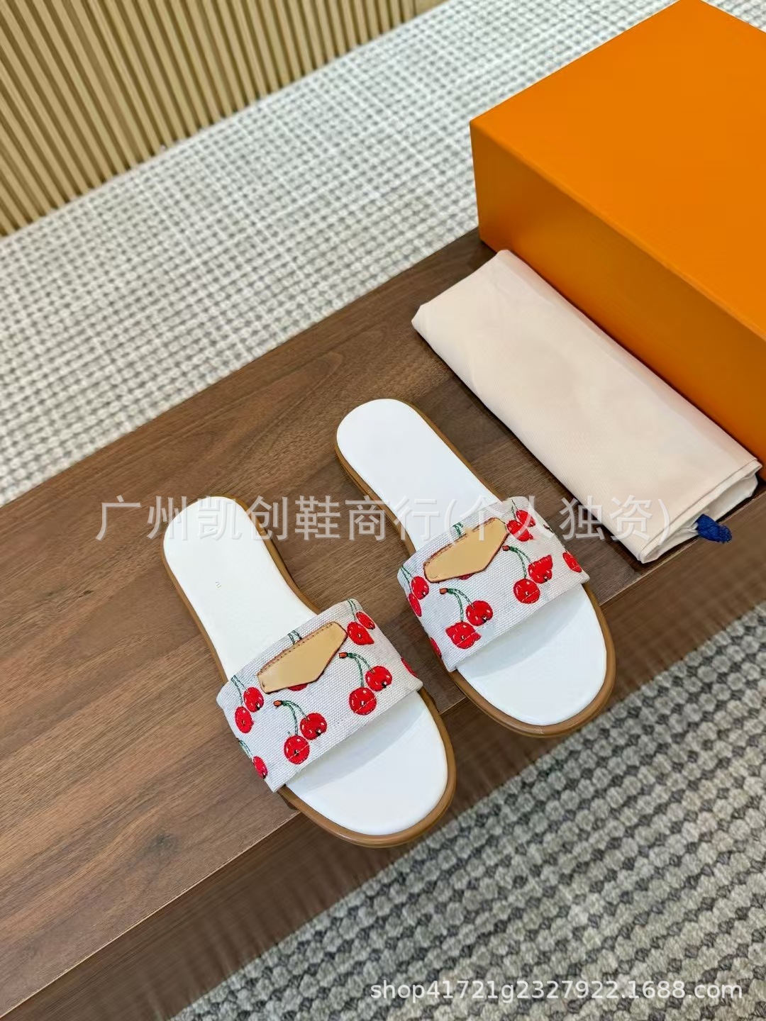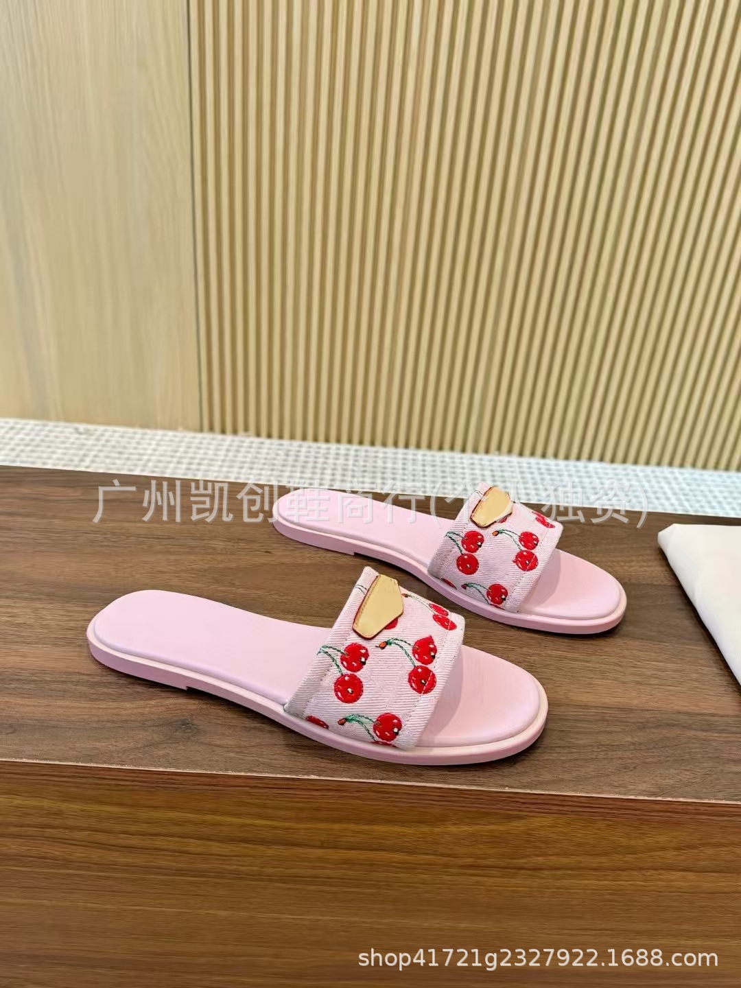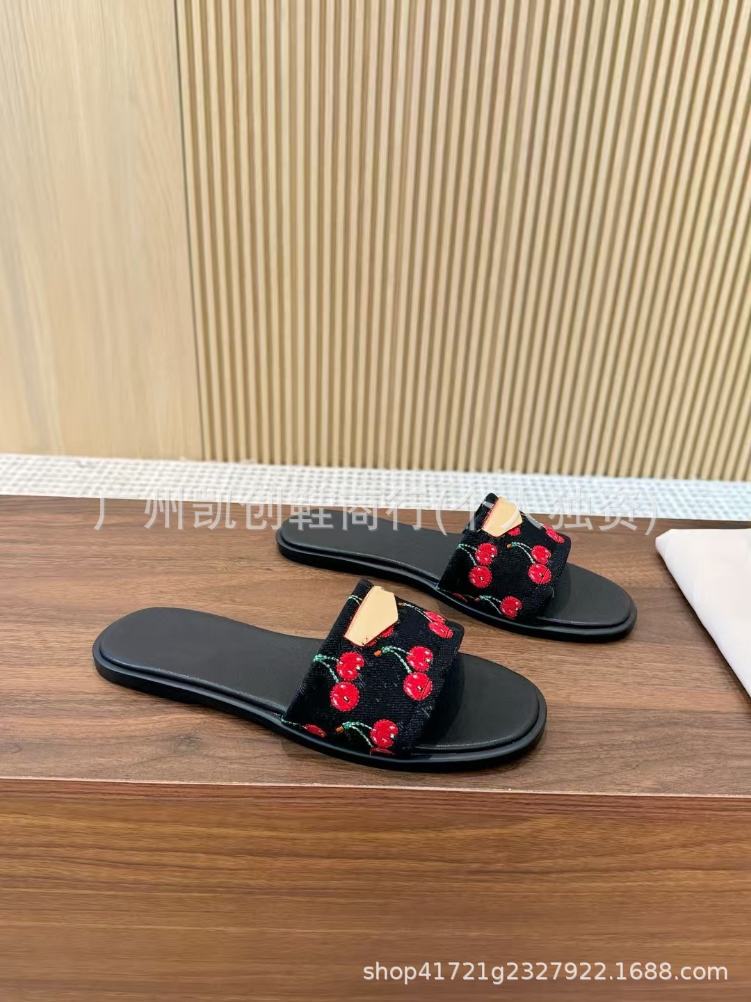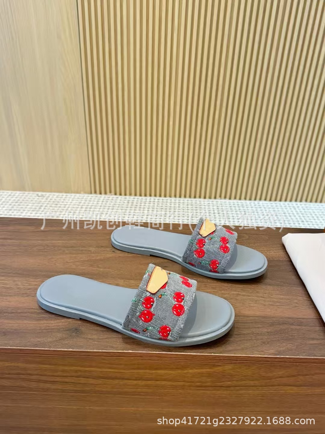 유럽과 미국의 대외 무역 2025 새로운 체리 패턴 로우 컷 뮬 데님 슬리퍼 대형 샌들스토어 가기