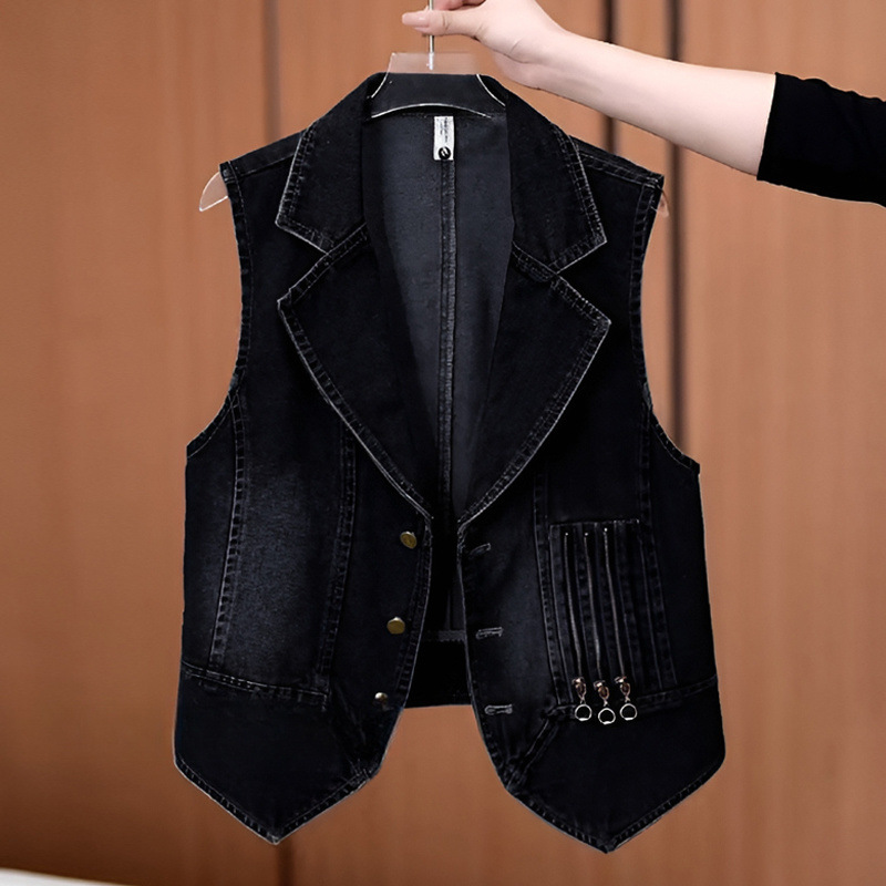 여성을위한 세련된 향수 데님 조끼 2025 봄 새로운 스타일 민소매 스타일 감년 어머니 조끼 재킷