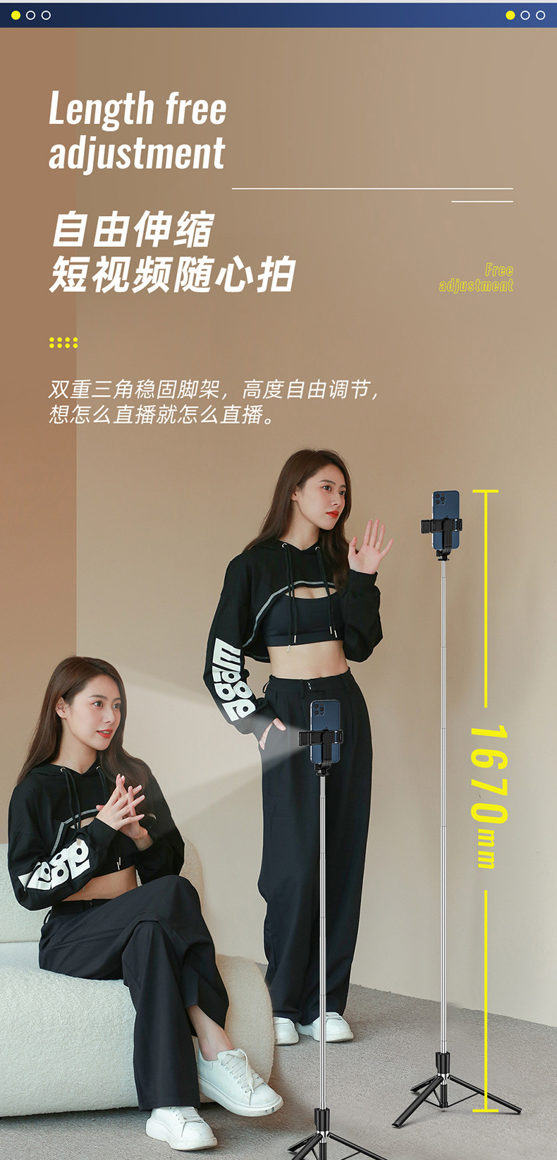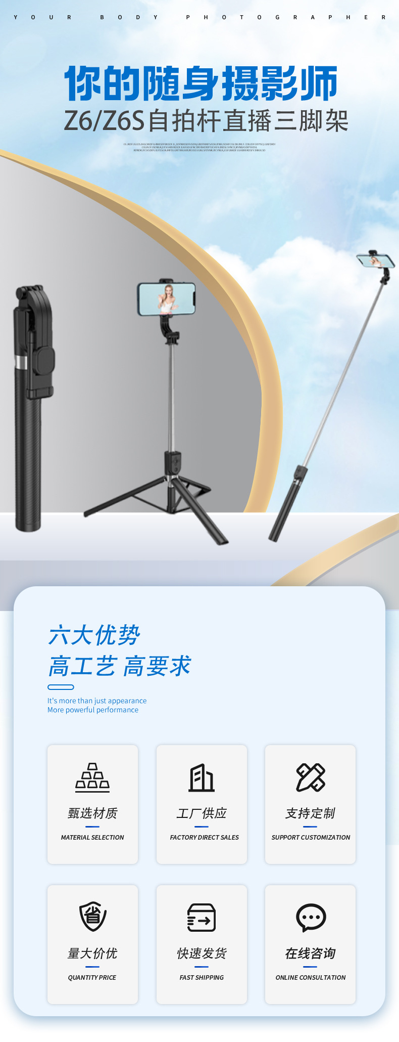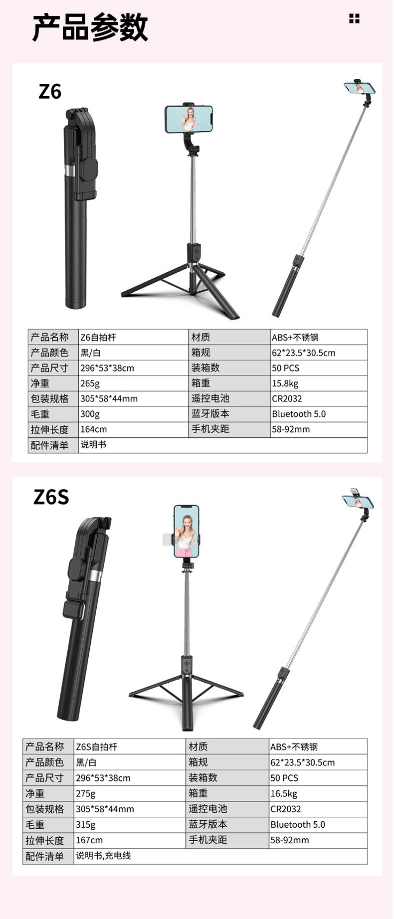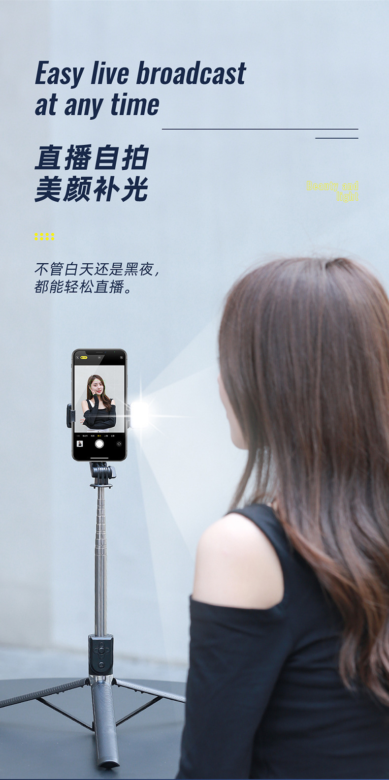 Z6/Z6S 셀카봉 라이브 스트리밍 삼각대 수평 및 수직 전환 멀티 앵글 촬영 라이브 스트리밍 셀카 필 라이트 휴대폰 홀더