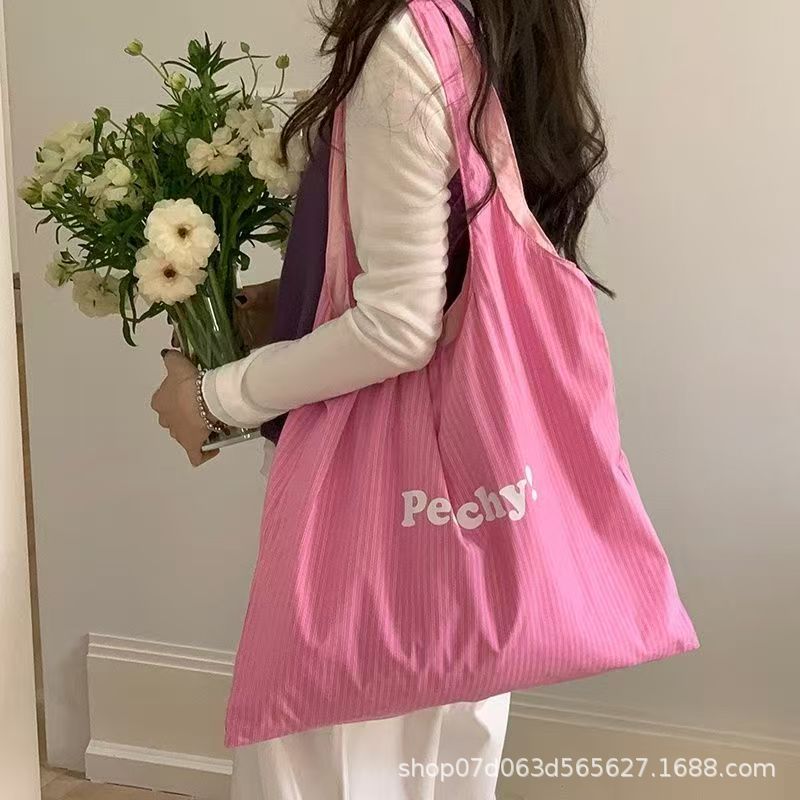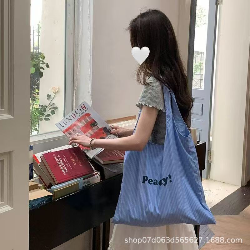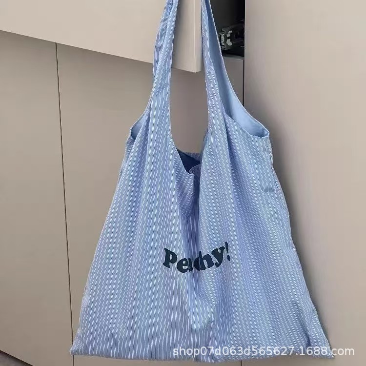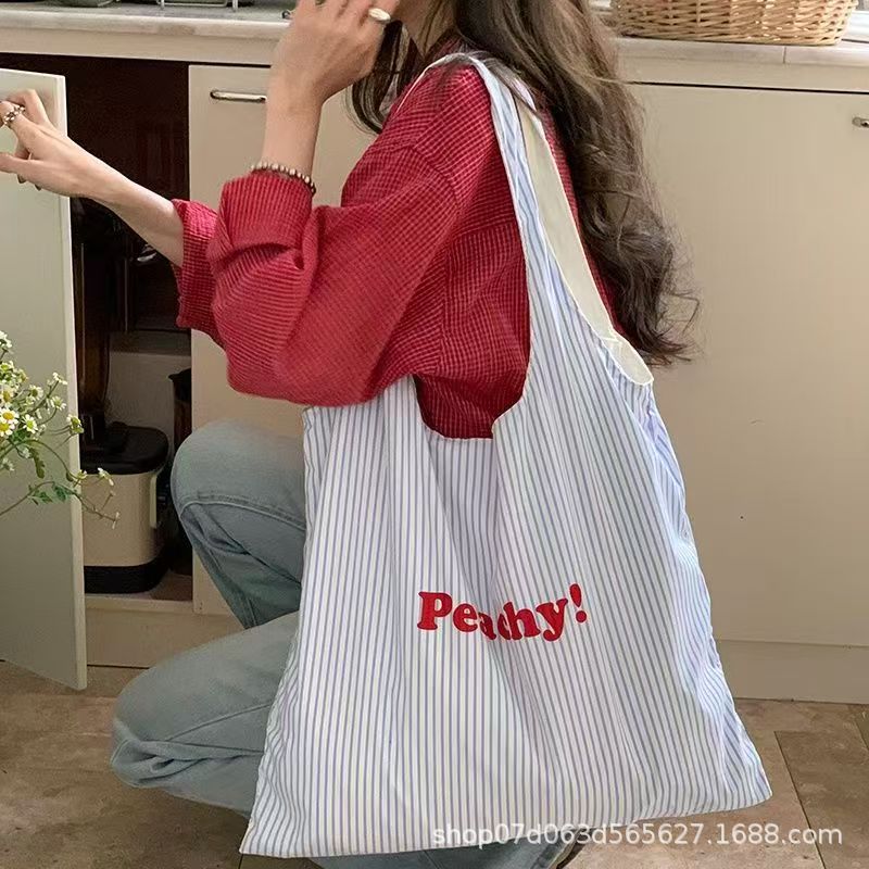 2025 봄 여름 새로운 한국어 ins 문자 줄무늬 인쇄 가방 여성을위한 가볍고 간단하고 절묘한 휴대용 어깨 가방스토어 가기