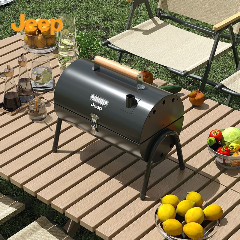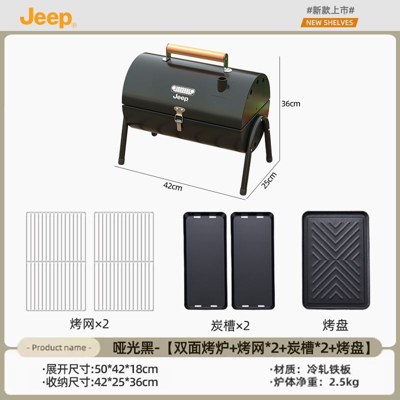 JEEP 야외 바베큐 그릴 가정용 굴뚝 접이식 휴대용 양면 숯불 바베큐 캠핑 꼬치스토어 가기