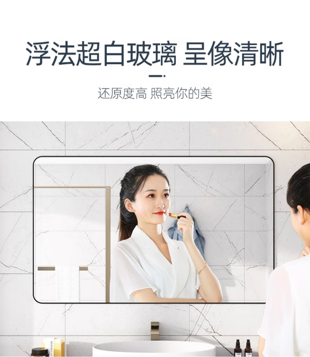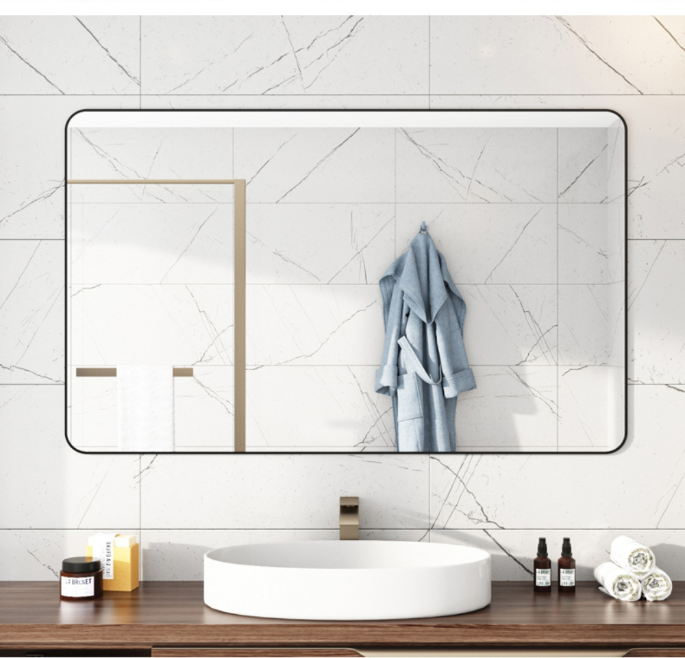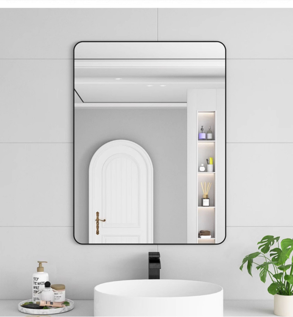 욕실 거울 벽걸이 자체 접착 욕실 사각형 헤어 살롱 벽걸이 펀치없는 세면대 벽걸이 화장 거울