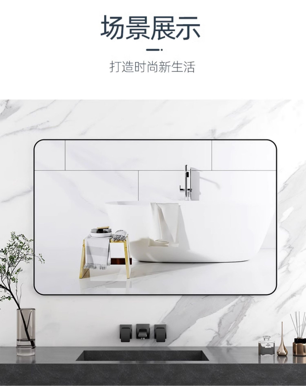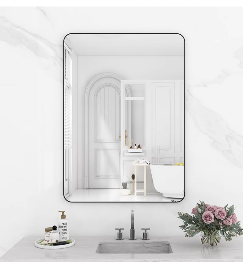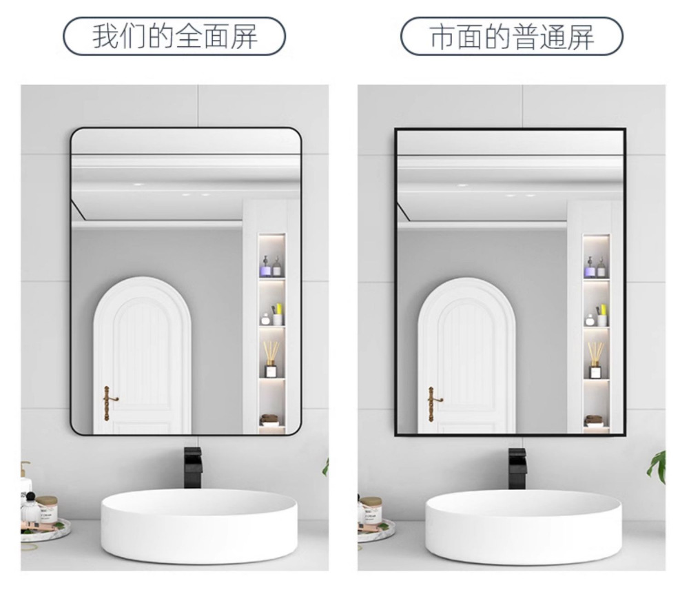 욕실 거울 벽걸이 자체 접착 욕실 사각형 헤어 살롱 벽걸이 펀치없는 세면대 벽걸이 화장 거울