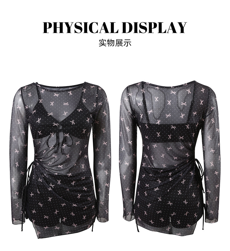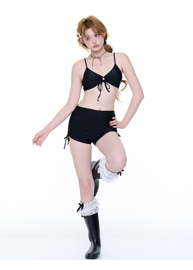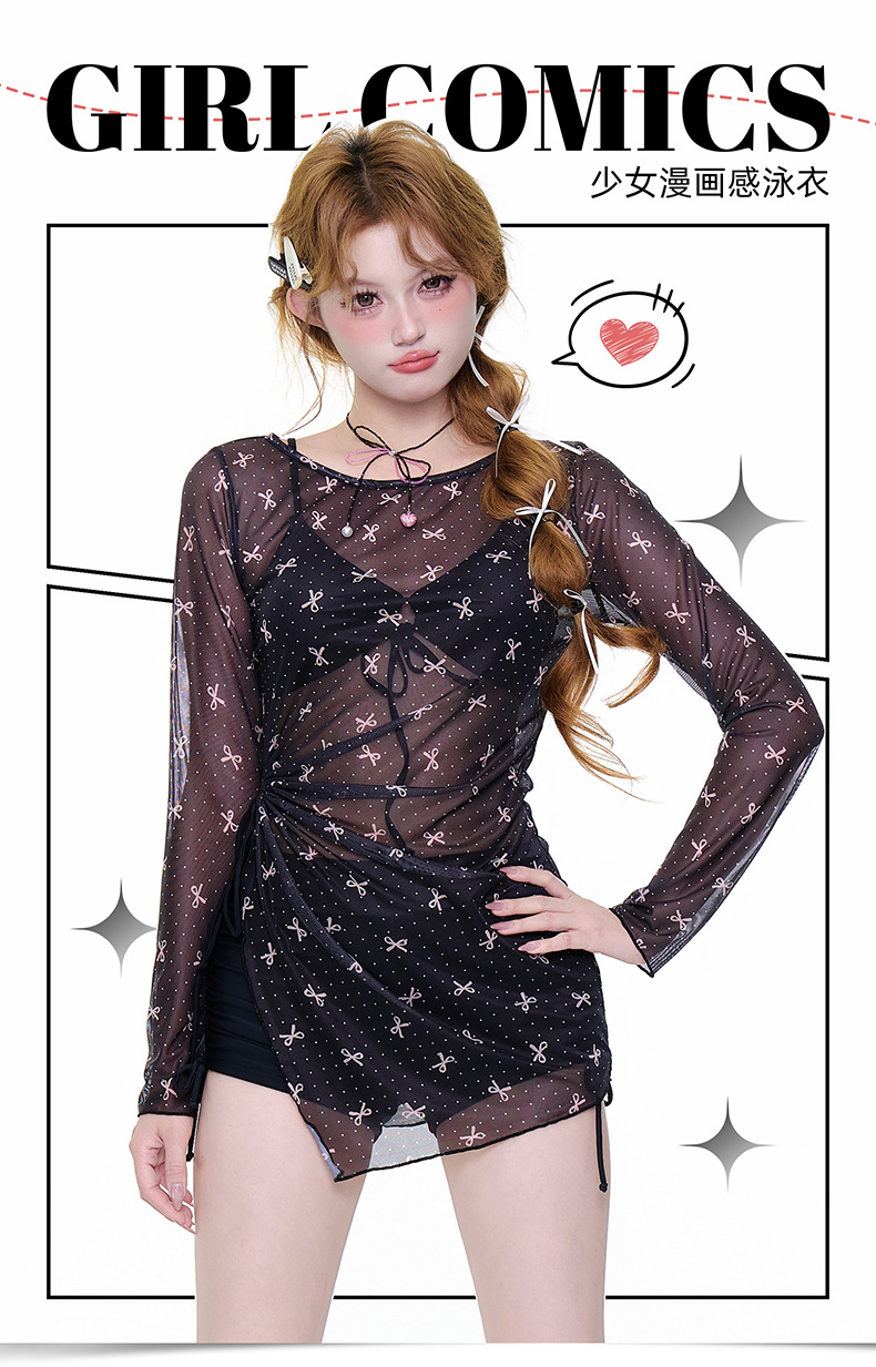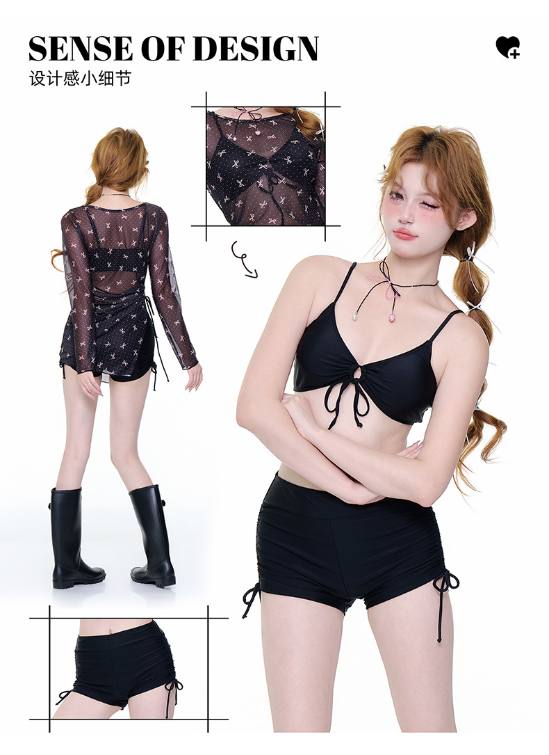 2025 새로운 섹시한 스플릿 긴팔 비키니 3 피스 세트 보수적 인 복서 섹시한 순수한 욕망 온천 수영복 여성용