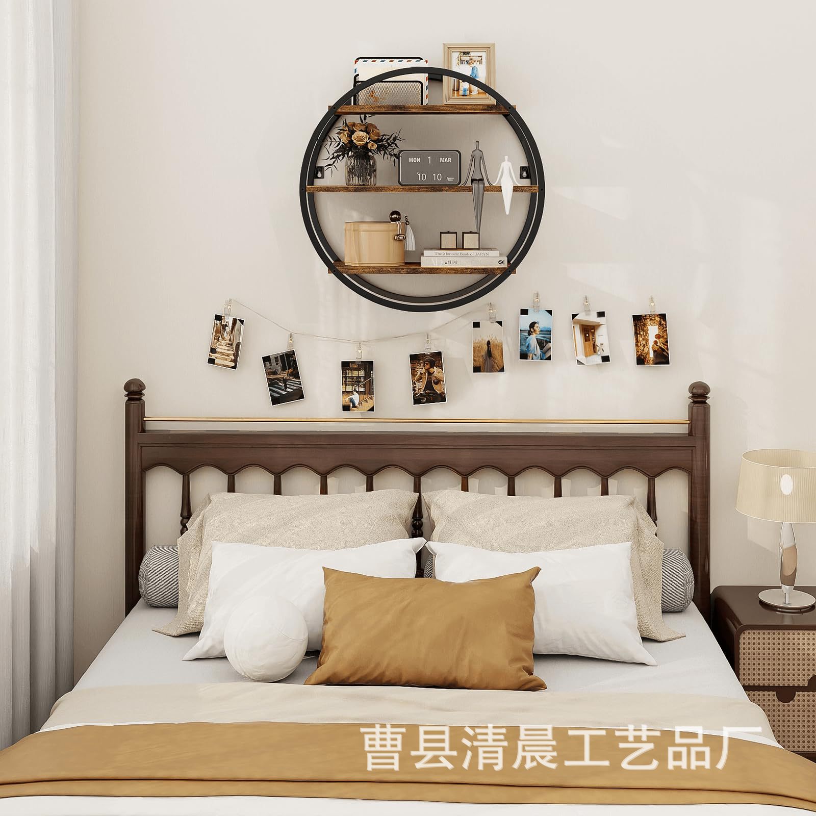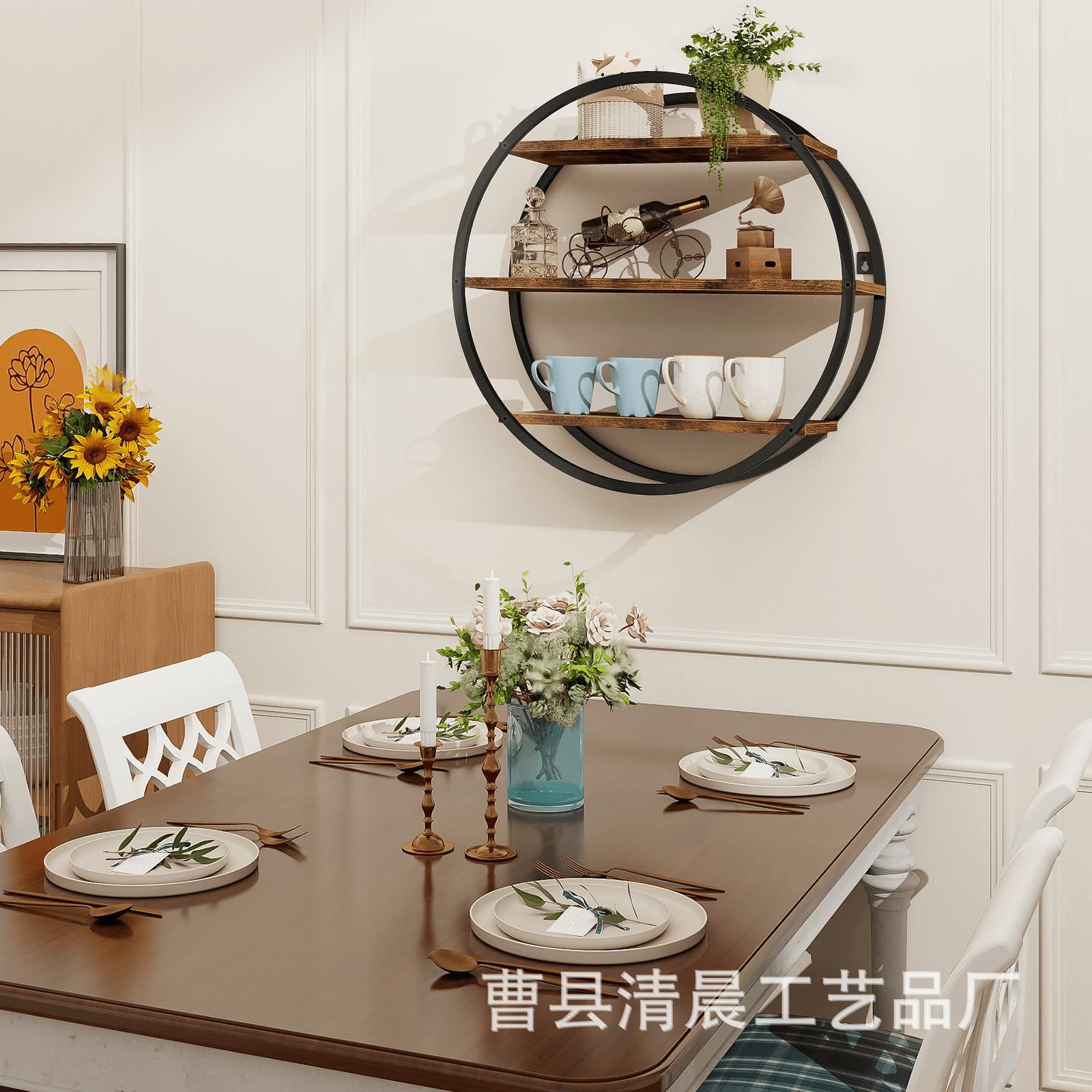 철과 나무 결합 벽걸이 빈티지 단단한 나무 벽걸이 크리 에이 티브 홈 다기능 파티션 스토리지 책장스토어 가기