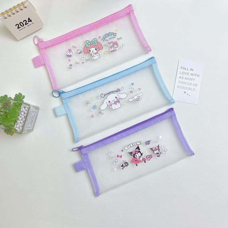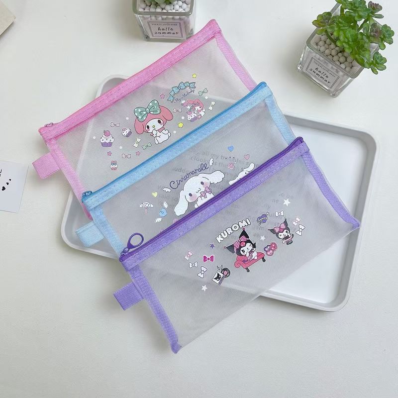 나일론 메쉬 산리오 쿠로미 거즈 연필 가방 큰 귀 개 티켓 가방 멜로디 연필 가방 선물