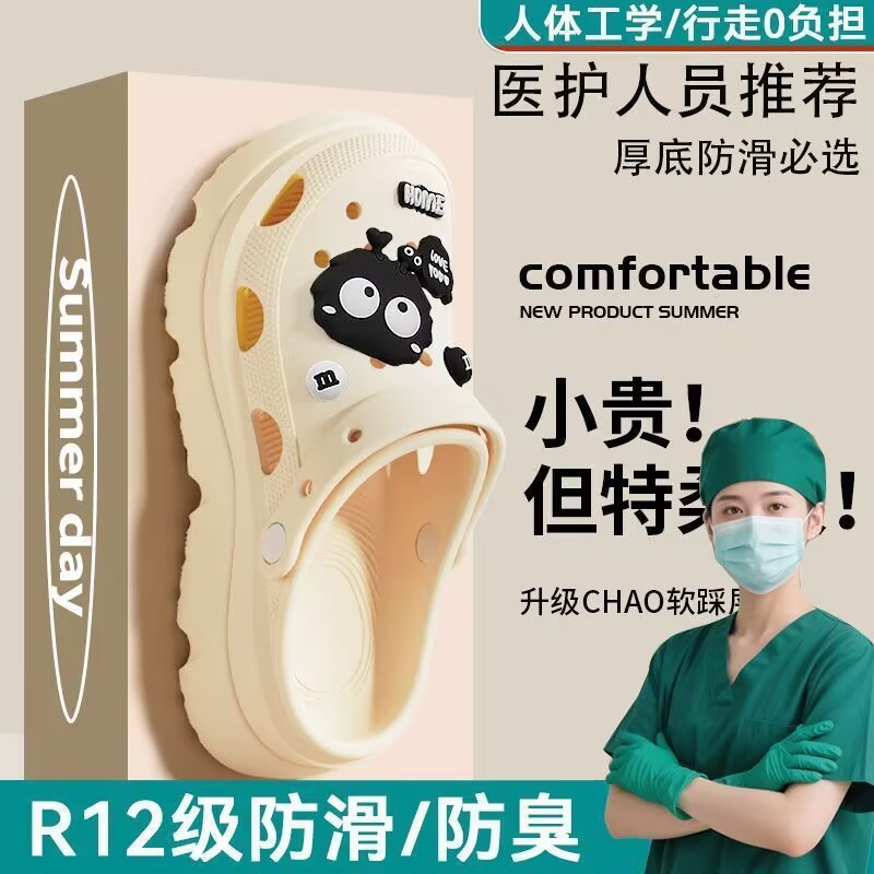 여성용 수술실 의사 및 간호사 특수 슬리퍼, 새로운 여름 의료용 두꺼운 밑창 미끄럼 방지 나막신, 부드러운 커플 아우터웨어스토어 가기