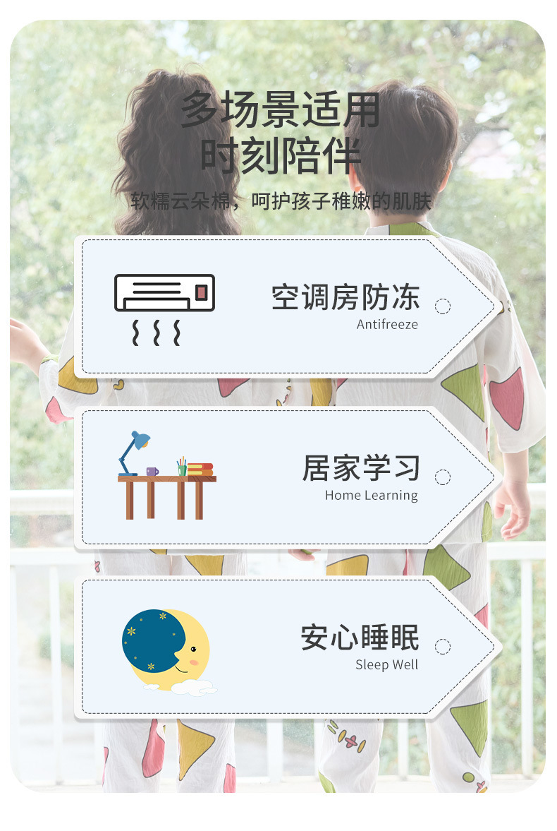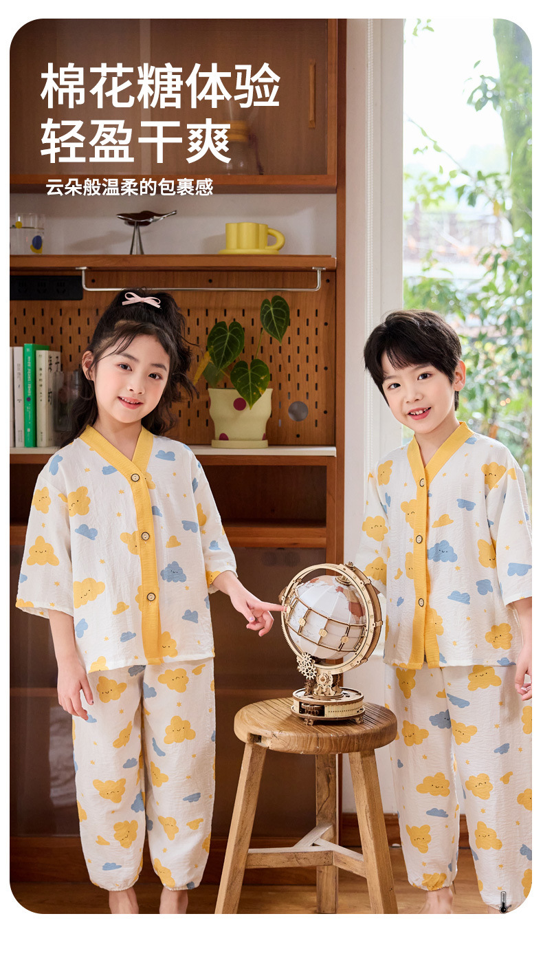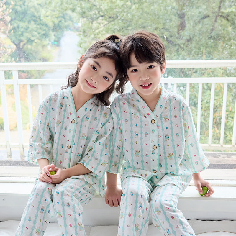여름 아동복 세트, 얇은 남아 및 여아 에어컨 의류, 유아용 여름 잠옷, 중대형 아동용 투피스 세트스토어 가기