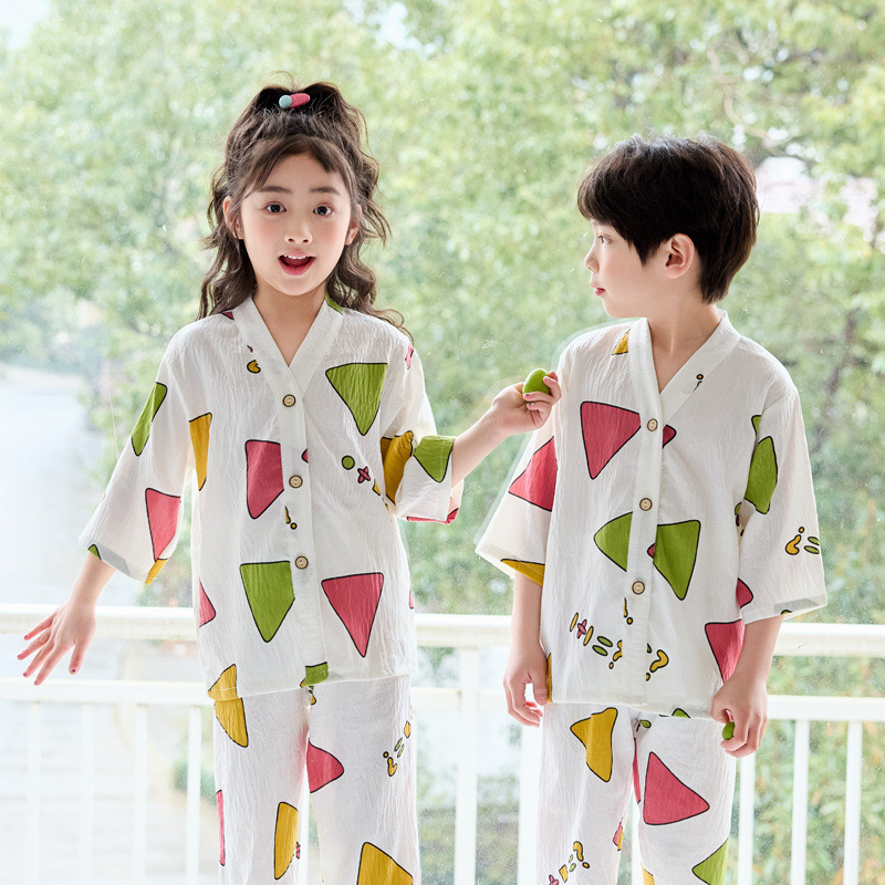 여름 아동복 세트, 얇은 남아 및 여아 에어컨 의류, 유아용 여름 잠옷, 중대형 아동용 투피스 세트