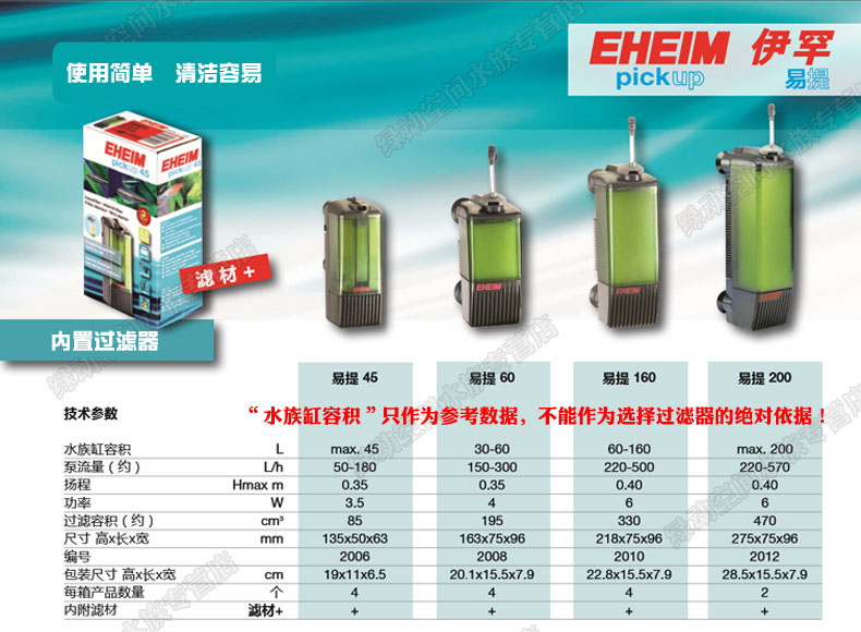EHEIM 내장 필터 EHEIM 간편한 45/60/160/200 물고기 탱크 정수 및 산소화 거북이 탱크 저수위스토어 가기